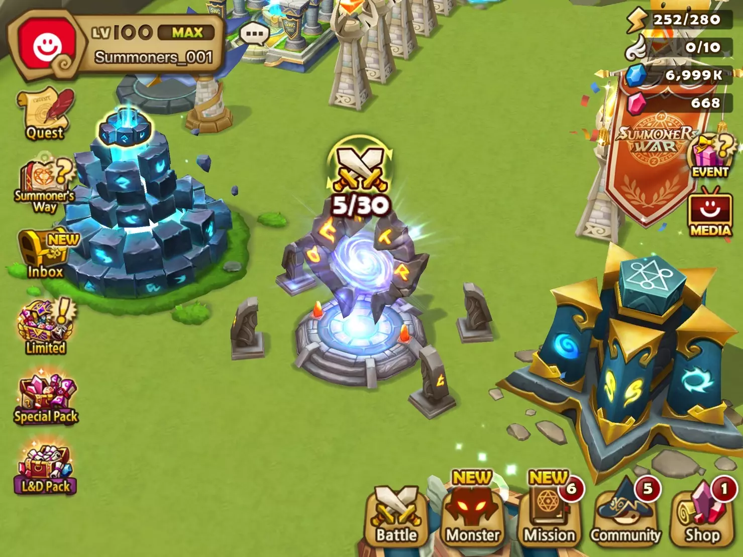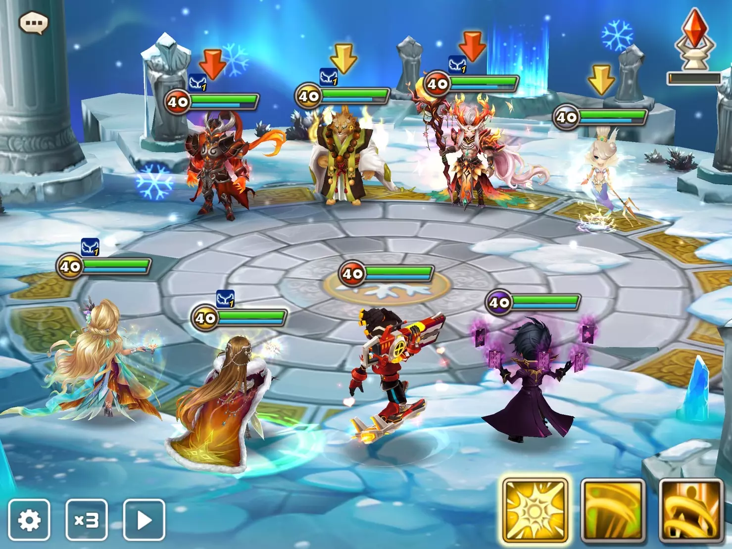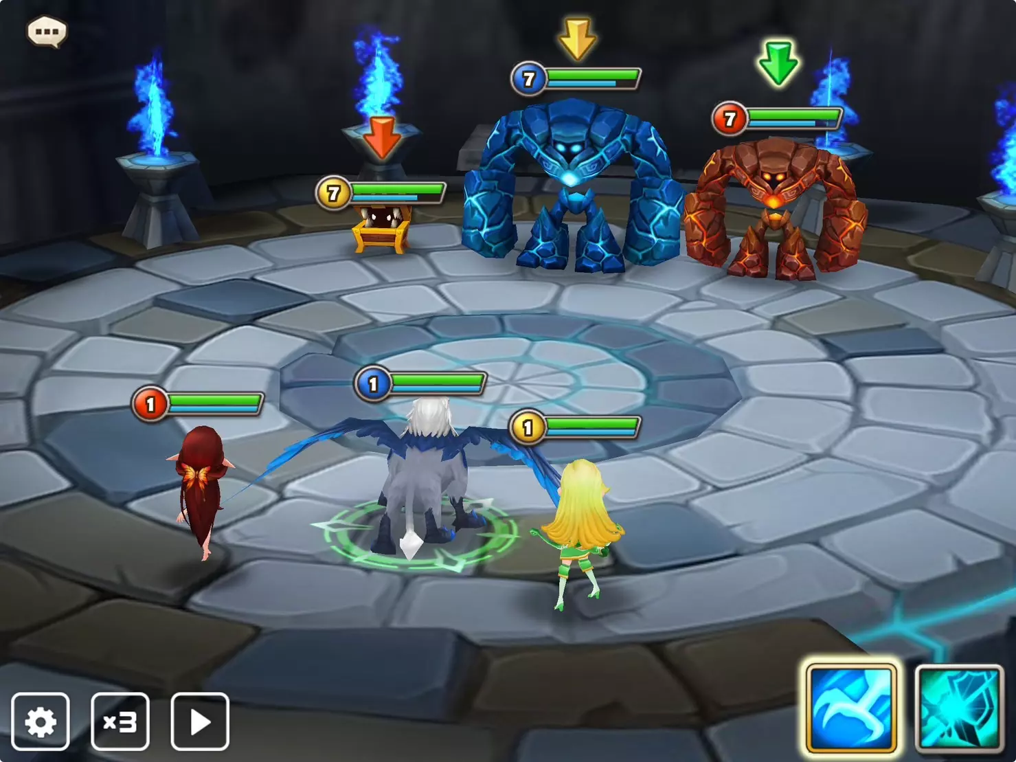 • 通过网关的重复战斗功能,你可以一键连续进行多场战斗。重复战斗可连续进行10场或30场,该功能适用于你已通关的地下城。 • 重复战斗进行期间,你可以游玩其他内容,如竞技场和攻城战,也可以管理你的魔灵、符文和神器。