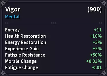 孩子们,别碰毒品。除非遇到恶魂,那你可能就需要这个了。 当身体部位状态为100%时,疼痛上限被限制在25,并且会随着身体部位受到伤害而增加,受伤也会大幅提高你的疼痛上限。 考虑到疼痛带来的减益效果可能相当严重,记住疼痛上限的作用能帮助你应对这种状况。 疲劳 疲劳是衡量角色疲劳程度的指标,正如其提示文本中所述,你会通过进行各种活动积累疲劳,它会降低你的最大能量阈值。有一点你需要知道,疲劳值与最大能量值成反比,也就是说,最大能量值越高,疲劳值积累得越慢;最大能量值越低,疲劳值积累得越快。因此,如果你计划使用较重的 armor(盔甲),就需要好好考虑自己的 build(配装)了。