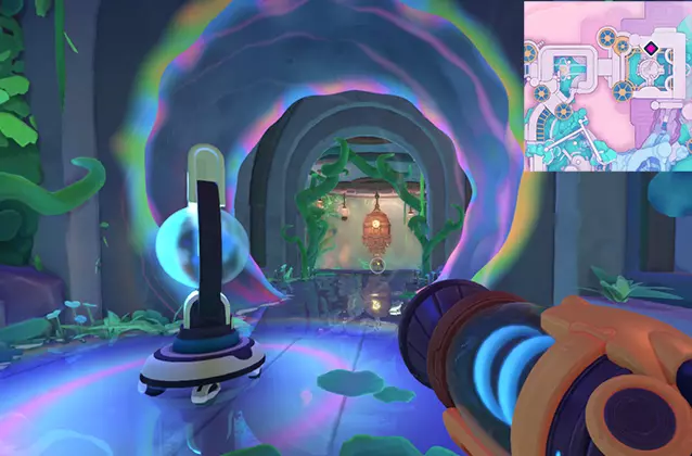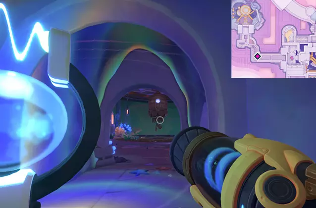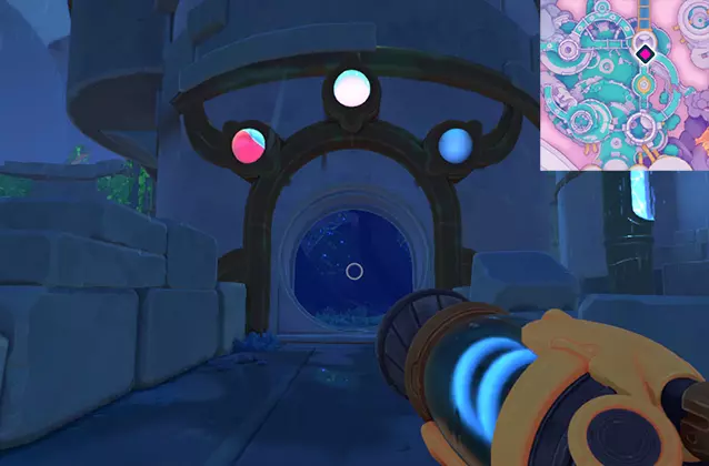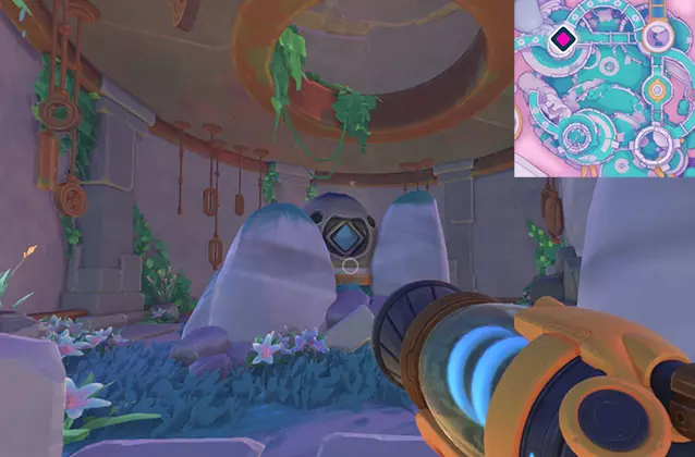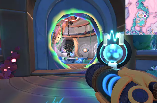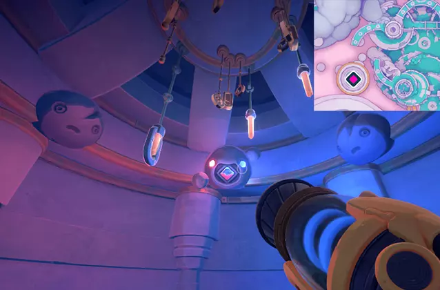 敲响所有钟声后,回到吉吉身边。 3. 稳定化 击败 Boss。 核心棱镜周围会出现水源,你可以用真空枪收集这些水。在第一阶段,你需要用水射击瓦罗聚集的地方。 在第二阶段,你需要直接向核心棱镜射击水。它会定期被屏障覆盖,此时房间内会生成史莱姆。捕捉史莱姆并将它们扔进特殊接收器,接收器会用绿色箭头标记。当史莱姆数量足够时,淋浴装置将启动,移除棱镜核心的屏障。 完整的温室