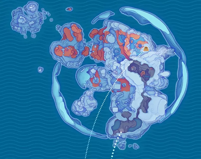 找到通往碎石悬崖的路径。 隐秘通道位于发光山谷的瀑布后方,靠近水晶巨石。击碎巨石并非必要操作,但必须从其平台开始向洞穴飞行——否则喷气背包无法获得足够高度。
