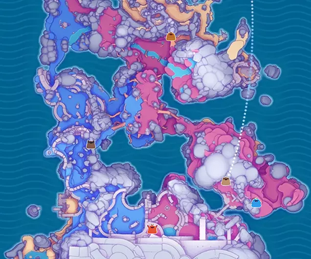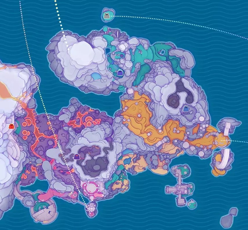 棱镜裂隙会扭曲迷宫小范围内的颜色,并使食物变得不稳定。当史莱姆吃下不稳定的食物后,会产生不稳定的史莱姆结晶。若将这种结晶射穿迷宫中随机出现的黄橙色【传送门】,不稳定的史莱姆结晶就会变成棱镜结晶。游戏中还有大型稳定传送门,它们会在地图上标记出来。当你携带不稳定的史莱姆结晶穿过这些传送门时,会立即将其转化为棱镜史莱姆结晶。 请注意,如果你受到伤害,将失去所有不稳定的史莱姆结晶。在此事件期间,会出现黄白色透明的【伤害墙壁】,接触后会受到伤害。不稳定的能量块还会自行离开你的背包并飞向未知方向。 2. 能量调和:将能量块兑换为蓝图,现在你需要制作新装置——中和器。在灰色迷宫中有16面不稳定的墙壁,它们散发着奇怪的光芒。如果在这种墙壁旁放置中和器,它会在墙上开一个洞,你可以穿过这个洞。大部分墙壁后面隐藏着各种装饰物品,但其中五面墙壁(迷宫的每个区域各一面)通向装有和谐器的房间——和谐器是一种铃铛,需要用某种物品(例如弹丸、史莱姆、鸡——什么都可以)射击它。第一个和谐器位于迷宫的中央区域,就在通往棱镜核心的道路起点处。