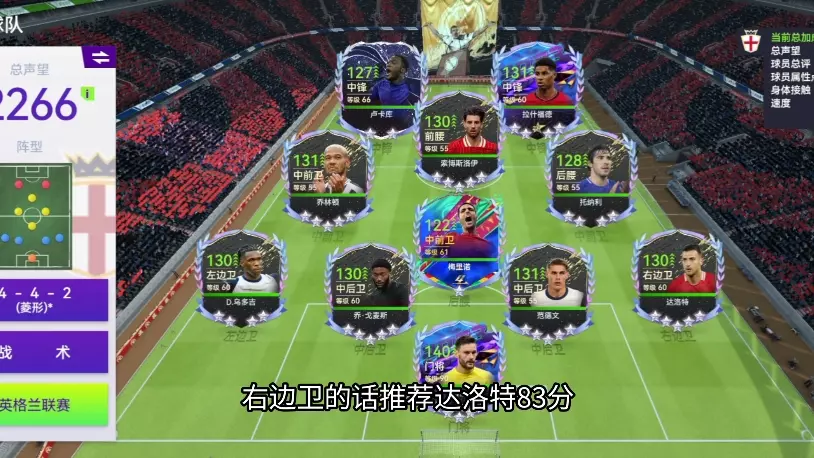 这是《最佳球会》的平民英格兰联赛队套球员推荐,双中锋首推黑鹰维尔纳,中场推荐罗杰斯等球员,罗杰斯有快速弧线球特性,搭配铁人特性球员可减缓体力消耗,节约换人名额。
