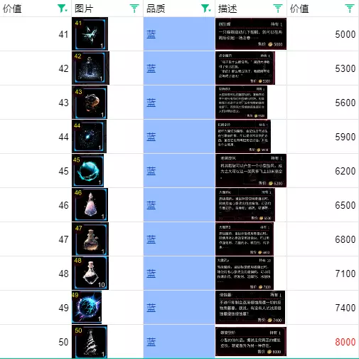 这部分没有专门去刷的必要,副产物会有很多。 【41级蓝色装备-50级蓝色装备】