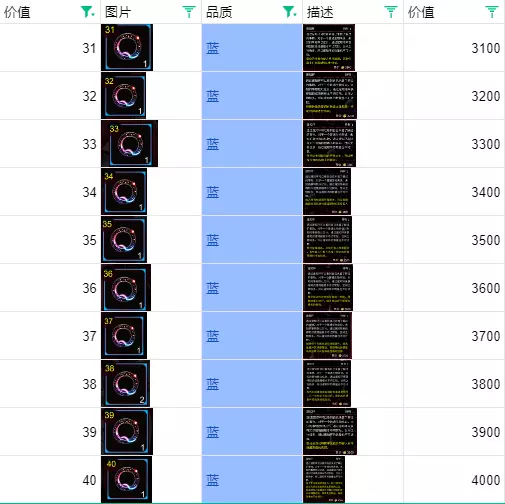 蓝色31-40是邃知环,没什么用,炼制一个解锁条目就够了。 【31蓝-40蓝】