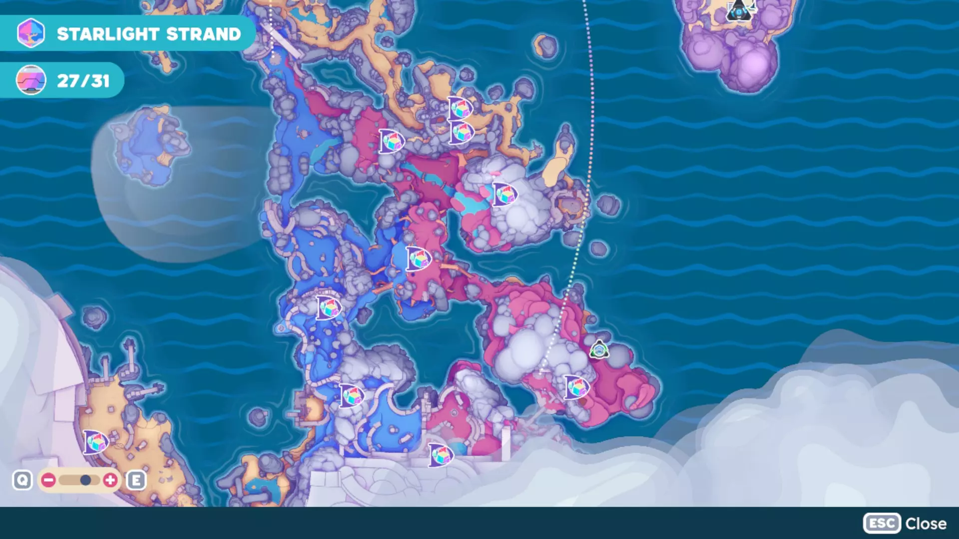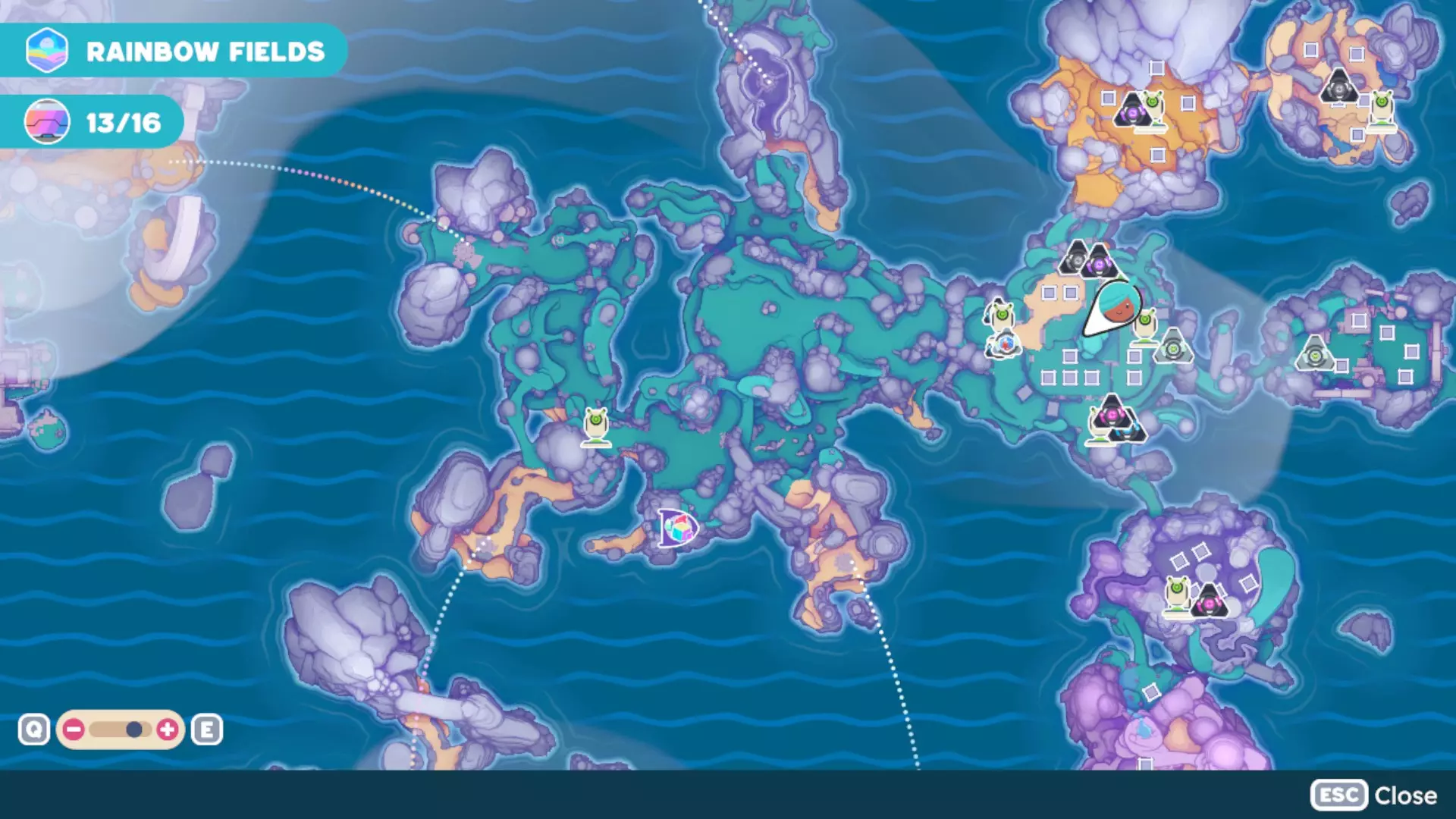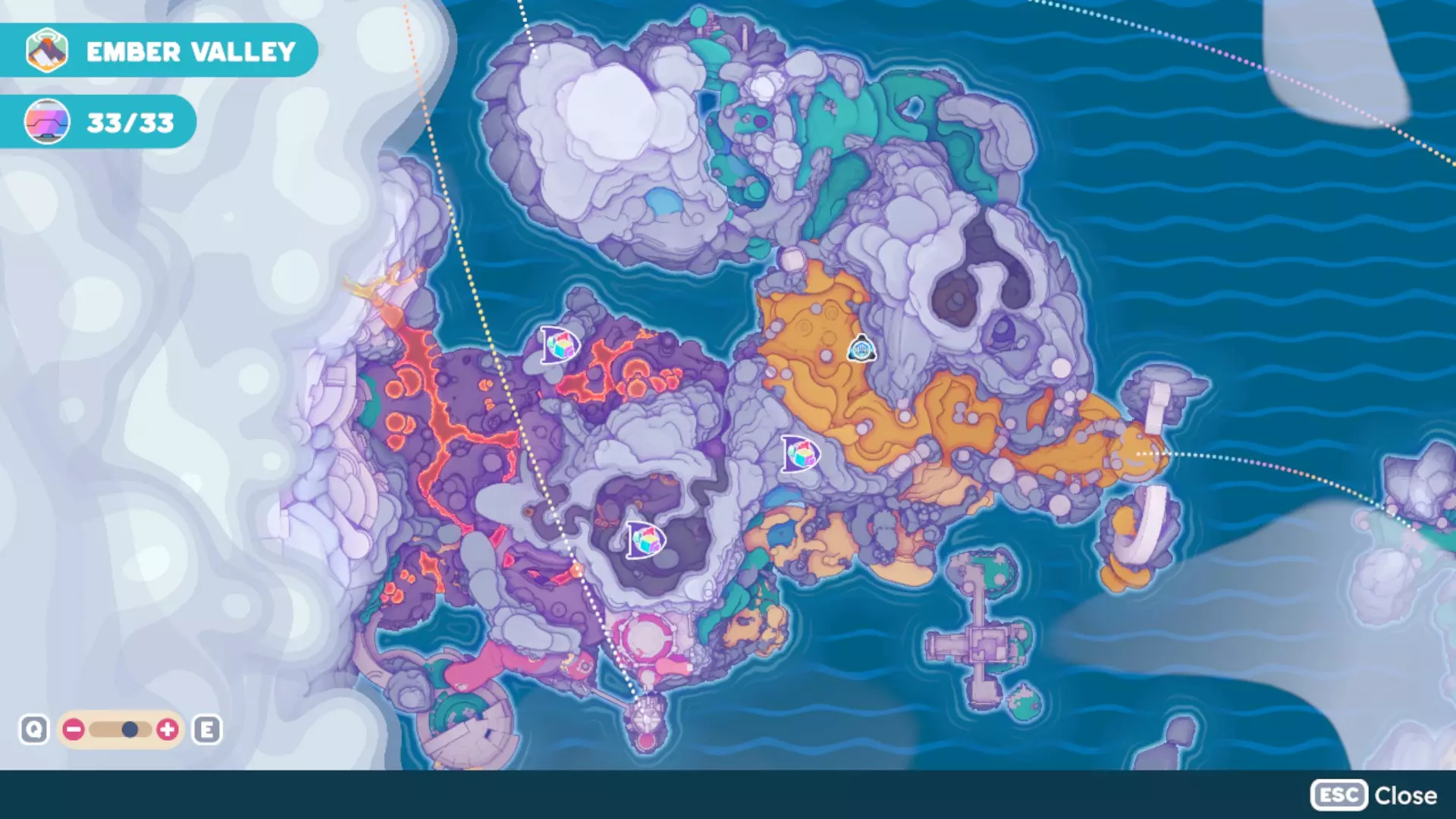 此外,地图各处会罕见地生成金罐。打碎金罐可获得其生成区域内的资源。 找不到资源? 如果您一直在寻找资源却始终找不到,以下是一些提示: - 尝试睡觉。睡觉有助于重置生成位置。 - 等待几天。如果睡觉不起作用,给资源一些时间自行重置。我在寻找奇异钻石和太阳树液时就会这样做。 如何判断资源是否尚未重置? 如果您仍能看到已采集资源的残留物(例如矿物资源所在位置留下的石头、不再滴蜡或蜂蜜的蜂巢、不再冒泡的完美雪花喷口、树上的太阳树液残留等),则意味着生成位置尚未重置。你需要耐心等待,因为重置可能需要几天游戏内时间。 【奇异钻石地图位置】 想寻找用于Vacpac升级或其他用途的奇异钻石吗?我已经用矿物资源标记标出了几处已知的奇异钻石生成洞穴位置。 (请注意,这些标记代表它们所在的洞穴,而不仅仅是标记钻石的单个位置。)