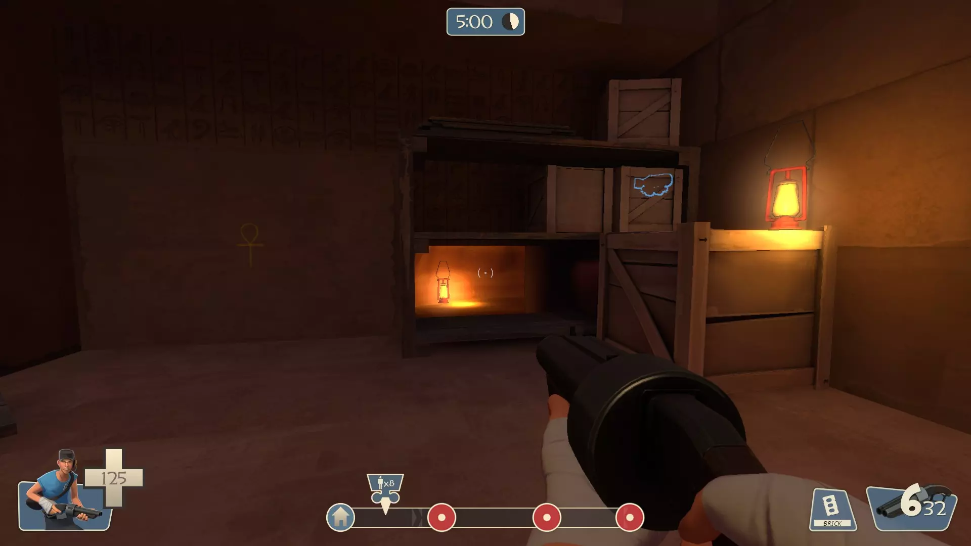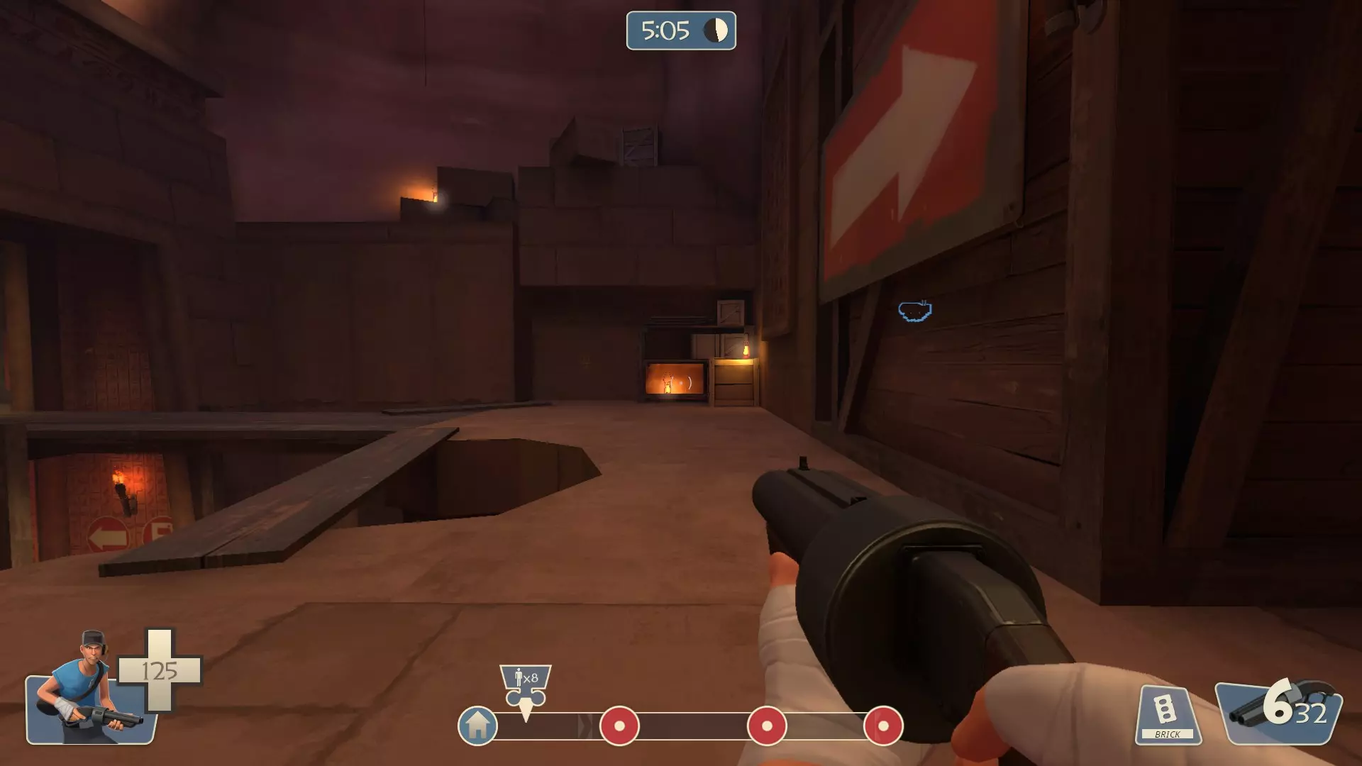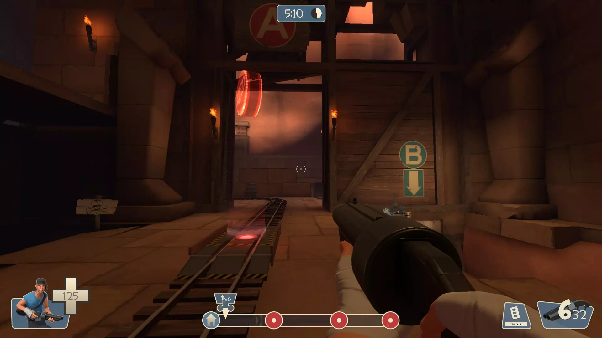 打开开发者控制台(你可以在输入菜单中查看对应按键),并输入以下指令: map pl_jinn 加载完成后,选择蓝队。然后选择一个职业(推荐侦察兵,因为移动速度快)。 指令 在游戏开始前,在开发者控制台中输入以下指令: exec jinn1.cfg 之后,等待回合开始。然后在开发者控制台中输入以下指令: exec jinn2.cfg 导航 通往宝藏的路径现在已开启。首先,沿着运载目标的轨道前进,直到到达这个位置。