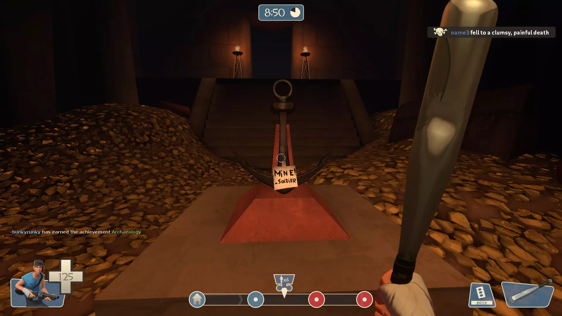 如何单人获取【Archaeology】成就 文件设置 将以下内容复制到一个.txt文件中,并将其转换为.cfg文件(可以使用任意名称,但为方便后续参考,此处命名为jinn1.cfg) sv_cheats 1;mp_enableroundwaittime 0;nb_blind 1; mp_teams_unbalance_limit 0; tf_bot_keep_class_after_death 1; tf_bot_melee_only 1;tf_bot_difficulty 0;sv_cheats 0; tf_bot_add 1 scout blue name; tf_bot_add 1 scout blue name2; tf_bot_add 1 scout blue name3; tf_bot_add 1 scout blue name4; tf_bot_add 1 scout blue name5; 然后,将以下内容复制到另一个.txt文件中,并将其转换为第二个.cfg文件(我使用的是jinn2)cfg) ______ sv_cheats 1; bot_teleport name 5239 -597 -383 19 -90 0; bot_teleport name2 -2374 385 360 11 -7 0; bot_teleport name3 66 578 581 66 86 0; bot_teleport name4 -1300 2370 68 -11 178 0; bot_teleport name5 1438 1325 -188 9 -89 0; sv_cheats 0; ______ 文件位置 在你的Steam库中,点击【军团要塞2】。然后,点击右侧的齿轮图标,在下拉菜单中点击【属性】。
