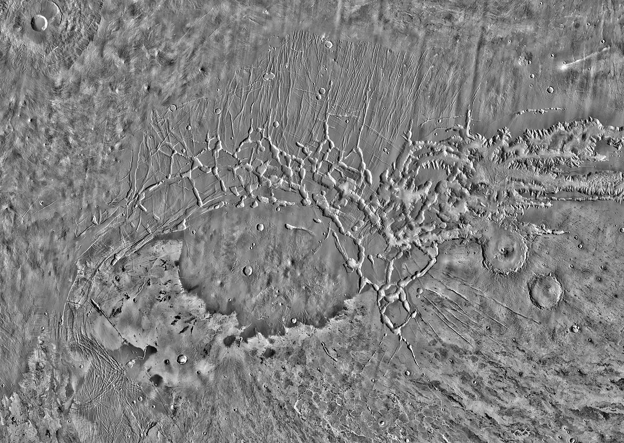 - Valles 或 Vallis:均指山谷。前者指行星上的山谷,后者指月球上的山谷(图片由NASA/JPL-Caltech提供)