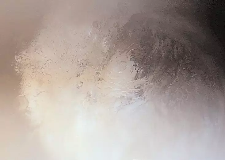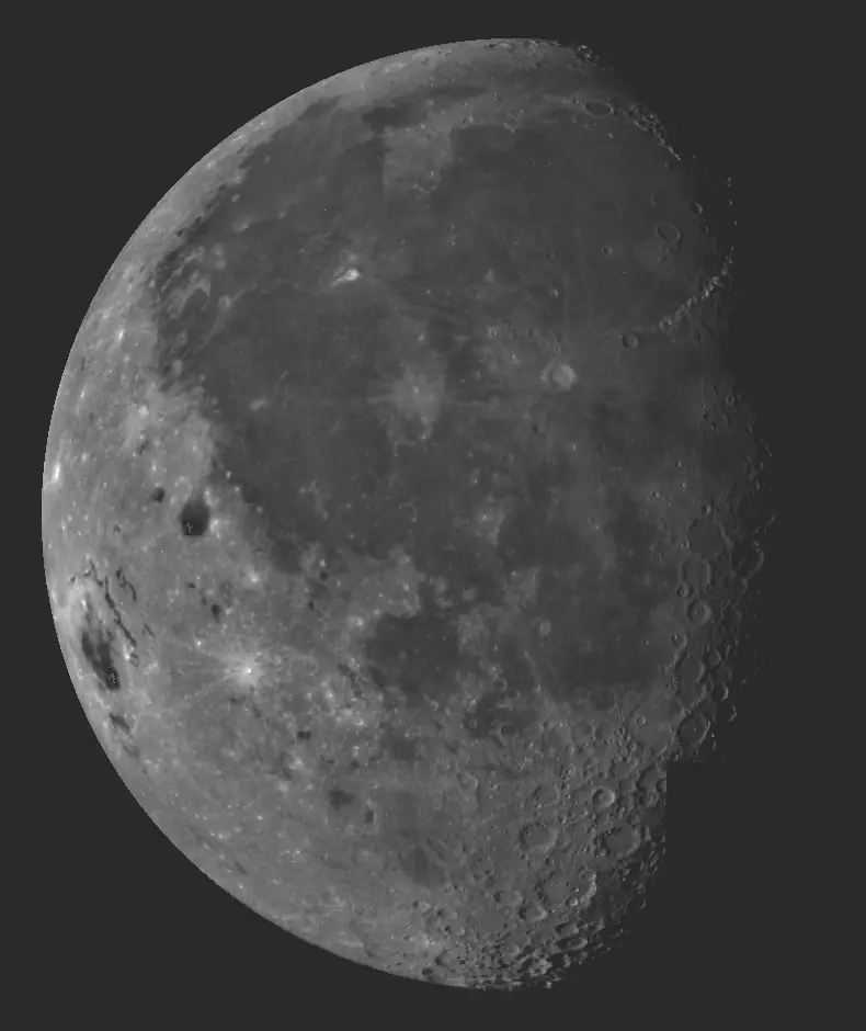 Terra:广阔的区域,拥有多种地表特征变化。这些是较明亮的“大陆”陆地特征,与较暗的月海区域相分离。(下方:格陵兰)