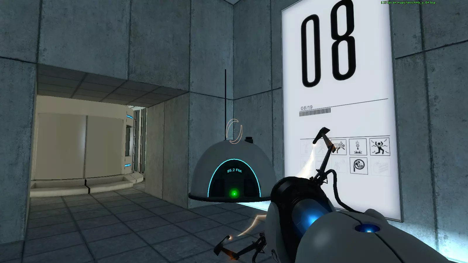本指南旨在帮助你更轻松地找到所有信号发射器,并将它们设置到接收信号的最终位置。 简介 本指南有什么用? 本指南旨在帮助你更轻松地找到所有信号发射器(收音机),并将它们设置到能接收到信号的正确位置,以推进成就进度。 这个成就其实并不难,但你需要在各个房间里上下搜寻,检查每个角落和可疑的地方。虽然大部分信号发射器很容易找到,但有少数几个比较难发现,很可能会被遗漏。 如何获得成就? 游戏中共有26个收音机,要获得成就,你需要找到所有收音机并将它们设置到正确的位置。要找到收音机,你需要在地图上搜索。有时收音机会很容易被看到,有时则需要依靠声音。当你靠近收音机时,会听到类似游戏开始时的夏威夷风格音乐(因为游戏开始时房间里有一台收音机,你会立即听到那个声音)。 收音机是半圆形的,上面写着85.2FM,并有红灯亮起。 当你拿到收音机并将其移到房间内需要捕捉信号的位置附近时,你会开始听到噪音和信号干扰声。当听到这些声音时,在周围移动,上下左右调整位置,直到捕捉到完整信号(在某些区域,收音机需要放在空中,或者放在地图上同一位置但稍高或稍低的地方)。当收音机捕捉到完整信号后,其红灯会变为绿灯(部分玩家反馈他们的灯仍保持红色),同时嘈杂的声音和信号干扰会转变为类似摩尔斯电码的信号(或像是接收到外星人的信号)。此时,成就进度应会更新,成就进度窗口会弹出,且你将有一台收音机被计入成就。 一旦收音机被计入成就,无论你加载存档、重新加载游戏还是开始新游戏,这台已计入成就的收音机都将始终保持绿灯亮起(至少在我这里是这样运行的)。 但在获得此成就前,你必须先完成一次游戏,然后重新开始并收集收音机。我不确定这一步,因为我是在尝试获取成就之前玩的游戏,但有些人报告说他们在首次通关游戏之前无法接收到信号。 注意:在某些情况下,你的收音机可能会丢失,比如在掉落、跳跃、边缘、穿过传送门等过程中。所以你的收音机可能会消失、掉落到纹理中、掉进熔岩或损坏。因此记得经常保存游戏。 信号位置 首先我必须道歉,我在两天内通过几次游戏完成了这些成就,所以没有记录所有地图,也忘记了截图。 但有一个非常巧妙的技巧可以追踪地图上的所有收音机。部分地图会分多个片段加载,因此你可能会弄混关卡编号,误以为加载了新地图但实际上并没有。 要查看当前所在地图,首先需启用开发者控制台。操作步骤如下:进入选项 > 键盘 > 高级 > 勾选启用开发者控制台。开发者控制台的打开键位于键盘左上角、ESC键正下方,按键上标有 ~ 符号(部分键盘可能有所不同)。打开控制台后,输入【cl_showfps 1】。这会在游戏右上角显示帧率计数器,更重要的是,它会显示你当前所在的地图。 一切准备就绪后,我们就可以开始寻找信号了。 无线电 #1 地图:testchmb_a_00出于显而易见的原因,第一个无线电定位器没有截图(好吧,我忘了),因为你一醒来,收音机就在你面前,而且你被锁在这个房间里整整一分钟,不可能错过它。按E键将其拿起(记住这个声音,因为当你听到它时,意味着收音机就在你附近)。 穿过门后,你会在应该放置方块的位置接收到信号。一旦收音机处于正确位置,红灯将变为绿灯,你会听到类似摩尔斯电码的声音。