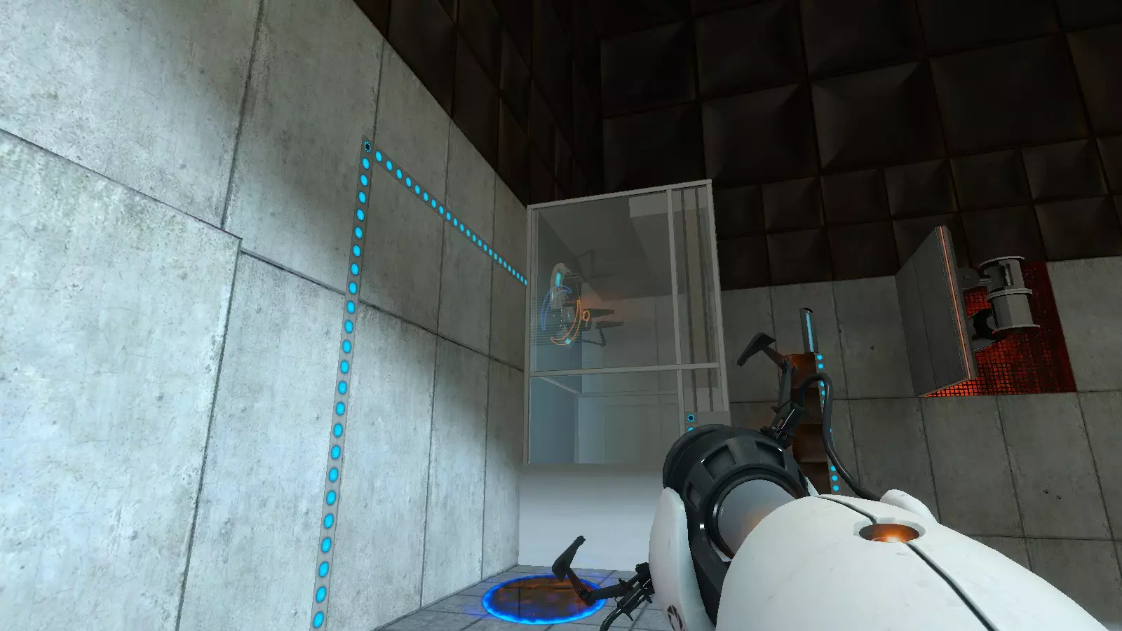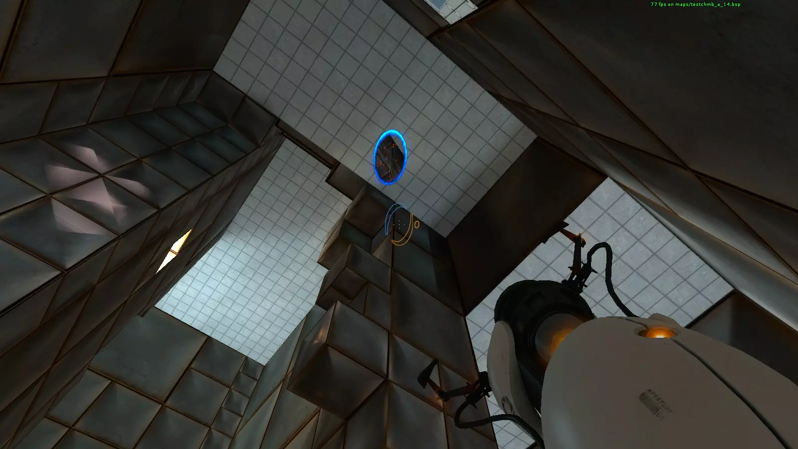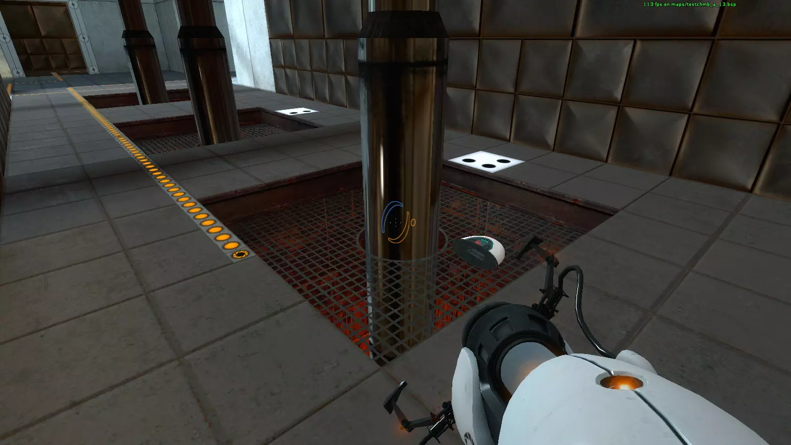 收音机#23 地图:testchmb_a_15.bsp 这是另一个很容易错过的收音机。当你接近旅程终点并即将进入火焰区域时,我意外地把传送门直接开在了收音机上方。你需要先确保自身安全,然后回头看向火焰区域寻找收音机。从安全区看过去,它在墙的右侧;从移动平台看过去,它在墙的左侧。