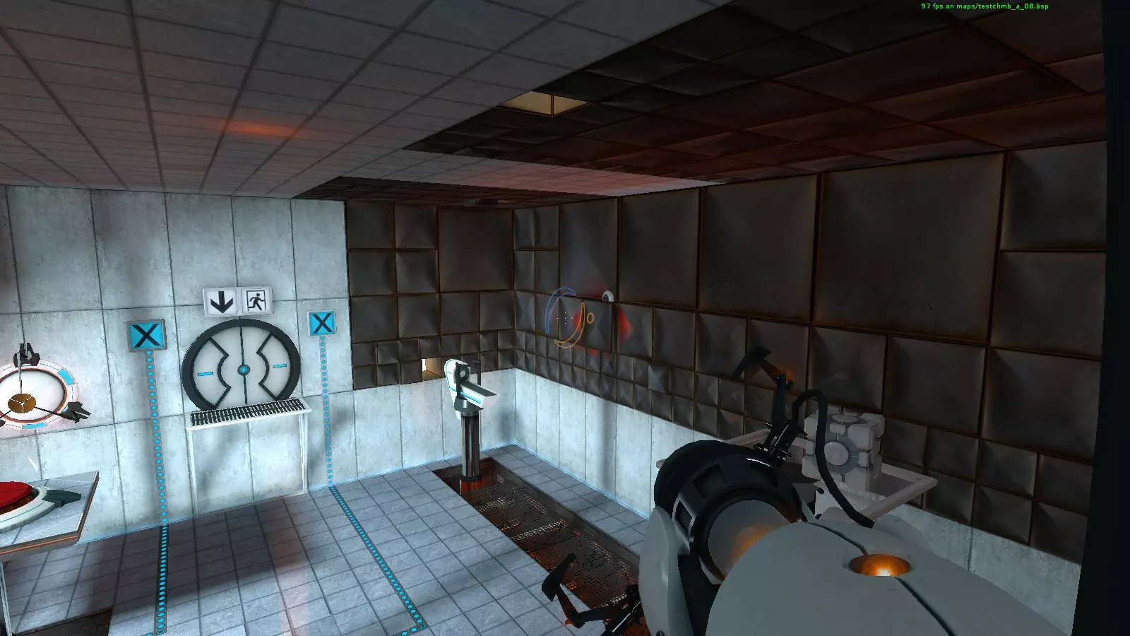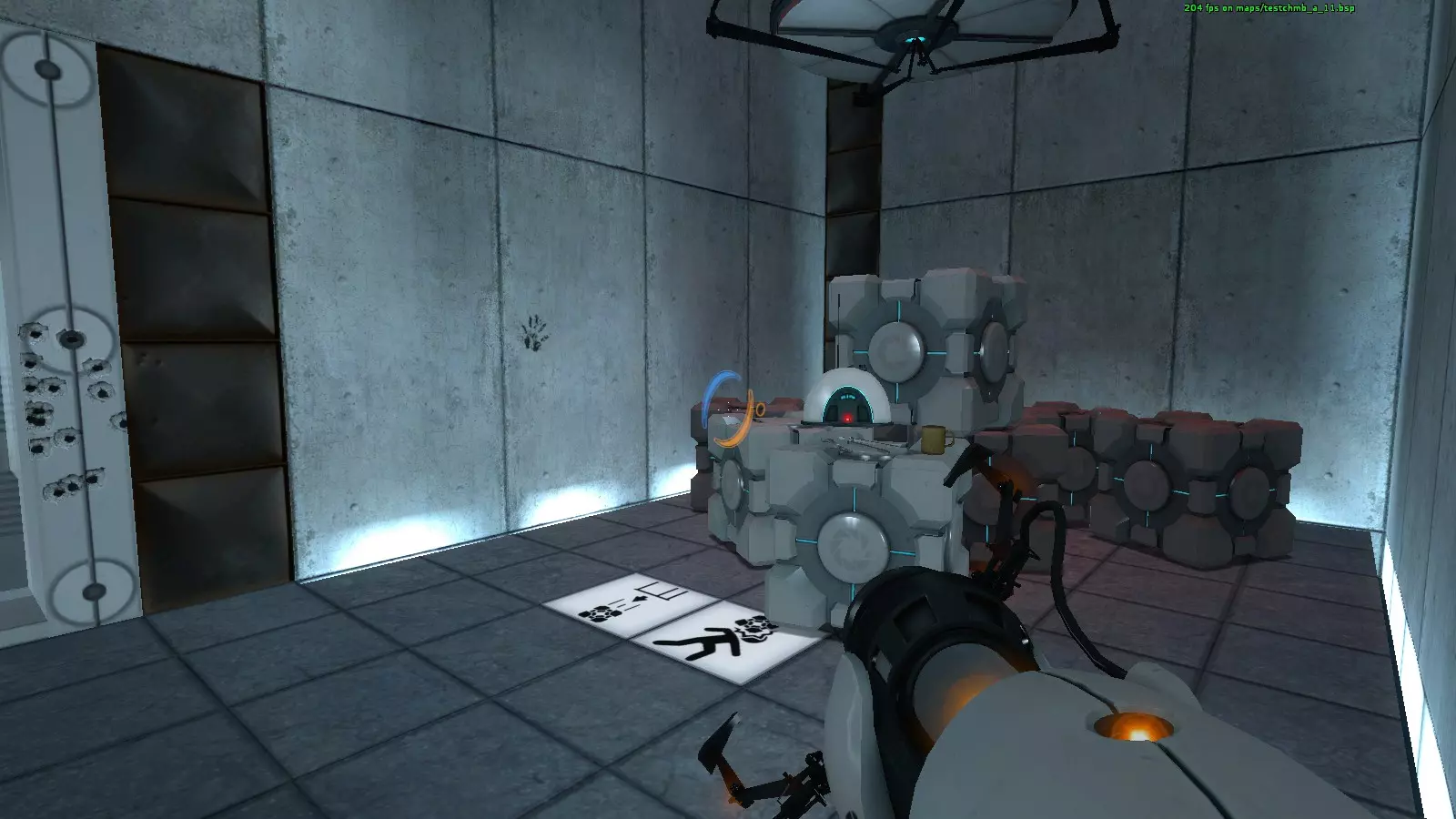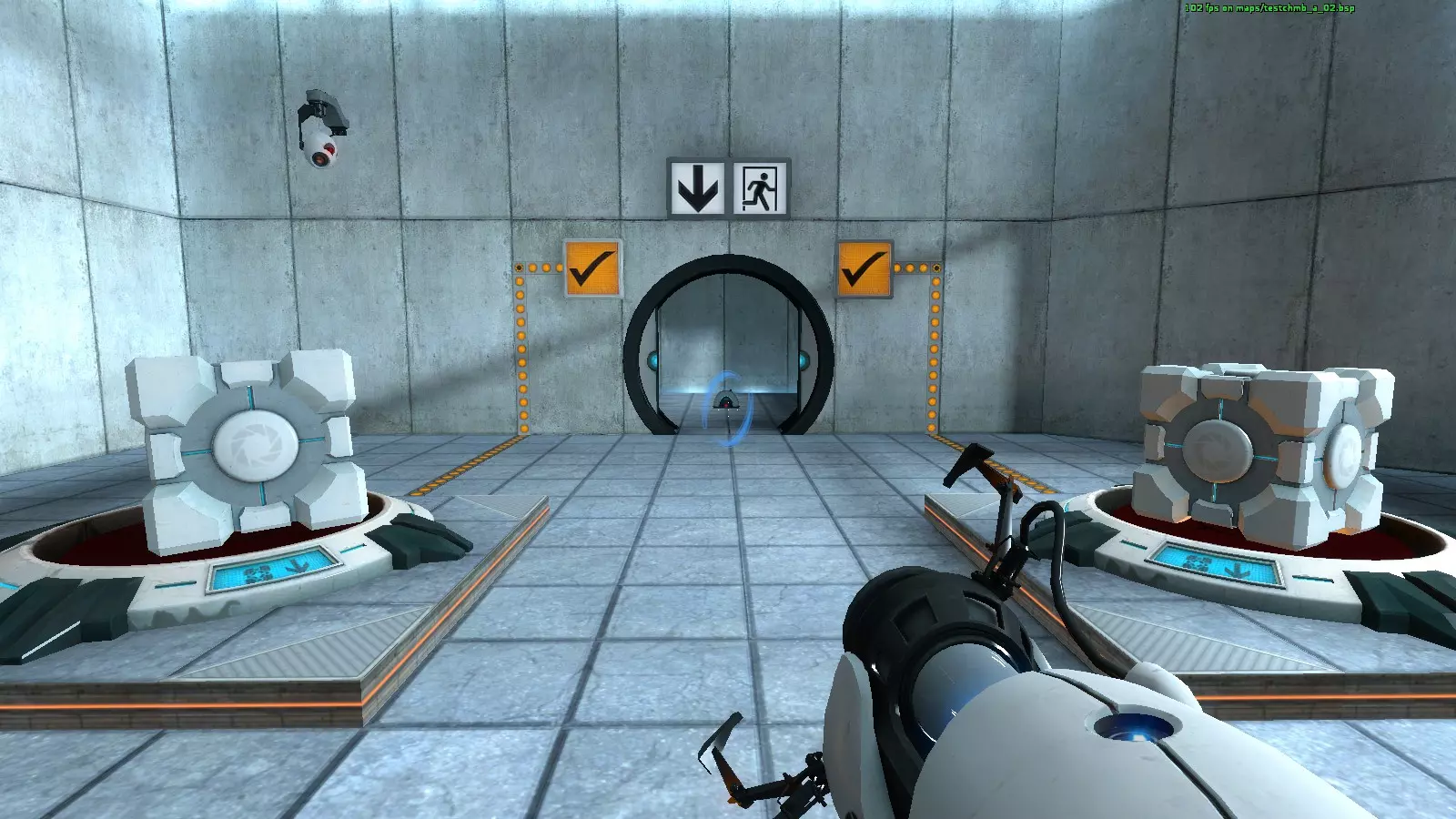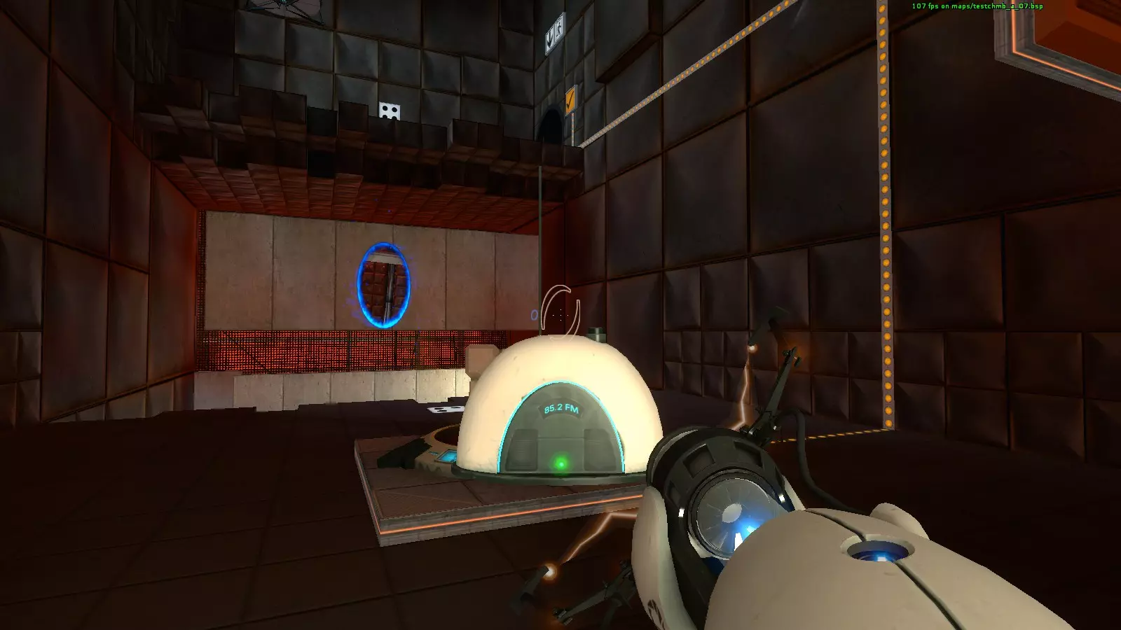 收音机#6 地图:testchmb_a_02.bsp 有一个区域需要放置两个立方体才能打开门,收音机就在门后,所以你不会错过它。但不要穿过门,否则门会关闭导致失败。相反,你需要打开一个传送门来获取收音机。
