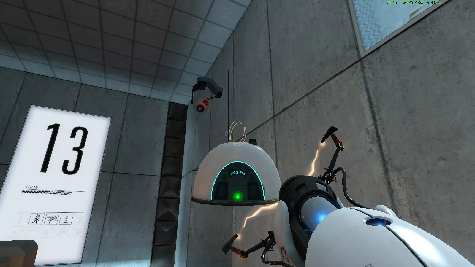 无线电#13 地图:testchmb_a_07.bsp 这里有另一个可以向上跳的区域,当你跳跃时,墙壁会通过液压装置展开并移动。一路向上跳,然后尝试落到墙上,无线电就在液压杆上。
