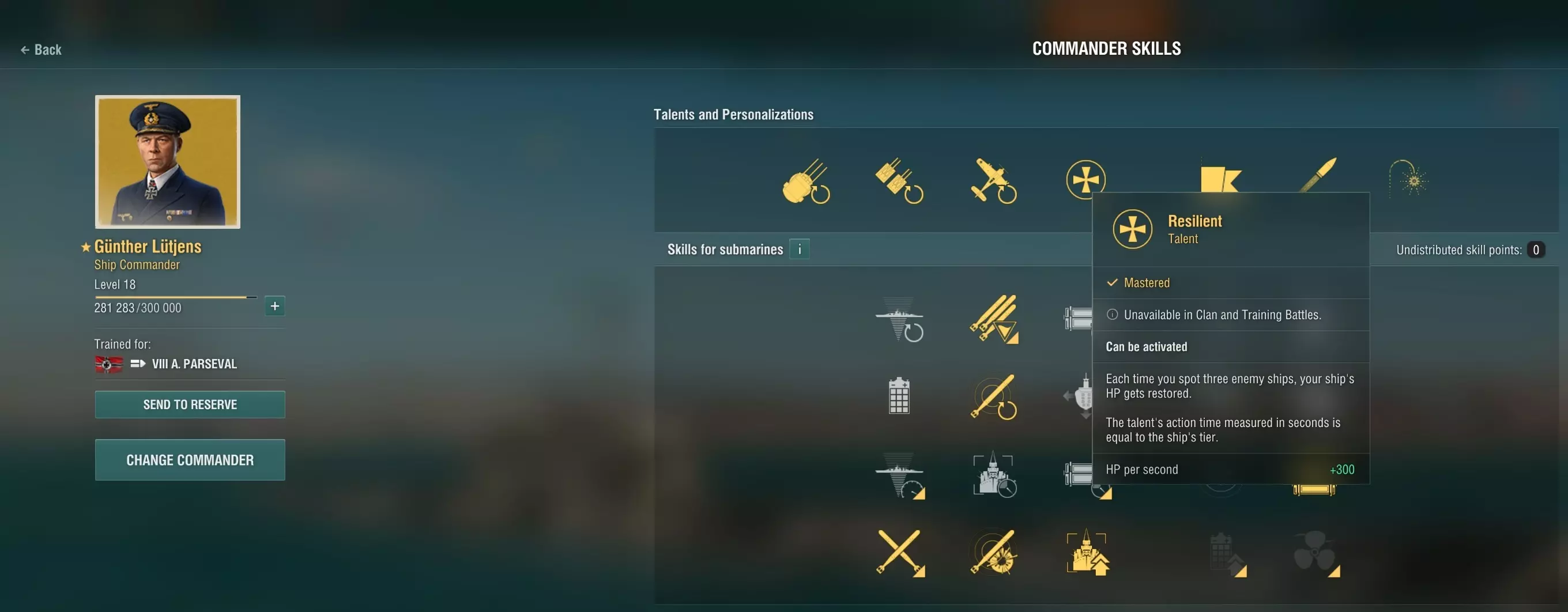它们天生具备猎手般的猎杀能力,能躲避敌方炮火,同时发射通常能命中目标的自导鱼雷。 了解你的潜艇 四个国家的潜艇各有独特特点,彼此区分明显。 国家 鱼雷射程 下潜能力 特长 德国 11.5-14公里 中-高(带消耗品) 自导鱼雷射程最长 英国 10-12公里 极高 下潜能力最高 美国 10-12公里 中等 艉部鱼雷发射管最多,便于撤离时攻击 苏联 11公里 中等 所有等级均使用11公里手动鱼雷,代价是牺牲自导鱼雷的射程美国潜艇是机动性最强的舰船,在近距离被认为是半缠斗型舰船。其舰艏和舰艉配备数量相同的鱼雷发射管,能更好地应对来袭威胁。 指挥官技能 技能树侧重于生存能力,以确保舰船能坚持到最后并造成最大伤害。 1. 清算者 2. 强化电池容量或鱼雷 crew 训练(风险极高) 3. 消耗品专家 4. 鱼雷瞄准大师 5. 肾上腺素飙升 6. 扩大传动轴 7. superintendent 独特指挥官:Günther Lütjens 他是科技系国家中唯一能进行自我修复且可多次使用该能力的指挥官。