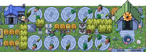 在单个农场建造666个种植地块 要达成此成就,需要在同一张地图上拥有666个种植区域。 提示:使用PINION可以查看你拥有多少块地,最好使用第一个农场,先购买大型地块,当接近目标时,再添加小型地块。按照我展示的第一张地图设计,如果你移除任何燃料转化器,就可以轻松达到666个种植地块。