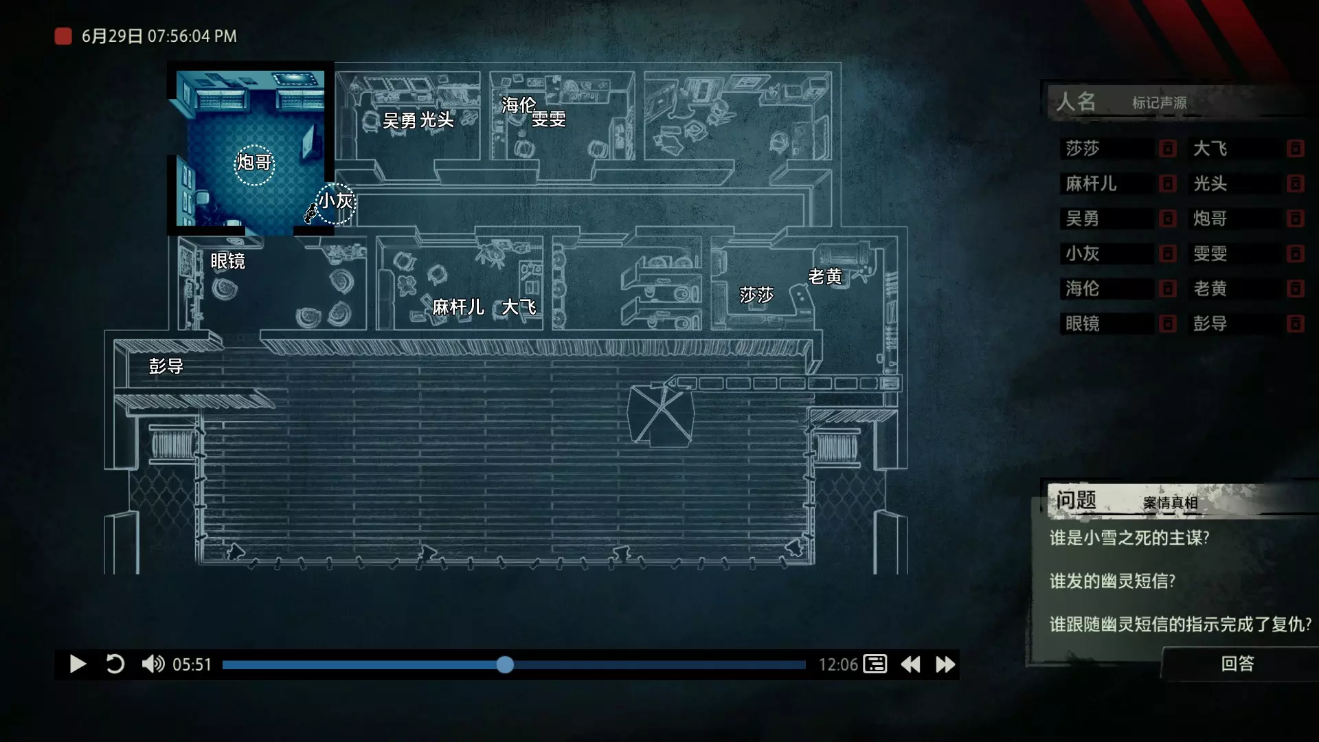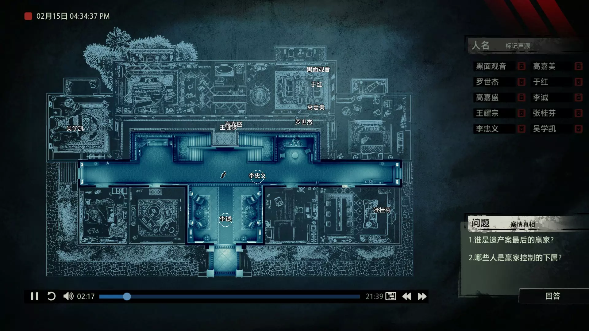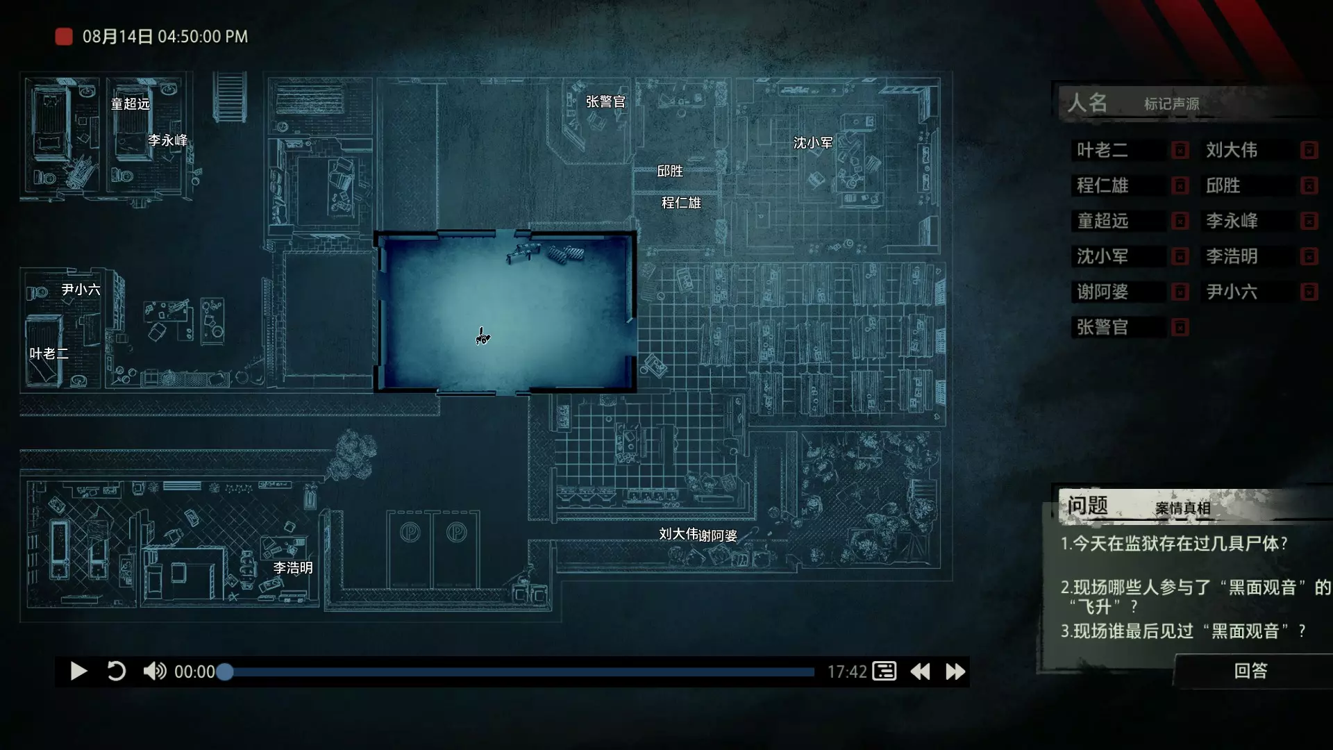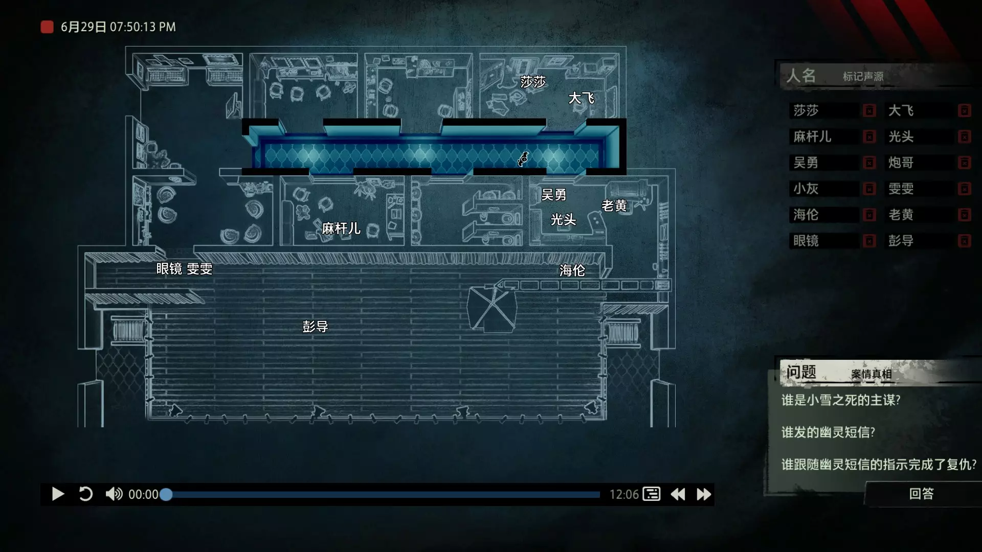 在诸多门类的刑侦学之中,“语言刑侦学”占有其独特的地位。在《“语言刑侦学”学科的理论基础与应用价值》这篇文章中,提到了这样一段话:“按照功能语言学的观点来看,语言无时无刻不在反映人类的内心世界,我们认识的世界是通过语言来实现的。窥探大脑深处的秘密,至少现在需要通过语言这扇窗户来进行。” 而声音,毋庸置疑是传达语言的最重要介质。也正因此,对声音证物的研究与分析成为了获取案件真相的必要手段之一。那么从众多的嘈杂声音中找出真相,是一段怎样曲折而充满挑战的过程呢? 说起侦探题材的游戏,探索和收集可以说是基本元素。我们需要用自己的脚走遍案件的相关地点,寻找散落在犄角旮旯的线索,反复核实嫌疑人的证词找出矛盾,最后揭露真相。例如经典的【福尔摩斯系列】,其中【福尔摩斯:罪与罚】对于喜欢推理的玩家来说,肯定能带来良好的游戏体验。 而本作无疑将犯罪语言学运用得淋漓尽致,在玩法上进行了创新,甚至可以说是另辟蹊径。游戏中的场景没有太多颜色,甚至没有出现过一张完整的人脸。它将所有重点放在了声音上,需要我们一遍又一遍地用耳朵来聆听真相。玩家只需在游戏开始前戴上耳机或打开音箱,然后成为一名“声探”。关于玩法 玩法上没有那么玄乎,这是一个在游玩形式上花了不少心思的游戏,说白了,跟你看电影看小说类似,只不过用游戏【追声】的形式让你坐在电脑前体验了一把。游戏中我们扮演的声探是以上帝视角回归到案发现场的。开始破案前我们会从IPAD上看到一张案发现场的平面图。案件会像舞台剧一样向玩家展开。而底下这段音频的进度条就是整个案件的原声音频,记录了案发过程中所有相关人员说过的话。我们首先要做的是根据不同的声音,声源分别确定说话人物的身份,标记声源。