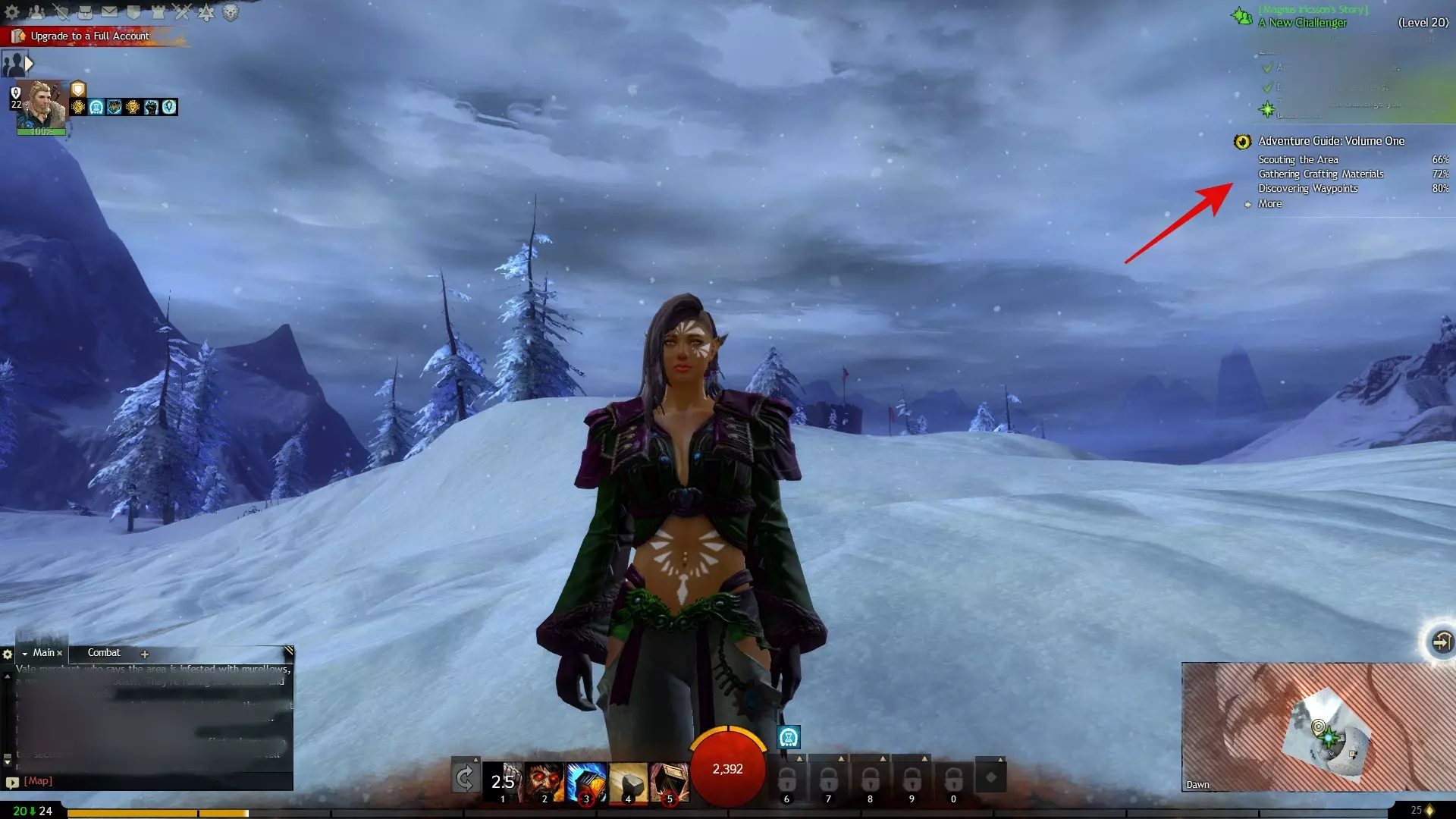 在同一个角落,你还会找到名为【冒险指南:第一卷】的内容。这是一个基于成就的教程,会引导你完成一系列旨在介绍游戏核心系统的任务。绝对值得遵循,而且你可能在不知不觉中就完成了。它不仅会奖励大量经验值,帮助你快速升级,还会教授基本机制。通过这些任务,你将学会如何使用传送点进行快速旅行、复活倒下的盟友、击败敌人以及完成【声望之心】——这是《激战2》中一种独特的关键任务类型。 除此之外,最好的建议就是自然地游玩,跟随自己的好奇心。《激战2》的设计初衷就是奖励探索和 spontaneity。几乎所有行动都能让你获得经验值:探索新区域、收集制作材料、观赏风景以及参与在你游历世界时随机出现的动态世界事件。 游戏中的升级过程自然而然——你几乎无需刻意刷经验或只专注于获取经验值。所以放轻松,享受这个世界,让你的冒险按自己的节奏展开。 你的个人故事从10级开始,之后每10级会解锁新的章节。故事分为三个主要篇章展开。它以特定种族的起源故事开始,让你了解角色的背景和文化。随着你不断推进,你将通过加入三个主要势力之一的【密语教团】、【守夜人】或【德曼修会】,卷入泰瑞亚大陆更大的冲突之中。最终,你的旅程将在一场拯救泰瑞亚的高风险战斗中达到高潮。 个人故事的有趣之处在于,尽管你的选择会塑造游戏体验,但所有可能的路径在游戏的背景设定中都是官方认可的——至少在某种程度上是这样。具体来说,无论你是否直接参与,相关事件都会发生。也就是说,无论你做出何种选择,这些事件都会以某种方式发生,只是根据你的选择,你的角色可能扮演了核心角色,也可能将任务交给了故事中的其他人。 不过,这并不会让你的参与显得不那么重要。许多任务都让你有机会改变结果、影响角色,并引导你旅程的基调。把它看作是塑造你的命运——世界正沿着既定的轨道运行,但你的决定可以改变这条道路,并在其中塑造你角色的传奇。 你的技能包