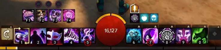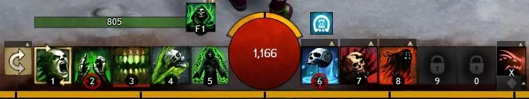 技能栏右侧(6至10号槽位)用于放置治疗技能、通用技能和精英技能。这些技能由你自行选择,能为你的游戏风格提供强大支持。 6号槽位:治疗技能——每个职业都有几种治疗技能可供选择,你可以挑选最符合自身需求的那一种——有些是持续治疗,有些是爆发治疗,还有些能提供移除症状等额外效果。 7-9号槽位:通用技能——在11至20级之间解锁。这些技能提供移动能力、增益效果、减益效果、召唤物、群体控制等功能。你需要消耗英雄点(通过升级和探索获得)来解锁它们。 10号槽位:精英技能——在31级解锁。这些是高影响力技能,冷却时间较长,通常用于扭转战斗局势或提供强大的辅助效果。与辅助技能类似,它们必须使用英雄点解锁。