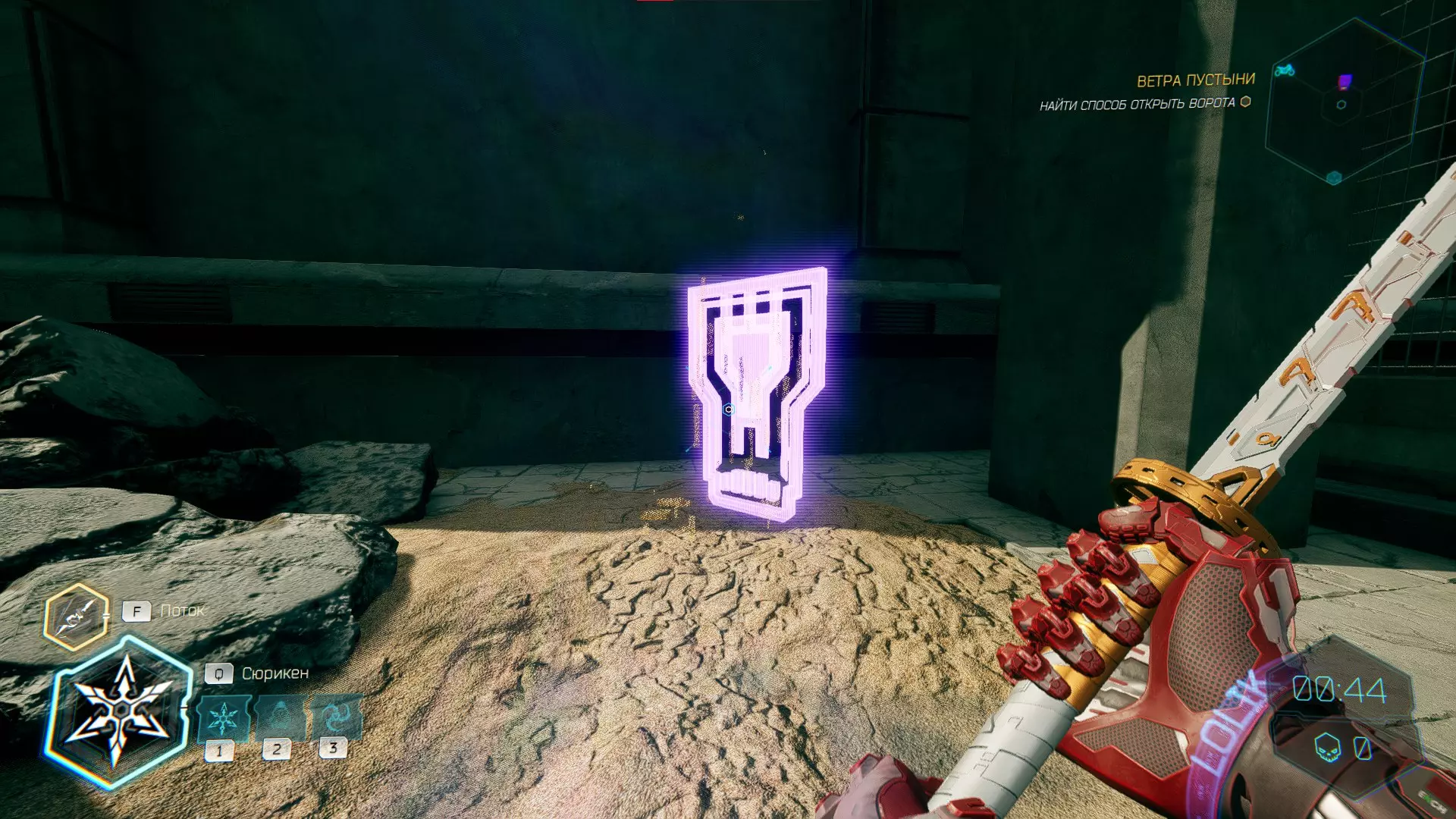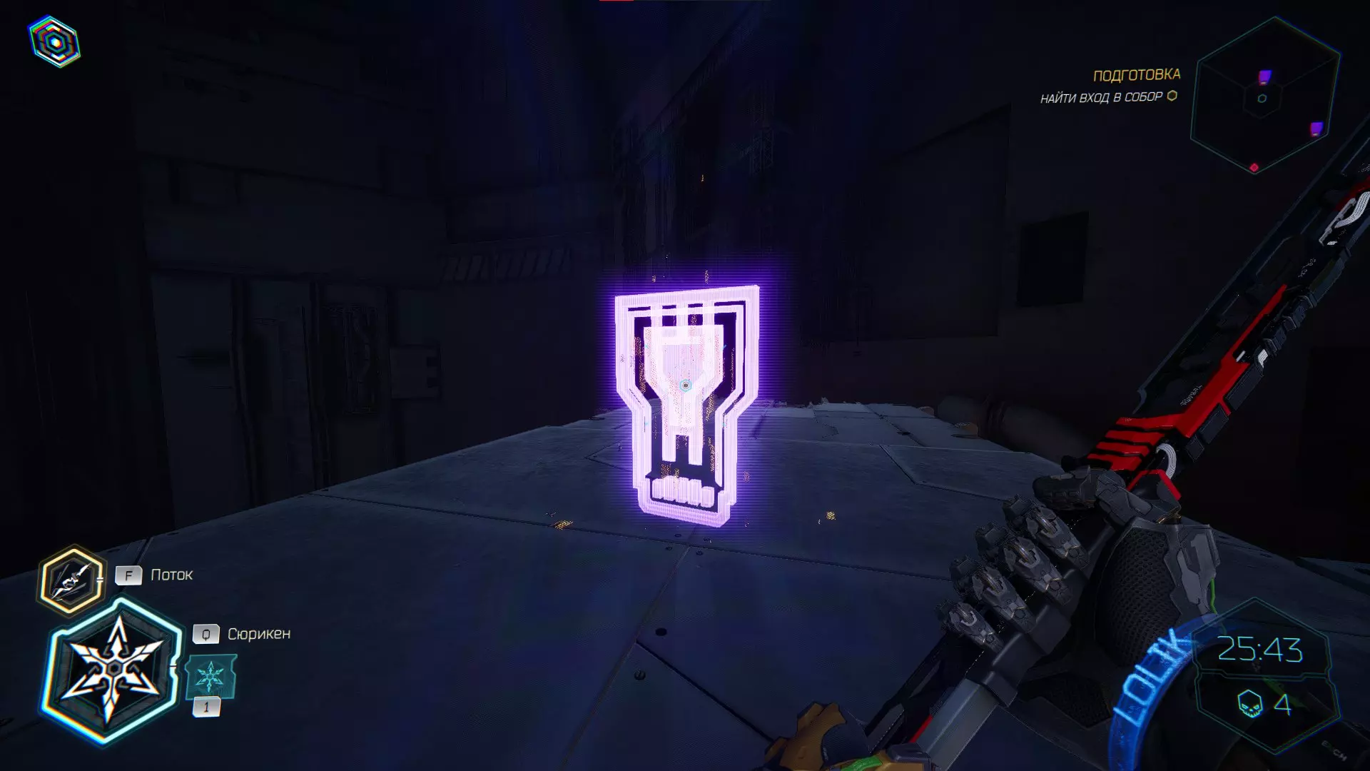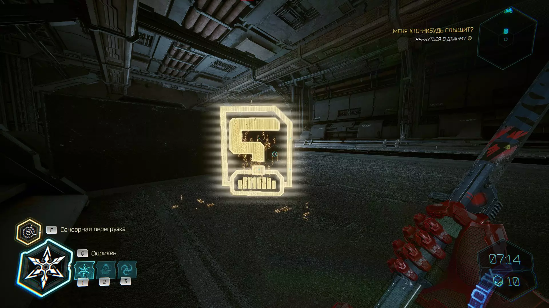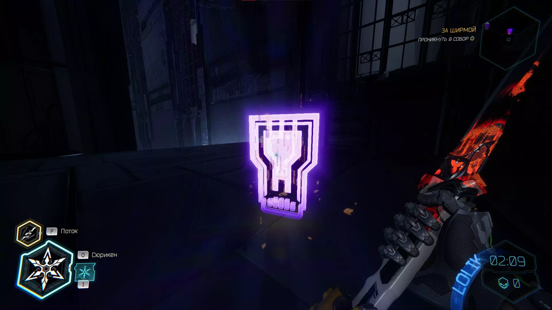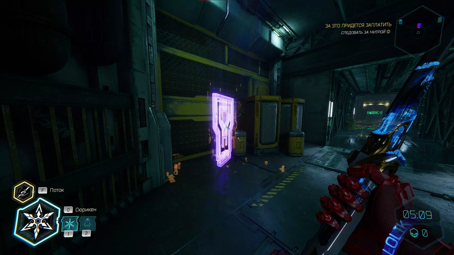 继续前进。飞到桥上,左上方会有一面墙,需要向墙投掷手里剑,以便吸附到平台上。对面会有另一个带有模块的小平台,飞到上面并拾取强化道具。 隐藏挑战【赛跑】:穿过所有数据传送门。