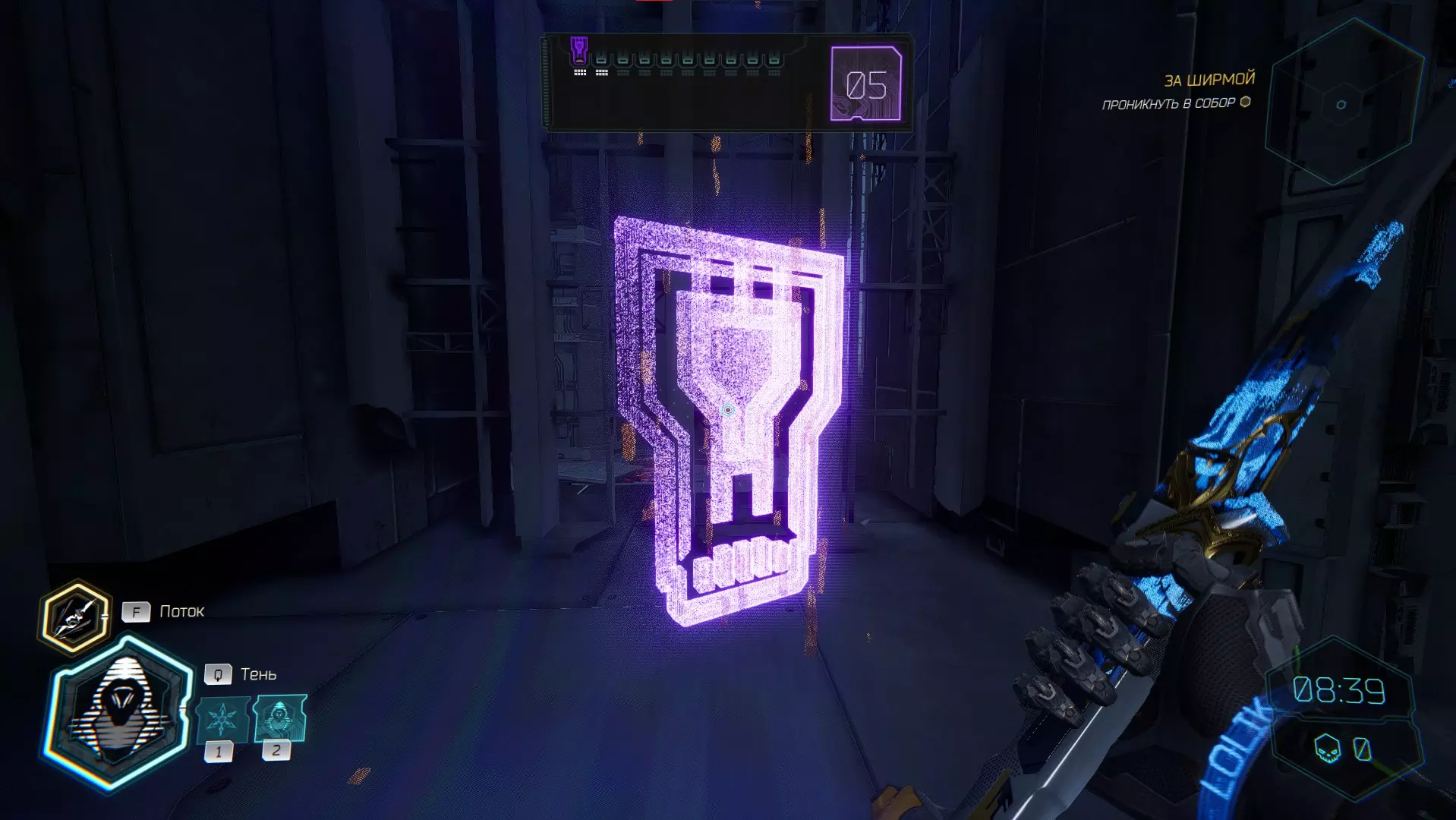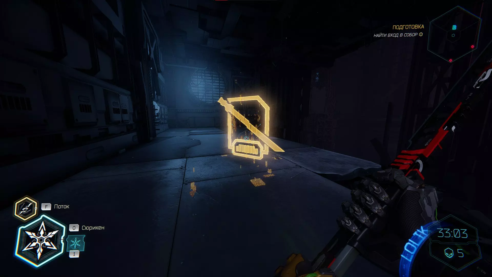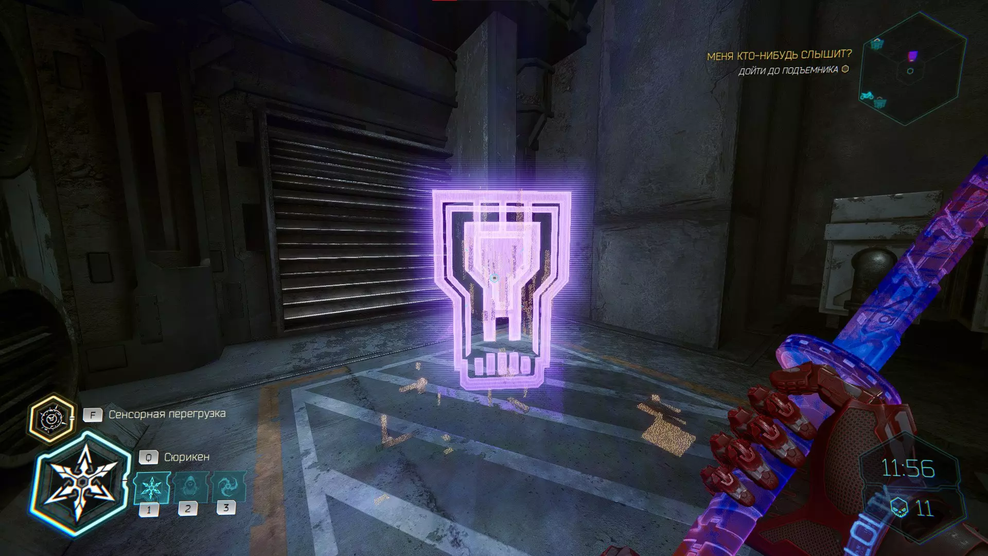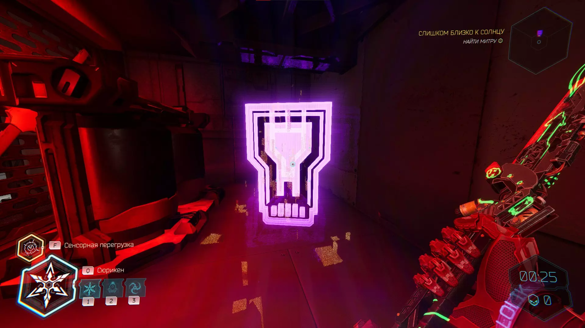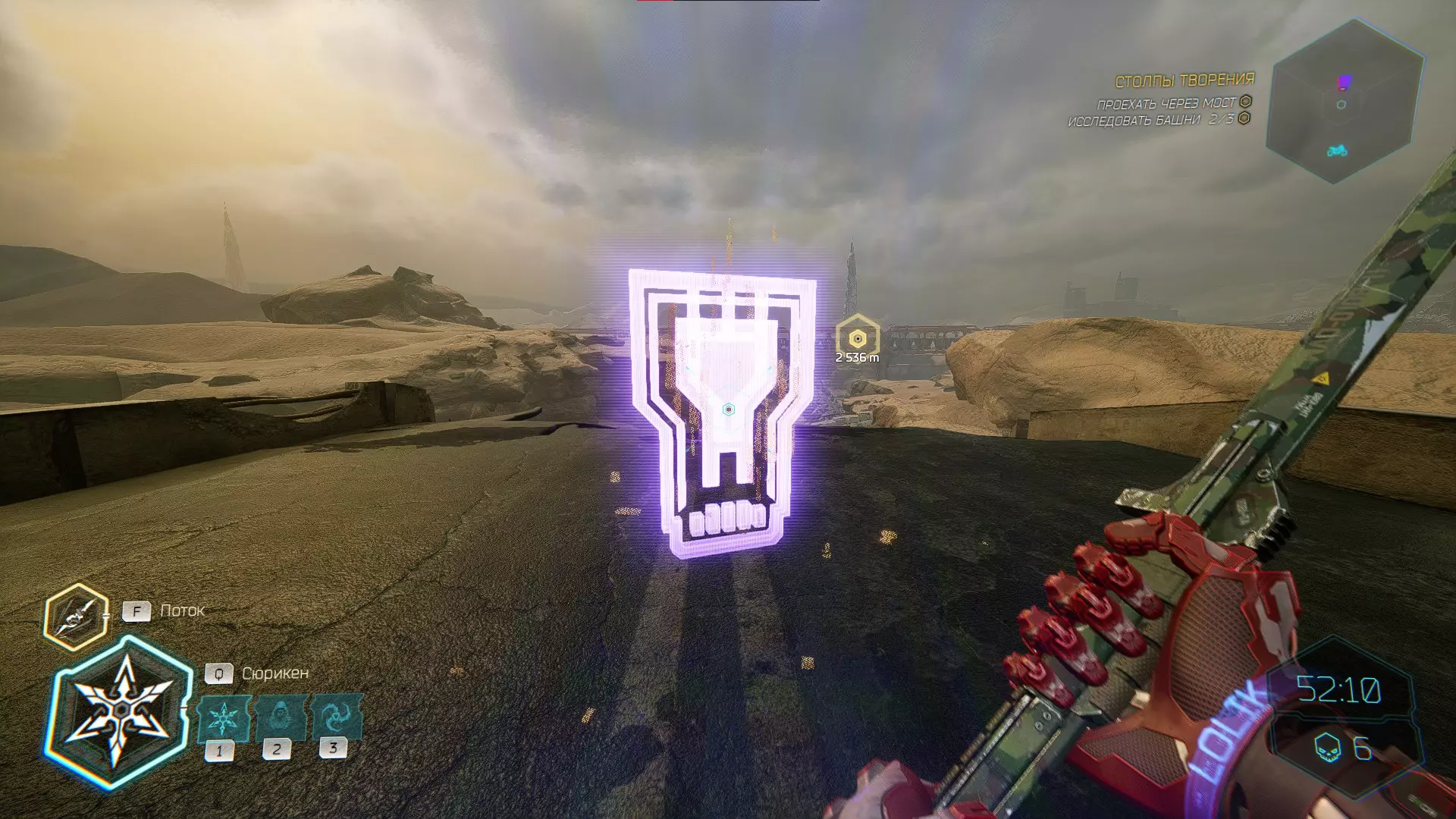 继续前进。飞到桥上,左上方会有一面墙,需要向墙投掷手里剑,以便吸附到平台上。对面会有另一个带有模块的小平台,飞到上面并拾取强化道具。 隐藏挑战【赛跑】:穿过所有数据传送门。