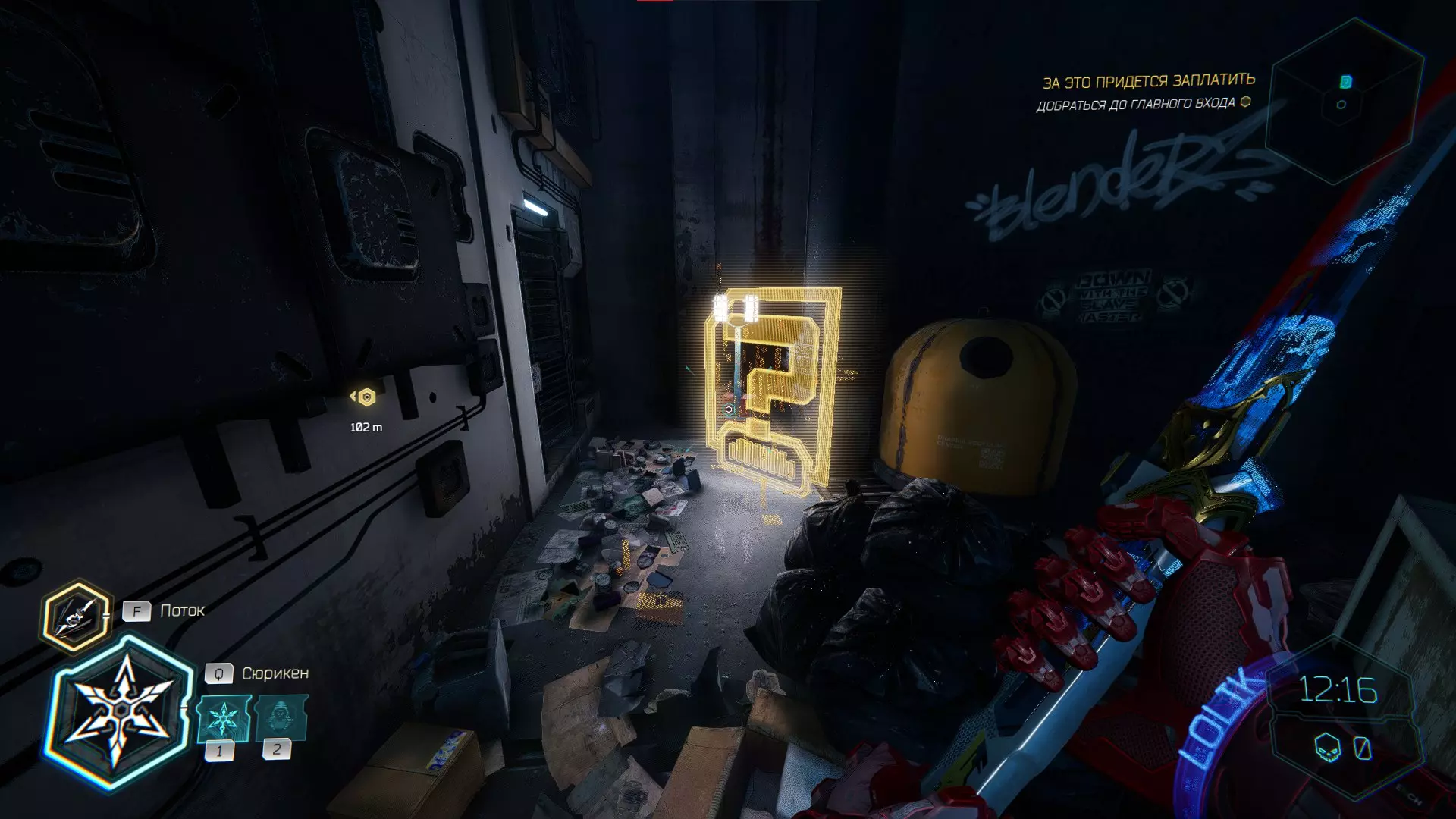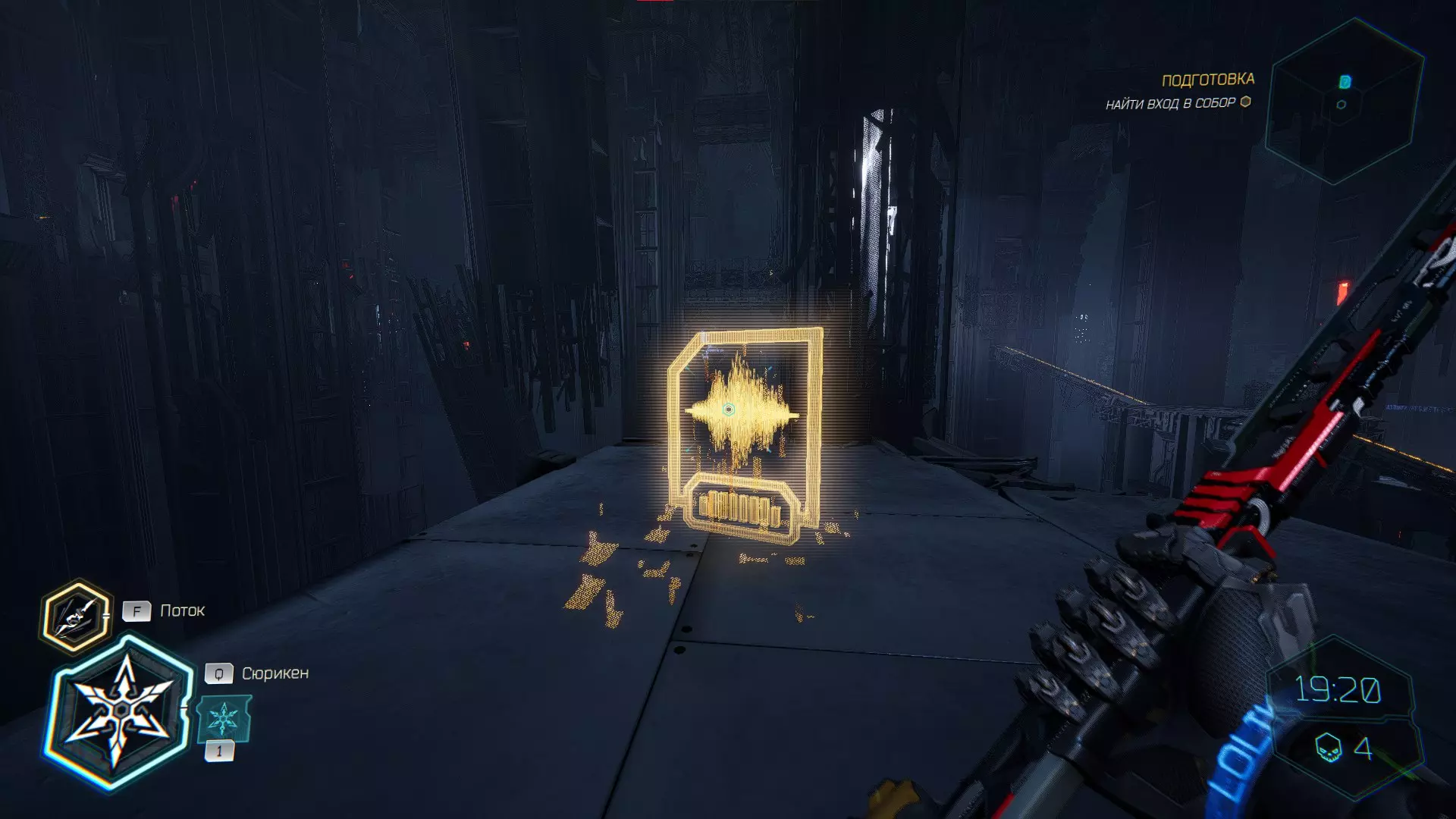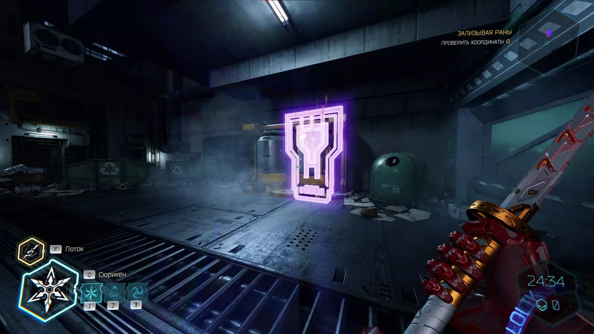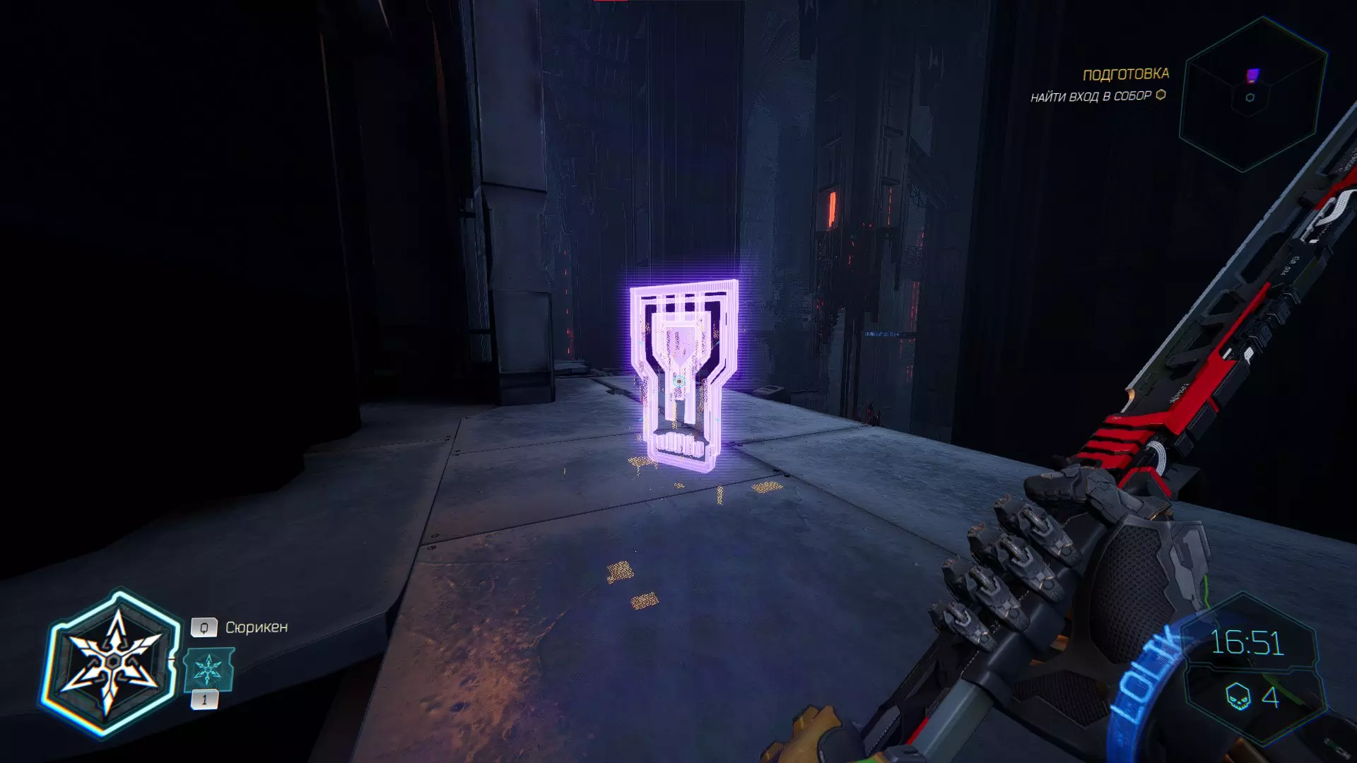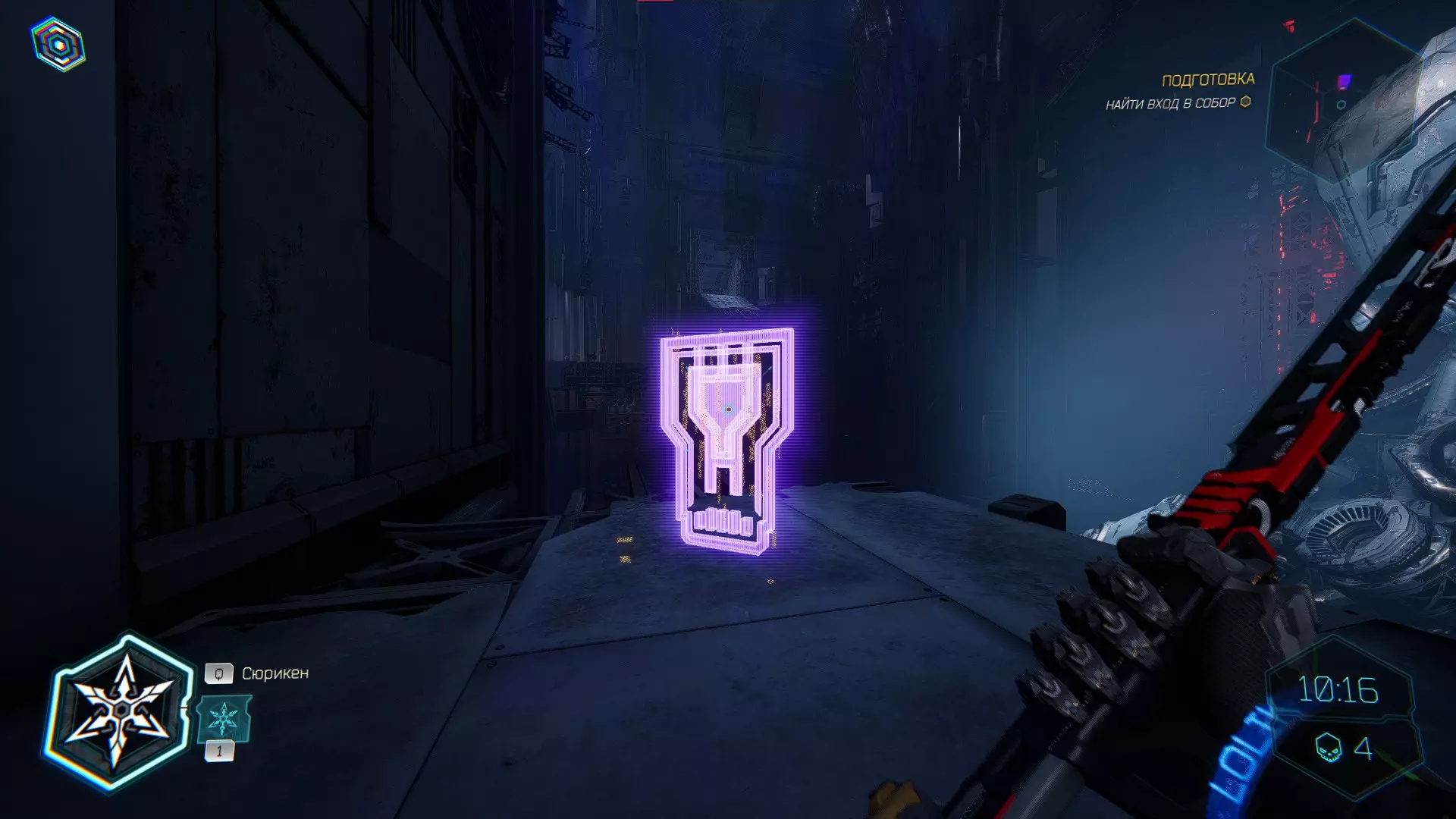 击杀接下来的敌人后,你会注意到右侧的房间,需要将手里剑扔向盾牌。之后,沿着墙壁奔跑,转身会看到黄色的台阶,你可以抓住它并获取碎片。 隐藏挑战【Рубака】:击杀所有敌人。