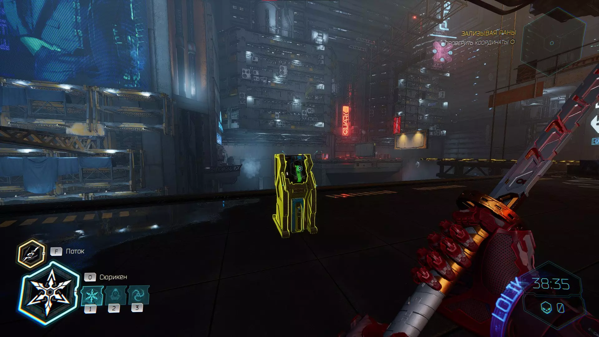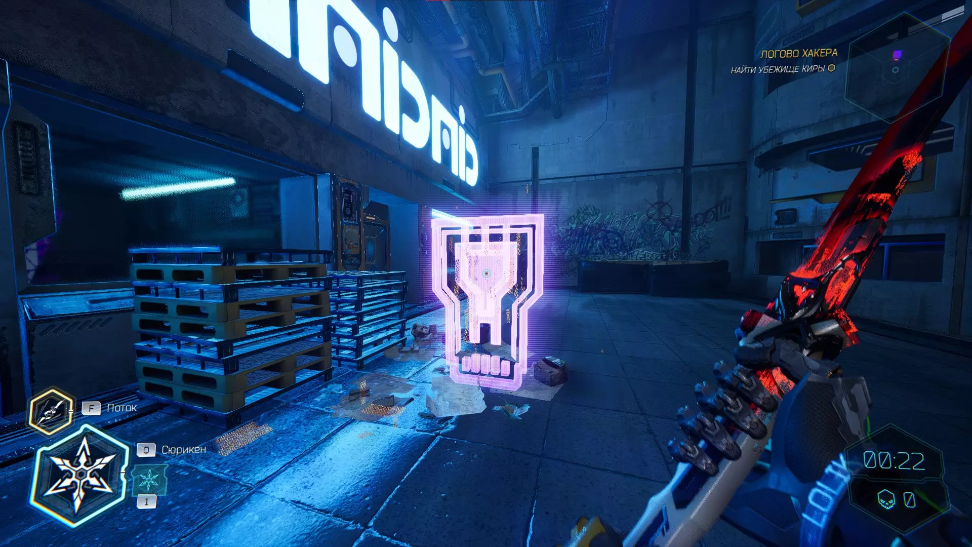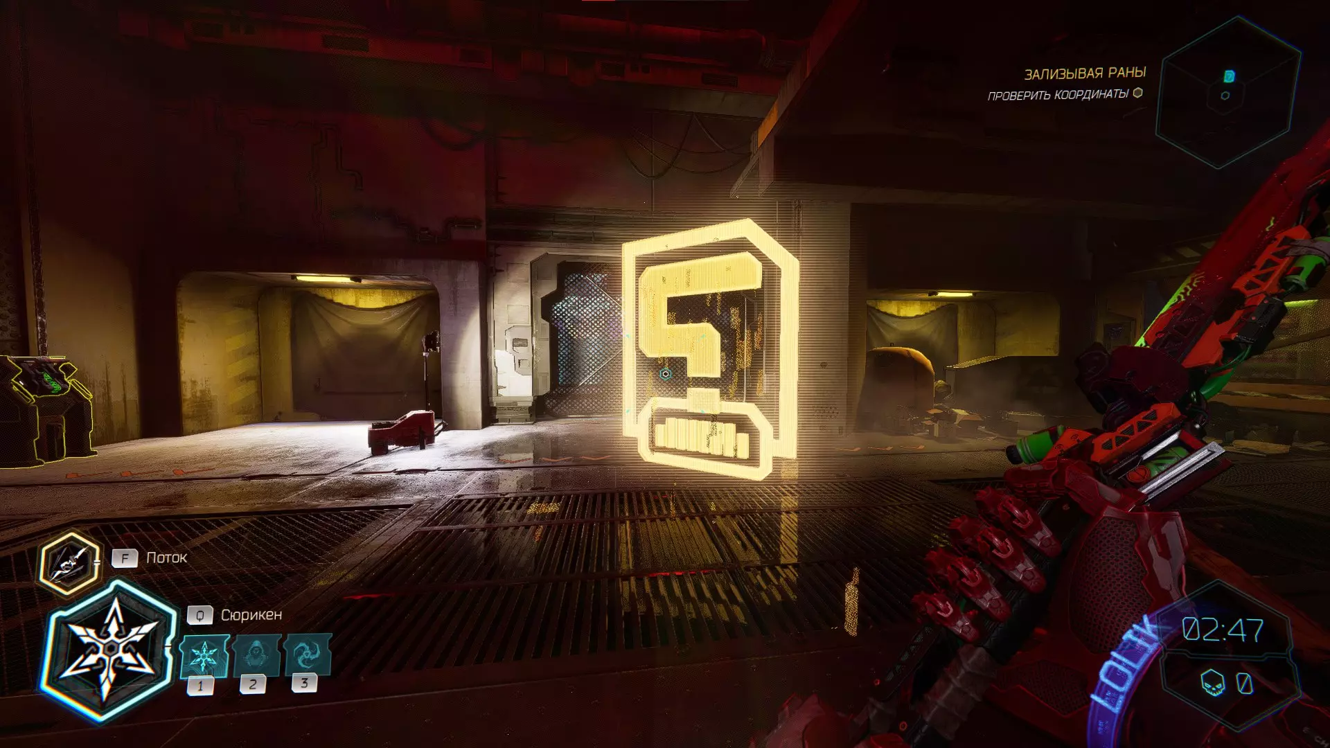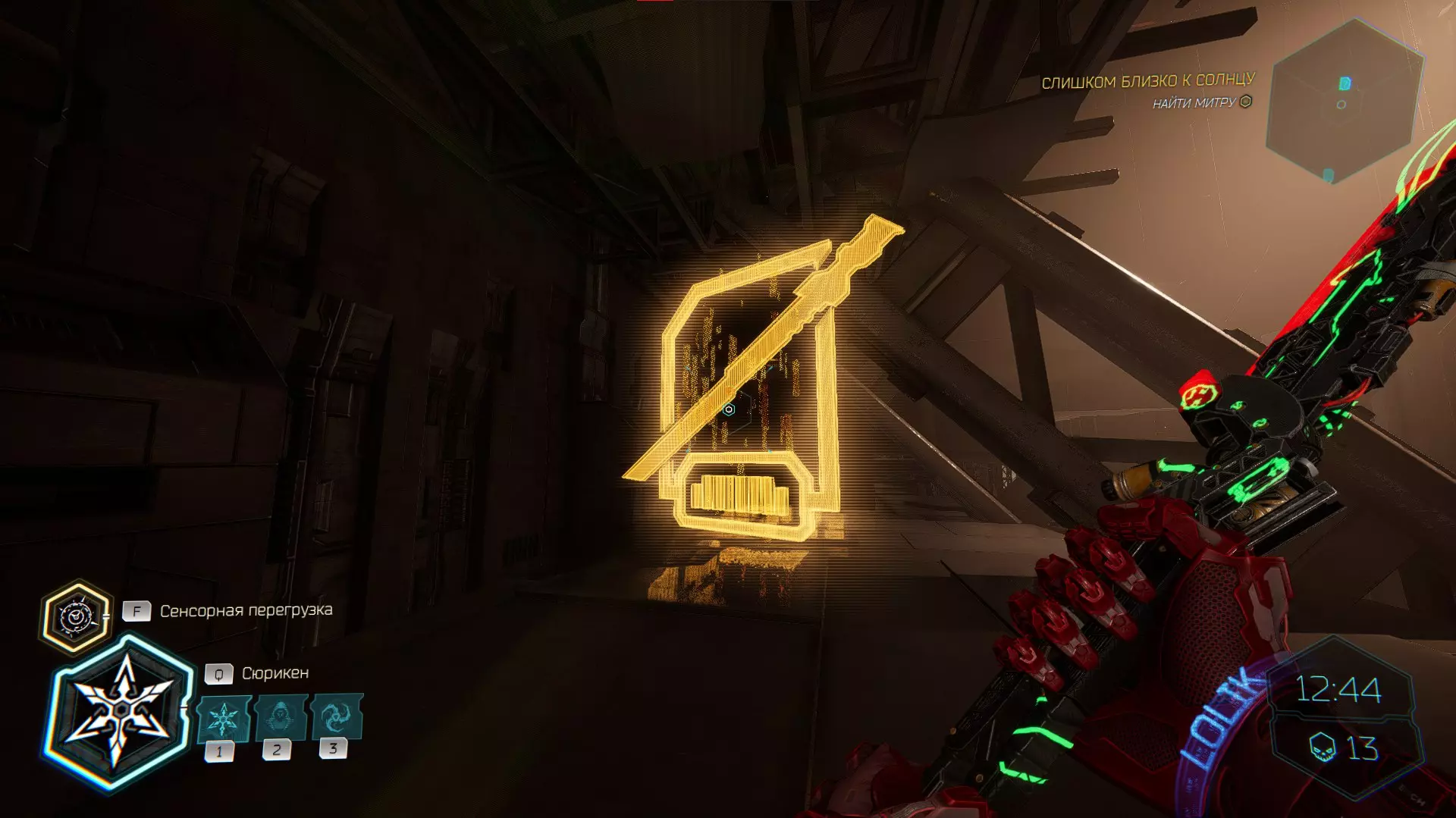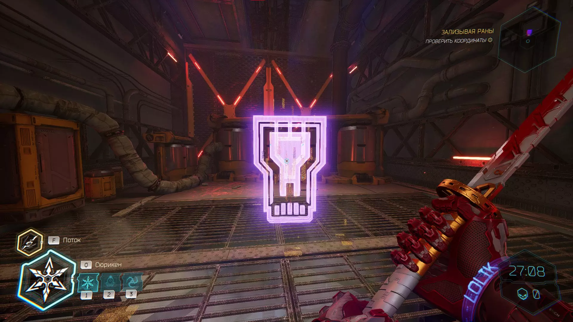 击杀接下来的敌人后,你会注意到右侧的房间,需要将手里剑扔向盾牌。之后,沿着墙壁奔跑,转身会看到黄色的台阶,你可以抓住它并获取碎片。 隐藏挑战【Рубака】:击杀所有敌人。
