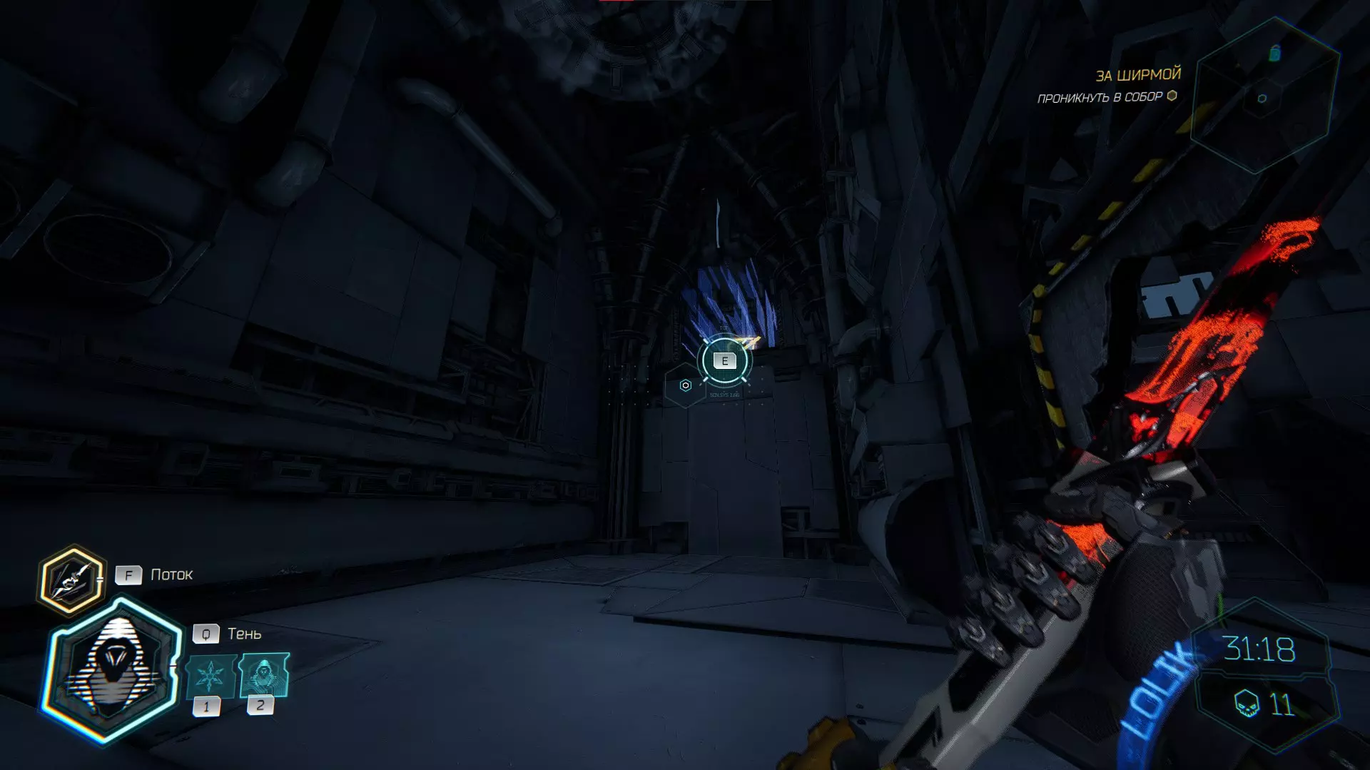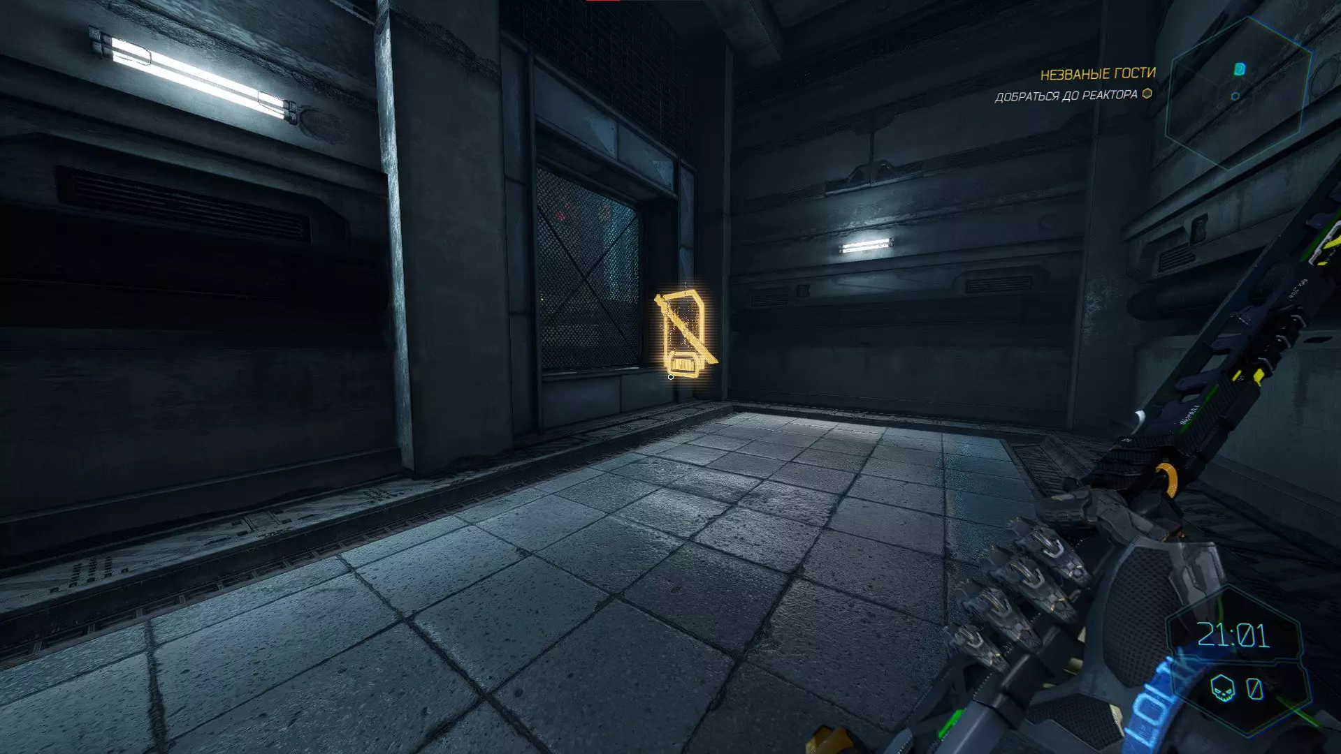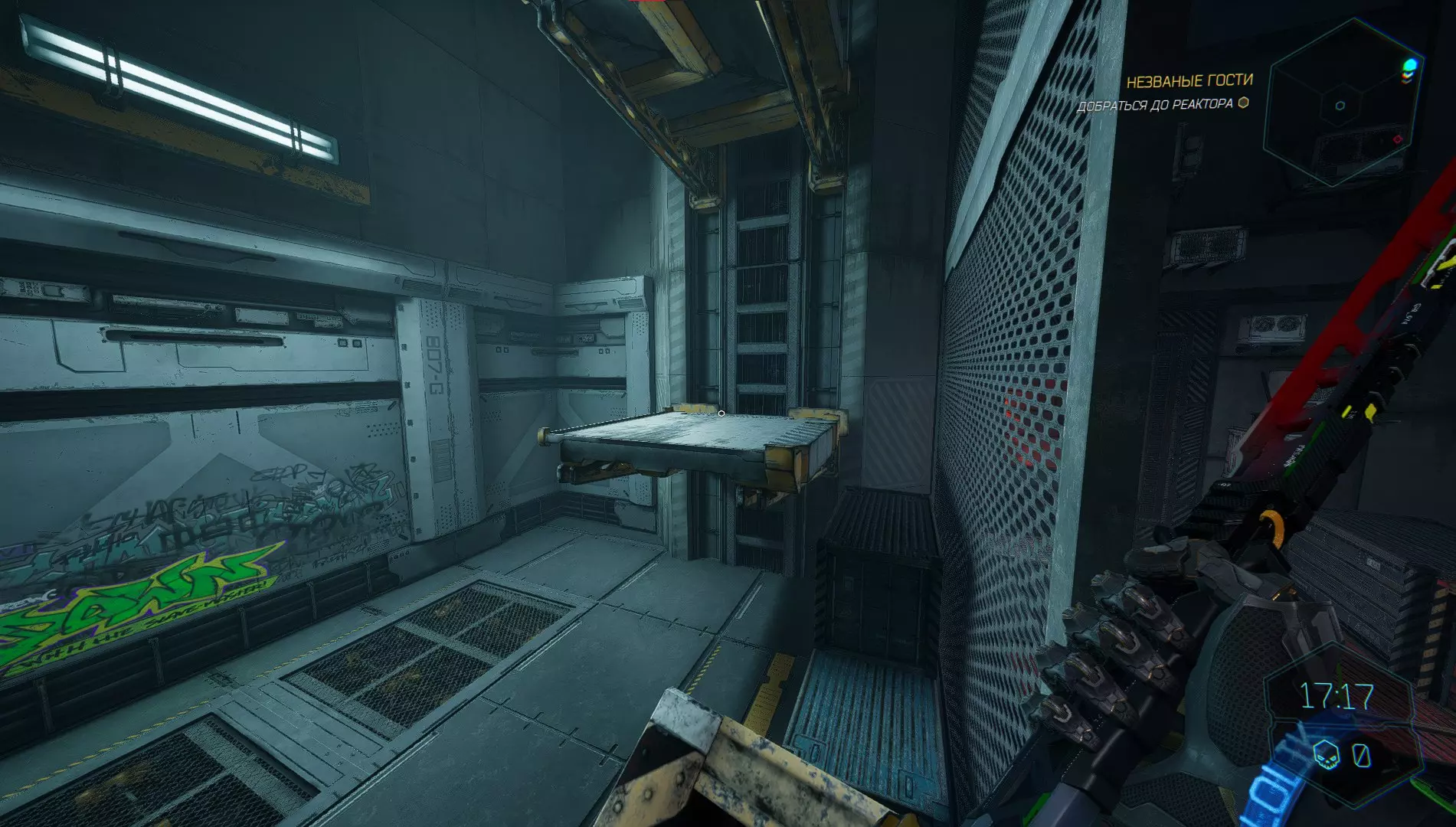 穿过光柱桥后,你会被吸向平台,不要急着继续往前跑,向右转,你会看到一个通道。打碎格栅,获取碎片。 武器【内部干扰】