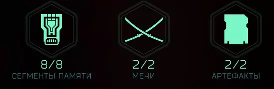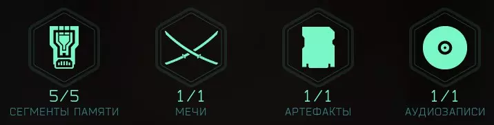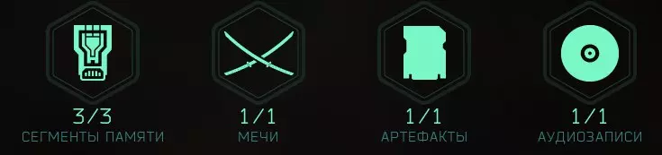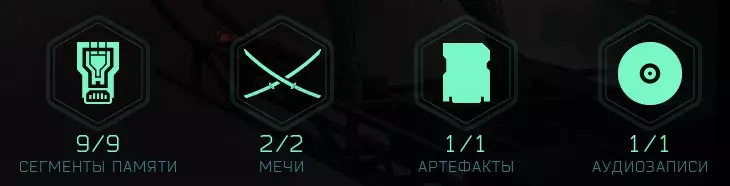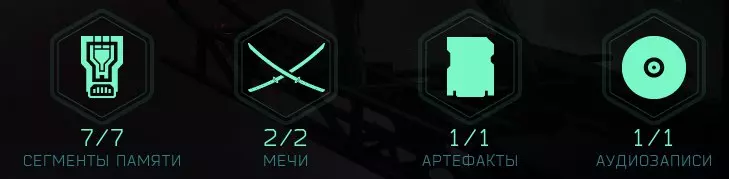 《幽灵行者2》中包含多种收集品:剑、录音、 artifact(原词)、记忆片段和试炼。游戏中共有16把剑、8份录音、21个artifact(原词)、72个记忆碎片和10个试炼。部分记忆片段可通过在每个试炼中达成银级和金级评价获得。成就