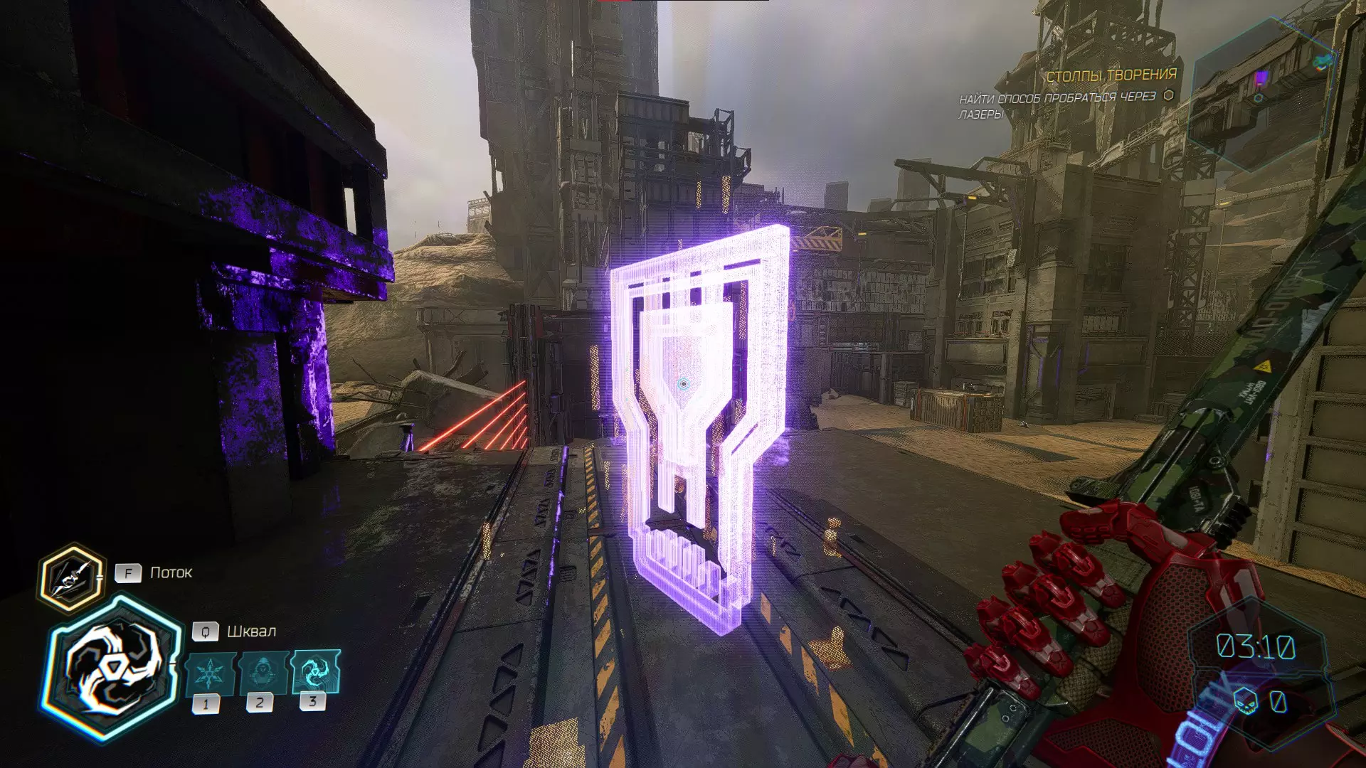 接下来你将再次遇到蓝色墙壁。在平台上停下并转身。塔上会有另一堵墙。爬上塔并获取碎片。 【神器:Голотат】