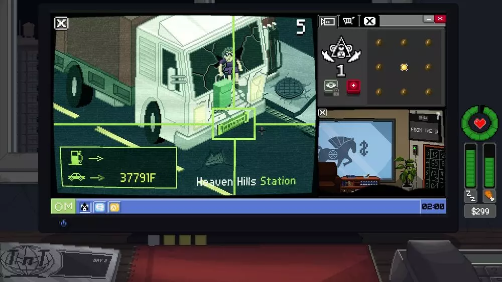 Next I strongly suggest searching the words Heaven Hills and Crash to get learn about the [loco I'm doing this from memory] some more searches will turn up Kimberly Pegg and how to contact both the driver and Kim. You have some on how to close the camera You can tell the couple to surrender to the police, and this will trigger an ending in the end of the game; You can blackmail the couple to give you an amount of 35$ every morning. You can send Kimberly Pegg a video of the truck when it stops by the gas station and in the next day it will be in the news that the truck was burned with the couple inside and Kimberly texts you telling her group will sew the player's avatar on their jacket's back; You can send a video to shock.tv, get a reward for the video, and in the next day's newspaper; there will be a story that the truck was set on fire with the couple inside. The delivery guy talks about this cage as well: "Consider this: Shocking things can happen in the restaurant where machines eat." Cage: Foreign Lady Apartment - 2 cameras - Achievement - Item This is a Two camera cage. One camera you watch the lady learn English. You need at least 3 translated word to learn a group that you can use to call call her. At the end of the show her lover will walk in and she will go dress as as a dominatrix, not that Shock.tv will be interested because she doesn't do anything. You can catch her in front of the TV anytime between noon and midnight. Sometimes Her lover calls her by her first name. But to get her last name you need her kitchen and to click on the calendar on the right side of the screen. But if you catch her on the phone between 10 and 11 she will always says her first name. Search both names you get her phone number. And then if you pick one of the groups three times something happens and you cant do anything else. Talking about HATRED will encourage her to murder the man visible in the camera. One can only speculate the reason, but she will turn herself in. Afterwards, she will call the player and give him 195$, and laughs at the end of the conversation. (Google "kekekeke" memes) Talking about CATTLE will make her to buy a cow and place it in her kitchen. Yup. Really. Talking about SEX will make her come over to your apartment. You can pay her 50$ for a dominatrix session, and she will forget her whip, which will act as a trophy. - Item Talking about LOVE will unlock an achievement, and the next day you will have a job available (8h / 85$). The job description and person commenting your job performance are in the same gibberish language that Peole is speaking, so one can only guess- Achievement The delivery guy has something to say about this cage: "Consider this: Only perseverance can make the Tower of Babel fall." Cage: Convenience Store -Routine observation study This camera is only active between midnight and either 8 or 9 am. Really, this camera can be ignored until midnight, Click the Logo, button, gun, register, basically EVERYTHING clickable. then make it a thumb nail and wait for some customers. I think the only two you really need are the Scruffy man (who is clickable) asking for stuff for a "picnic" huh... but he gives you enough stuff to realize its a liquor store. search the logo and liquor store and you get the store name, and I'm not sure if you need to search the name or its enough to get you the address and phone number. The other customer you need click is the man with the Horse-mask who robs the store. I need to confirm, but I think you can get the security company's name on the first night. if you say the Horse man is stealing and search that with the stores name. However, the next day's news paper will give you enough clues to find out the biker gang turned security. If you call the Store while there is a customer, the clerk shoots whoever is in front of him, you can record this and send it to Shock.tv which will be accepted. If you text security after you call the clerk you get extra dialog. The cage closes if the clerk kills a customer or gets robbed so many times without the security firm stopping the bad guy. You can become an informer for the security firm and it will pay you every time they catch the thief thanks to you. The store gets robbed once a night around 2 or 4 am ish. The delivery guy has this to say :"Consider this: Sleeping Beauty's eyes needs an extra pair of eyes. Besides, two engines are more effective than one." Need to check, but I'm pretty sure this has a Special observation study Cage: Elevator - Item - Job - Special observation study This is another one that is only active at night. But this one has a time crunch. The old man will die if you wait to long to deal with him. When you get this camera Click everything and then leave him alone. He wakes up at 11p and that is when things get interesting. Be there for him when he wakes up at 11, Okay, you can miss night one, I think you get all the clues on night two, but still. I like to get all I can as fast as I can. Also, I need to test it again, but if you aren't checking on him before 1130 he goes right back to sleep... after talking to the mascot, he reads, and you need a few clues to be able to select that its a romance novel if you want to prove to his that you are legit. But when he stops reading out loud you can make him a thumbnail and check on other things until he starts writing. He starts writing at 4am and this is how you get enough clues that he's a janitor and use to be a mascot for a basketball team. Finding out the name of the building. You need to wait until he goes through his writing on the wall, that way you can pick out the "tallest building" hint. After that, he will talk to his the doll about basketball. You can find out the mascot's name (Mr. Cannonball), which in turn leads to the name of the area (Foggy Island) where the basketball team plays (Corsairs). Combining area name + tallest building in the ProOwl Search gives you the name of the building (Treasure Tower). Comb