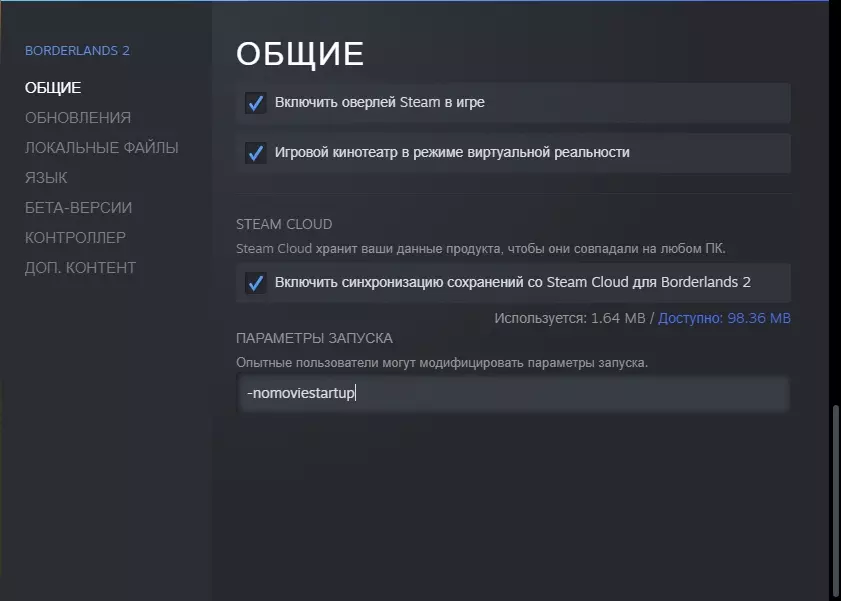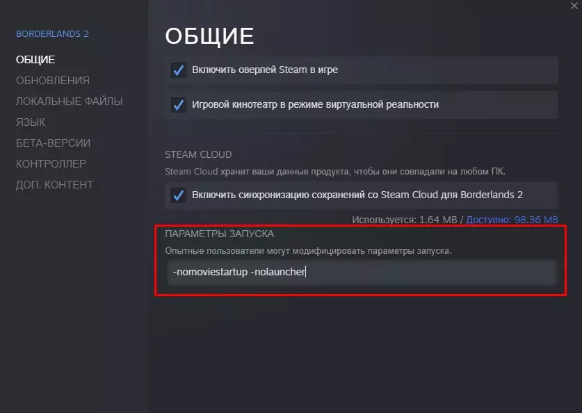 3. 你很棒。 3. 如何跳过启动器 | 俄文 1. 使用启动参数 -nolauncher 右键点击库中的《无主之地2》--> 属性 --> 常规 --> 启动选项