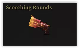 特效:火焰伤害。不可双持。 特殊攻击:发射旋转火焰弹,消耗2发弹药。 普通攻击消耗1发弹药。该武器无需装弹。 解锁条件:击杀灯笼 spirit 50次。 属性: 伤害 暴击倍率 弹匣容量 元素效果触发几率 750x2.01(黄色弹药)50% 优点:普通攻击伤害高 | 触发燃烧效果几率极高。 缺点:速度慢,且移动速度比其他近战武器更慢 | 特殊攻击强度不高/无法暴击。 最具影响的铭刻: 对处于元素效果下的敌人造成【+65%武器伤害】 → 非常可靠。 对生命值高于50%的敌人发动第二阶段攻击时,【幸运一击几率+100%】 → 最高可提升50%伤害输出。若3米范围内仅有1个敌人,有50%几率造成两次伤害 【触发频率较高,可提升50%伤害输出】 蓝色:元素效果触发几率翻倍 触发元素效果时,将其扩散至8米内所有敌人 【该武器本身元素触发几率就很高,此效果非常实用】 绿色:对处于燃烧状态的敌人造成的武器伤害提升50% 紫色:攻击速度提升25% 武器1和武器2共享彼此的伤害类型 【搭配另一把元素武器时,凭借其极高的元素效果触发几率,将能频繁触发融合效果】 最佳搭配卷轴