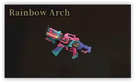 闪电碎片(+25%闪电伤害,免疫电击效果的负面作用)。 闪电狂热者(当你对敌人施加电击效果时,也会对自己施加电击。处于电击状态时,+75%闪电伤害)。 与升华的最佳搭配 猫: 雷电支配(提升闪电伤害)。 野火(击杀受元素效果影响的敌人后提升射速)。 元素之怒(对受元素效果影响的敌人提升伤害)。 狗、鸟和虎:无特别值得提及的搭配。 评分: 猫:B 狗:B 鸟:C 虎:C 普通武器。 projectile速度过慢,且 hitbox 不稳定,无法像其他步枪那样稳定暴击。Alt Fire尚可,但在大多数情况下不实用。对于拥有元素协同效果的猫来说很不错,而对于双持时能轻松施加电击效果的狗也适用。但如果你想真正享受这把武器,要留意【+100%投射物速度】的铭文。彩虹拱门