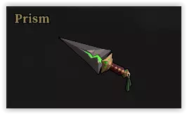 特效:腐蚀伤害。无需装弹。 呈直线飞行并可反弹障碍物。可多次反弹,且能穿透敌人以及部分敌人持有的大型护盾。单个投射物可多次命中同一敌人。 解锁条件:击杀10次剧毒掷弹兵。 属性: 伤害 暴击倍率 射速 弹匣容量 元素效果触发几率 150 3.0 2.10/秒 1(蓝色弹药) 30% 优点:极高精度 | 无后坐力 | 无需装弹 | 高暴击伤害 | 高元素触发几率。 缺点:在开阔区域反弹效果较差 最具影响力的铭刻【橙色】 投射物+1,弹药消耗+100% → 提升100%伤害输出。 对处于元素效果下的敌人造成+65%武器伤害 → 非常可靠。【弹跳】幸运一击几率+100% → 在室内环境中极为强力,在其他场景下依然有用。 【暴击生成法球】每当你造成暴击时,有80%的几率生成一枚火焰/闪电/腐蚀法球,自动追踪附近敌人 → 得益于棱镜的高精度和高元素触发几率,该效果可轻松触发瘴气或爆炸(融合效果)。 【蓝色词条】幸运一击几率+50%,稳定性-50% → 这把武器的后坐力不成问题。 【绿色词条】任何与元素效果相关的词条。 射速+25% 击杀敌人后,5秒内射速+50% → 射速对这把武器的提升极为显著。 对处于腐朽效果中的敌人造成的武器伤害+50% → 非常可靠。紫色武器1和2与另一把武器共享伤害类型。搭配雷电/火焰武器时,由于棱镜的高元素触发几率,可以轻松触发瘴气或爆炸(融合效果)。与卷轴的协同效果最佳。