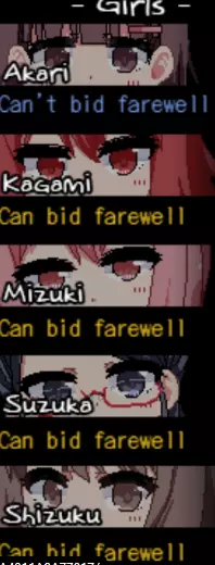 闪耀礼盒 - 增加20点羁绊值, 《超级放纵》杂志 - 赠送30点警觉等级,MP+50, 免作业证书 - 允许跳过特定迷你游戏。闪耀礼盒和免作业证书是你真正需要的。如果送给女孩闪耀礼盒,她当前的羁绊等级会一次性自动提升。免做任务证书可以让你跳过家庭作业、田径赛跑、寻宝活动和门科战斗。所以,如果你难以完成某些事情,免做任务证书或许就是你正在寻找的答案。 结局 每个结局本质上都是一张带有某种文字的女孩照片。如果你将女孩的好感度提升到100级并完成与好感度100级相关的事件,就能解锁她的结局。你需要从由依、莉绪和美雪之中选择一人。你所选的女孩会交给你一个信封。如果你解锁了三人行或四人行的场景,就会获得这张照片,没有选择的余地。 如果你解锁了其他女孩中的一人,你的母亲会问你:“你做了所有想做的事吗?”如果您回答“暂不”,系统会为您提供与她们告别的机会。您可以与所有已解锁的其他女孩告别。在右侧列表中,您可以查看哪些女孩已解锁(可告别),哪些未解锁(不可告别)。要与她们告别,您需要走向她们并进行对话。告别之后,请回家以完成游戏。游戏将通过您的图片库自动启动,之后您就可以打开女孩给您的信封了。