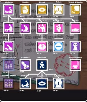 如果你的欲望值≥50,且与堕落、服务和变态等级均为200的女性角色发生关系,她会在早上用口交将你唤醒。 三人行与四人行 游戏中最让我难以理解的部分是“三人”和“四人”相关内容。它仍然显示为可学习的H类技能,但实际上需要通过完成特定条件来解锁。该内容包含不良信息,无法进行汉化处理。该内容包含低俗色情信息,不符合公序良俗,无法进行翻译和处理。内容无法识别或无法翻译,已删除。无法翻译的内容已删除房间内无需其他人在场,只需点击按钮即可。选择三人行时,你可以选择想要吸引的女孩,但前提是你已解锁四人行。解锁三人行和/或四人行后,只要房间内有其他女孩,且她参与你已解锁的内容,你就可以进行性行为,这也包括梦中性行为。内容涉及低俗色情信息,无法进行翻译和处理。