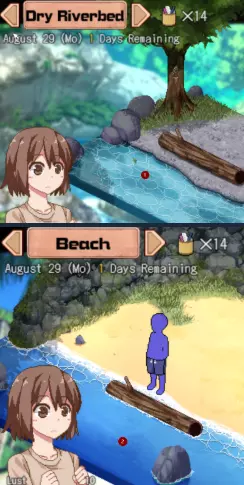 Двиттер После того, как вы вернетесь домой с барбекю, девушки расскажут вам о Дуиттере. Вы можете публиковать сообщения в Dwitter один раз в день, используя компьютер в комнате Юи или Рио. У вас есть три варианта публикации: 1. Сделайте все возможное! 2. Я сделаю все возможное в сексе! 3. Я собираюсь развлечься на улице! Неважно, какую публикацию вы выберете. Когда вы опубликуете четвёртый пост в Dwitter, вы получите уведомление от Szrin с фотографией. Опубликуйте еще два поста, и вы получите уведомление от Шрин с фотографией ее трусиков. Опубликуйте еще раз, и вы получите еще одну фотографию Шрин с игрушечным медведем без глаза, прикрывающим ее интимные места. Хм, этот медведь выглядит знакомым. Зайдите в кондитерскую и нажмите на медведя, у которого нет глаза. Опубликуйте еще раз пост в Dwitter, и вы получите уведомление о том, что Шрин уходит на пенсию. Отправляйтесь в кондитерскую и поговорите с Сидзуку Рекомендуемая первая игра Они предназначены для общего ознакомления, поскольку некоторые движения девушек хаотичны, и вам придется подстраиваться под них. 2 августа Вы начинаете с навыков «Ручная работа», «Стоп-датчик» и «Мастурбация». Сохраните свои 30 очков навыков и перейдите на следующий день. Зайдите в кондитерскую и купите: Карандаш-победитель x 1 Финальный резак x 1 Пенящееся мыло x 1 Желе от насекомых x 1 Отправляйтесь в высохшее русло реки и поместите желе из насекомых на дерево. Сделайте домашнее задание по мытью посуды или математике. Помните, что идеальный результат стоит еще 300 иен, и вы получите +3 к симпатии девушки. Возьмите деньги, которые вы заработали за выполнение домашнего задания, и вернитесь в кондитерскую. Купите еще как минимум два желе для насекомых. Отправляйтесь на гору и поместите желе из насекомых на два дерева. Возвращайтесь домой и сделайте домашнее задание по мытью посуды или математике. Лучше сделать то же самое, чтобы можно было повысить уровень девушки. Отправляйтесь на Гору, а затем поднимитесь к Святилищу. Войдите в пещеру. Нажмите на поле «Офферторий». Положите 5 иен. Вам придется сделать это 20 раз, чтобы разблокировать все H-сцены. Спи с Миюки - сцена 69 Миюки и дядя изучают один из навыков уговоров - навыки выполнения домашнего задания. Я рекомендую Homebody, навык мытья посуды. 3 августа Вы узнаете о Менко. Вы можете выполнить побочный квест Менко уже сейчас, но я рекомендую отложить его на потом, так как он долгий и его начало обойдется в 500 иен. Я рекомендую вам заняться сбором насекомых утром, так как большинство мероприятий для девушек проводятся во второй половине дня. Итак, отправляйтесь на Гору, соберите двух жуков и поместите еще два Желе из жуков. Вы хотите сохранить одно очко действия для домашнего задания. Если вы не выполнили домашнее задание, над которым работали вчера, сделайте это. Если вы достигли максимума, сделайте другой. Вернитесь к ящику для пожертвований и сделайте пожертвование в размере 5 иен. Соберите насекомых из высохшего русла реки и поместите больше желе из насекомых. Выполните еще одно домашнее задание, снова попытайтесь досчитать до 100, прежде чем переходить к следующему. Поговорите с одной из девушек, если ее Привязанность < 20. Переспите с Юи. Изучите еще один из навыков выполнения домашнего задания Coax. Опять же, я предпочитаю Househusband, так как мытье посуды, как мне кажется, продвигается у меня медл