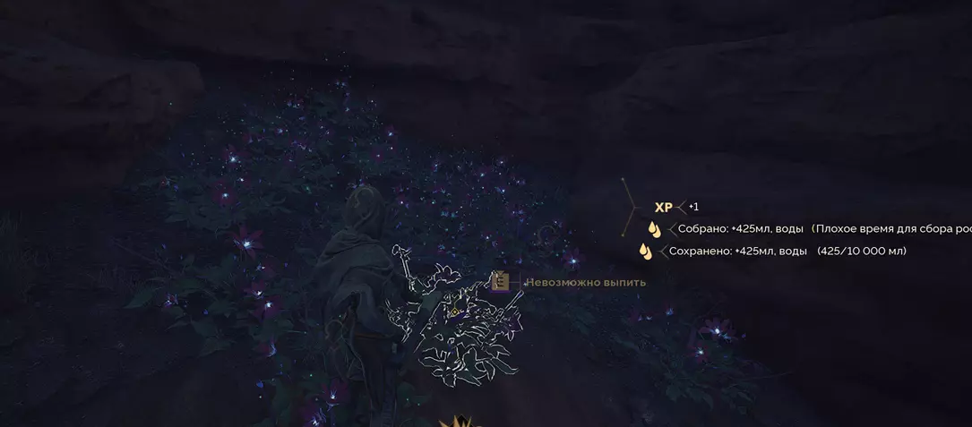 等待合适的时间(最好是接近深夜,此时水分含量更高),寻找可以收集露水的植物。然后只需收集所需的数量即可。