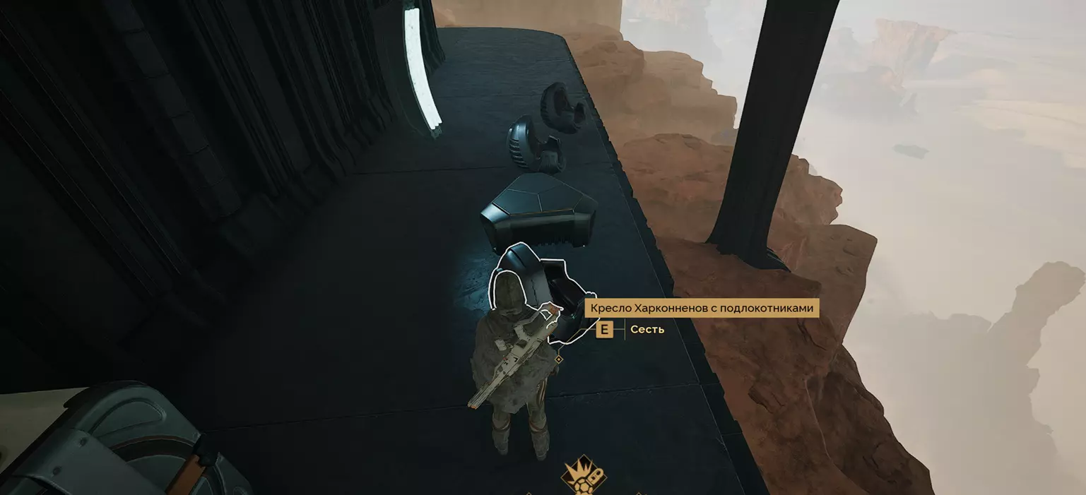非常简单。在自己的基地建造椅子,收起武器工具(如果步枪在“3”键位 - 先拿起它,之后再次按下“3”,它会背在身后),然后按“E”坐下。