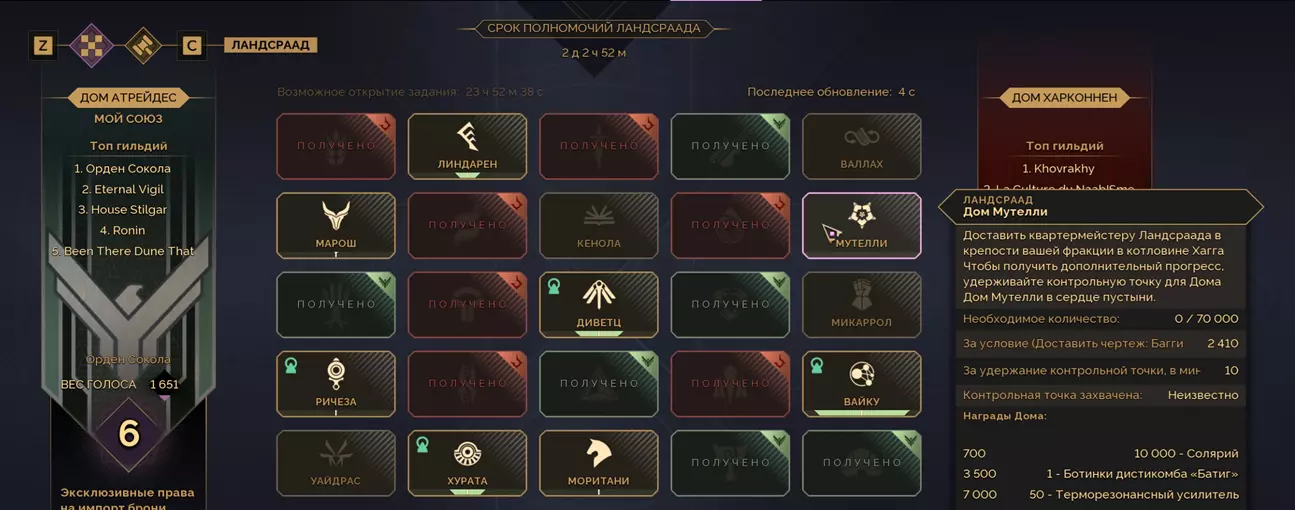 加入势力。在阿特雷迪家族和哈克南家族之间做出选择。双方代表均位于“船坞”贸易站。不要错过。 家族操作员