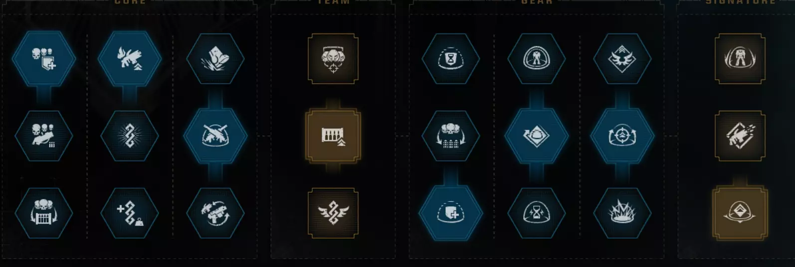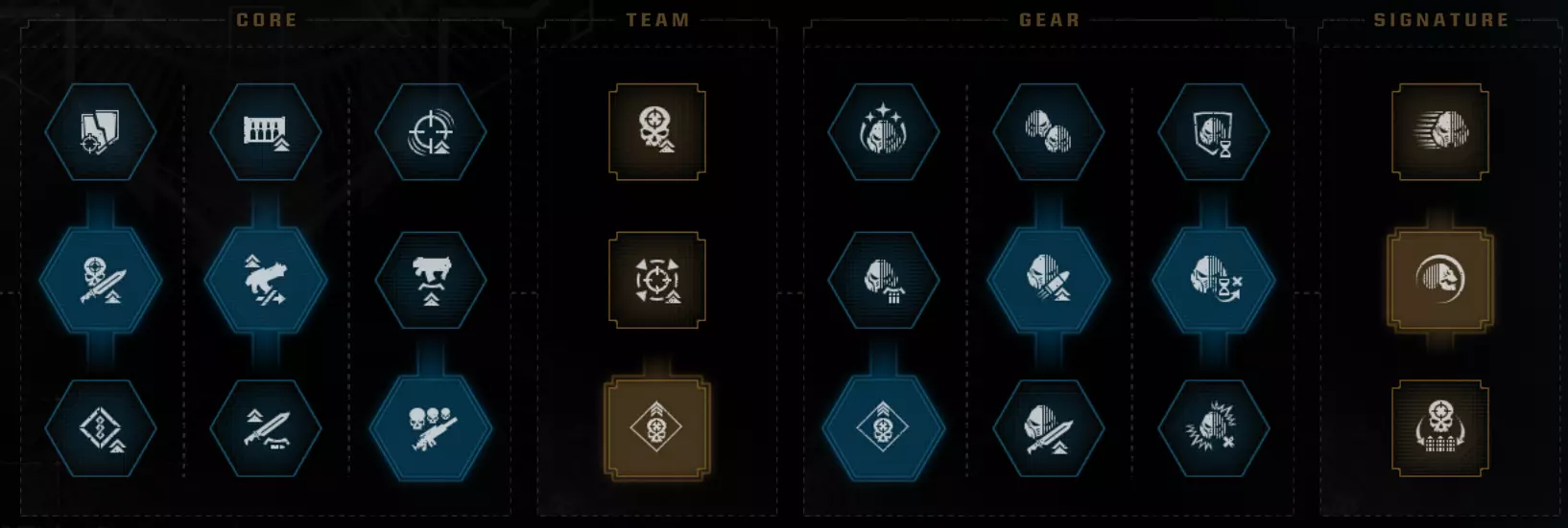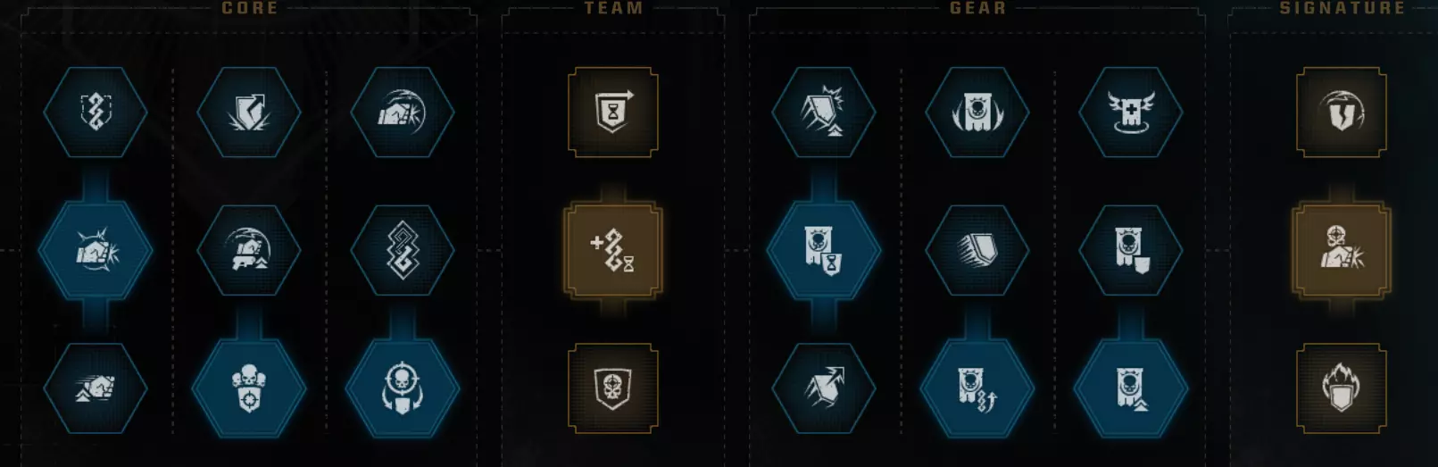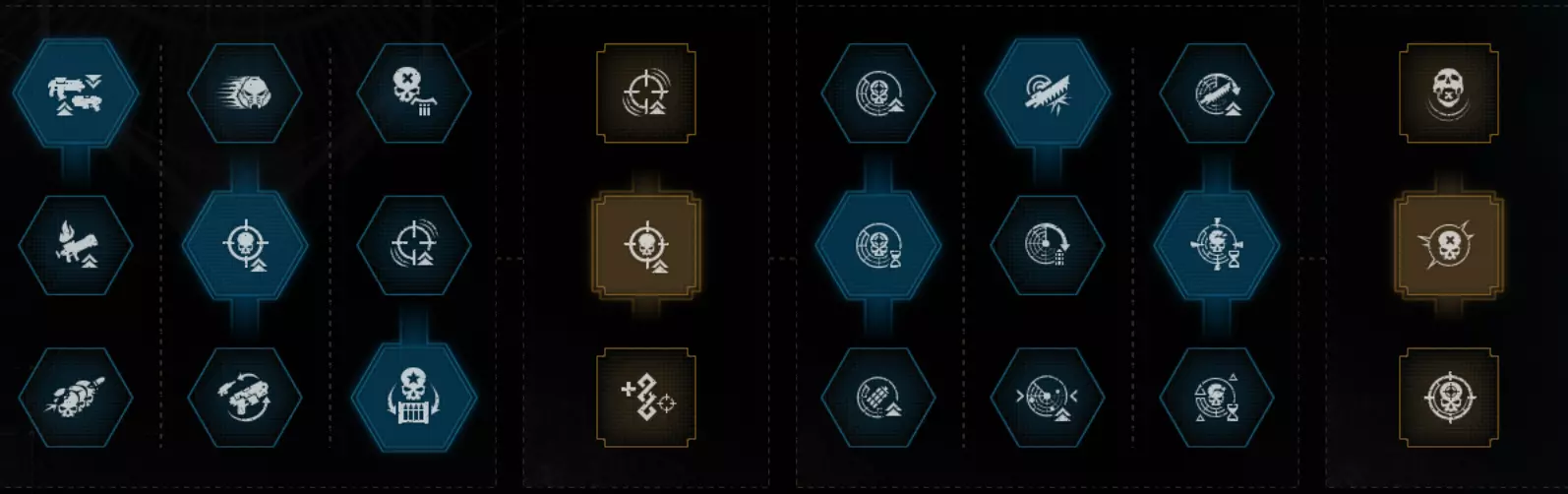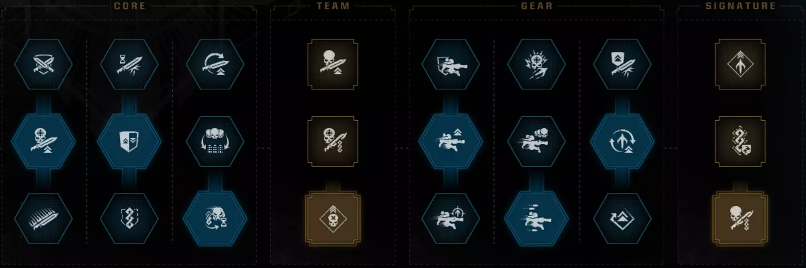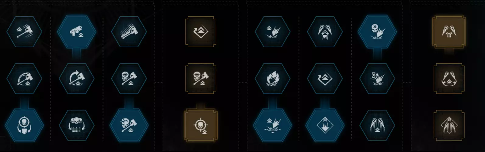 职业特长 Saber 尝试让生命值减伤流派和抓钩流派变得可行。但遗憾的是,抓钩依然很弱,而且理论上你根本不应该承受任何生命值伤害,这意味着目前仍然缺乏流派多样性。 第一列:没有其他选择。 第二列:如果你是新手,或者想使用平衡型武器而非 fencing 武器,就选最上方的特长。否则,选择中间的特长。 第三列:说实话,【连续处决】可能是更好的选择。但我主要玩离线模式,所以会把所有手雷留给自己,因此不太需要这个特长。 第四列:冷却缩减比其他任何属性都重要,即便只是为了队友。 第五列:你要在中间特长和下方特长之间选择。两者都不太好,只能说选个相对不那么差的吧。第6栏:无其他选项 第7栏:所有选项都不尽如人意,因此你需要为你的热熔枪选择不可靠的伤害加成作为最佳选项 第8栏:遗憾的是,这并非《战锤40K:暗潮》,这意味着没有生命值条模组,因此顶部的特长毫无用处。底部的特长仍是最佳选择。 威望特长: 战场感知 不屈意志 恢复 启动恢复 你可以选择不屈意志作为最终的威望特长,或者完全选择其他特长,但我不建议这样做。总体而言,这个特长并非特别出色,但一次时机不当的枪械打击就可能直接让你丧命。说实话,手榴弹20%的伤害提升,或者生命值15%的提升——也都不是什么强大的增益效果。