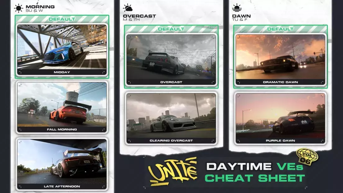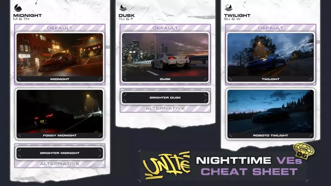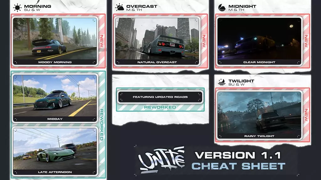 车库场景已重新设计:调整了昼夜光照,更换了纹理。 大部分广告牌和广告板已更换。 部分HUD已重新设计:调整了颜色和纹理。 整体上对游戏视觉部分进行了大量工作,降低了色彩滤镜强度,并且完全更改了所有昼夜时间预设。昼夜时间视觉方面有哪些变化?