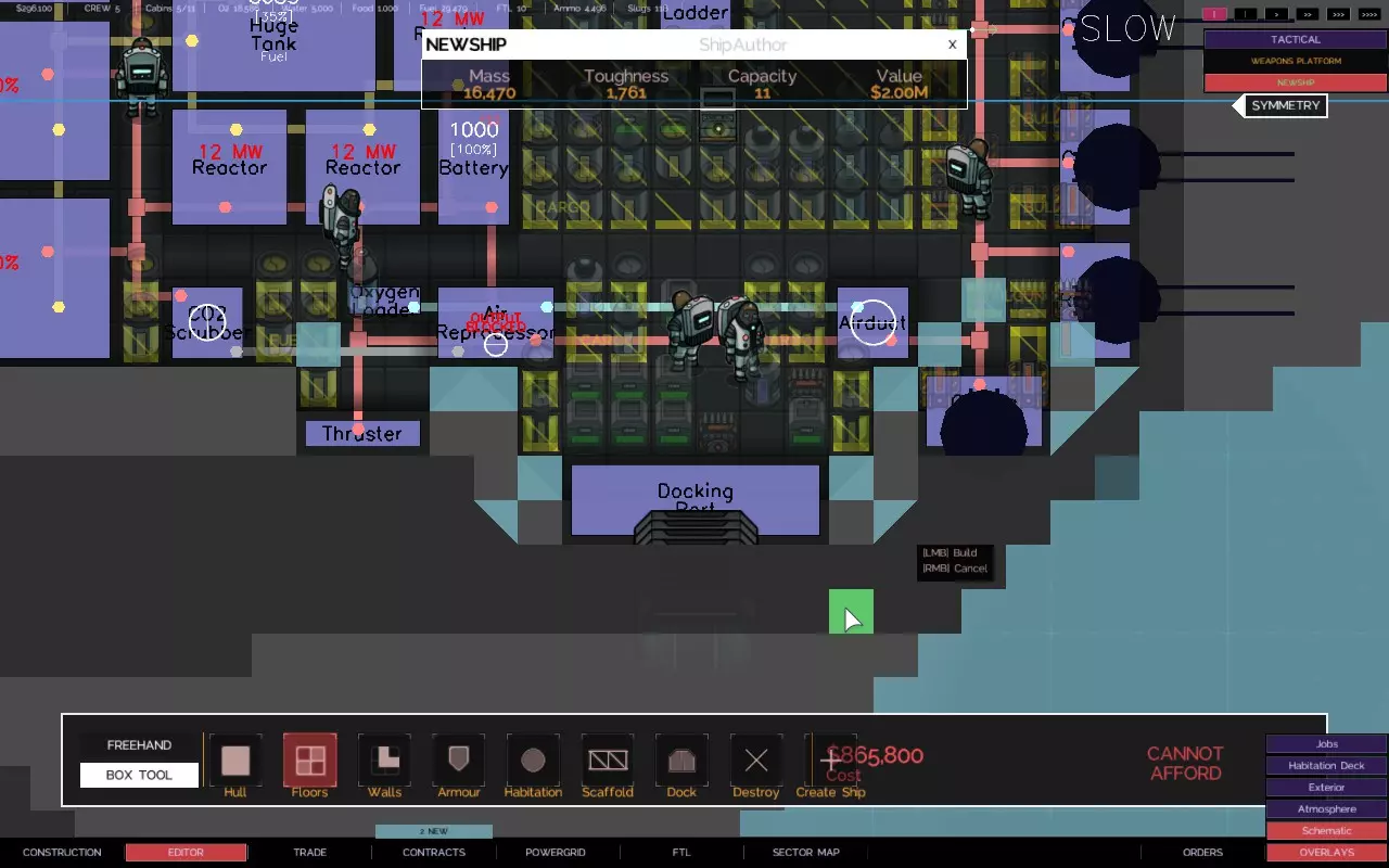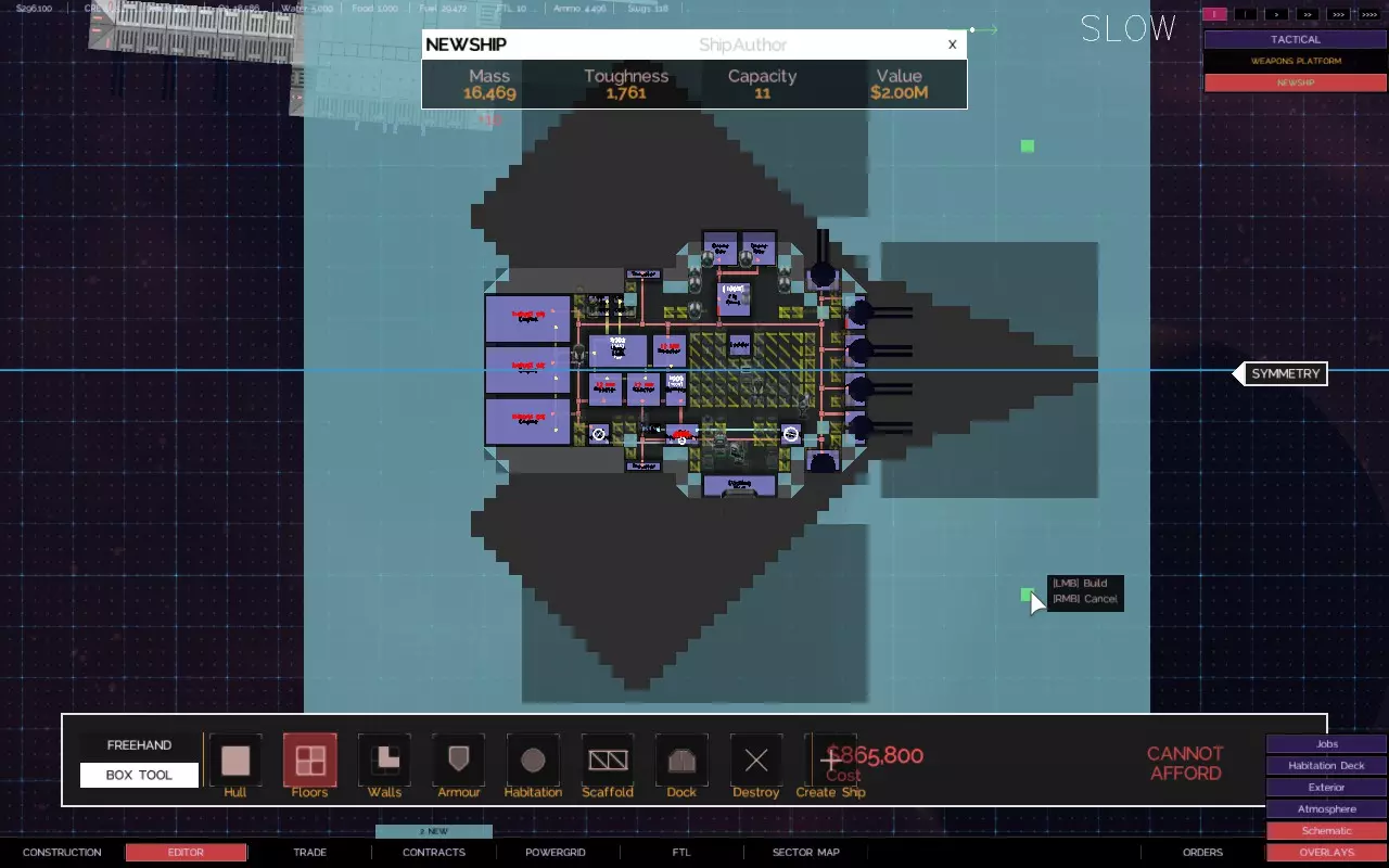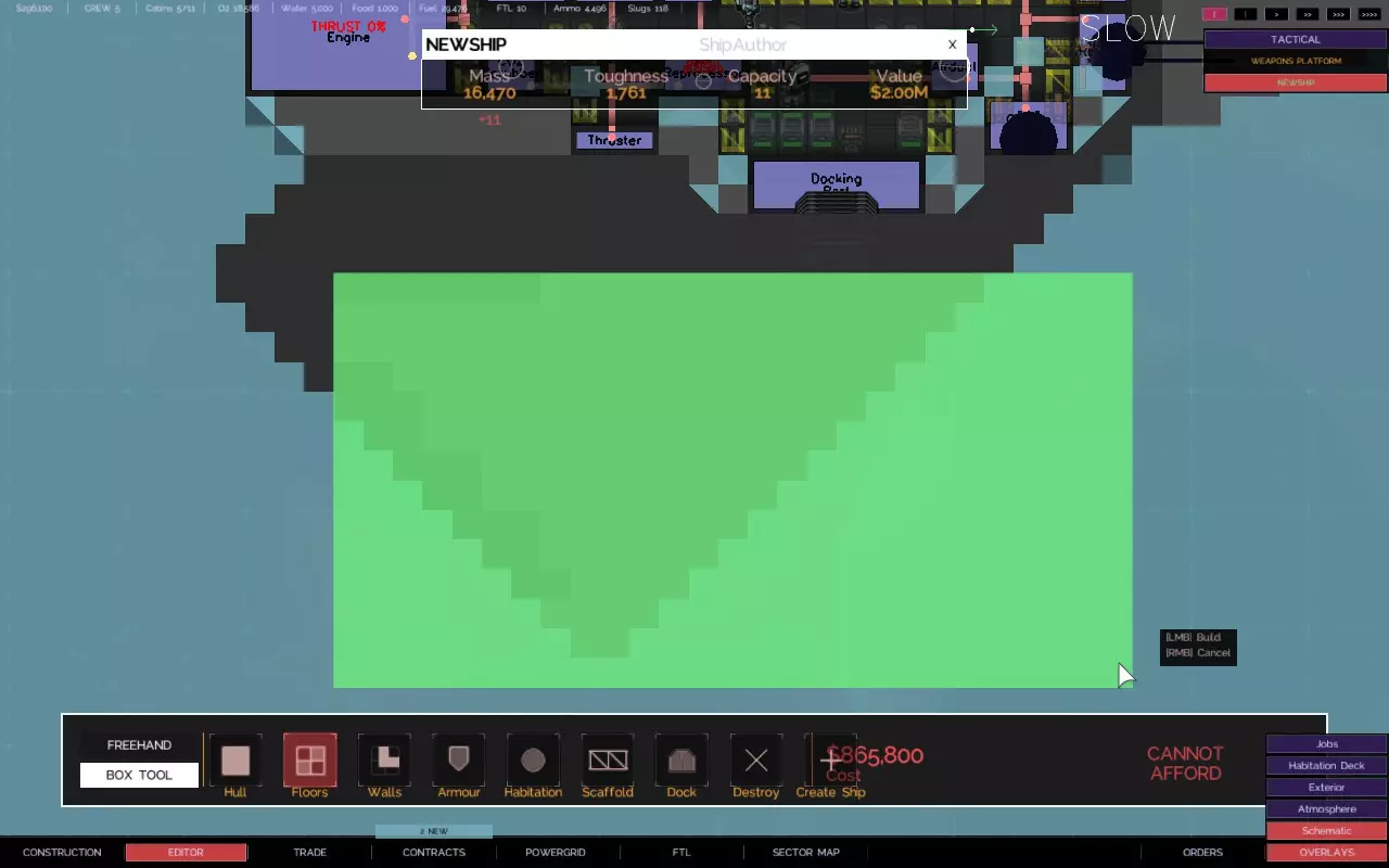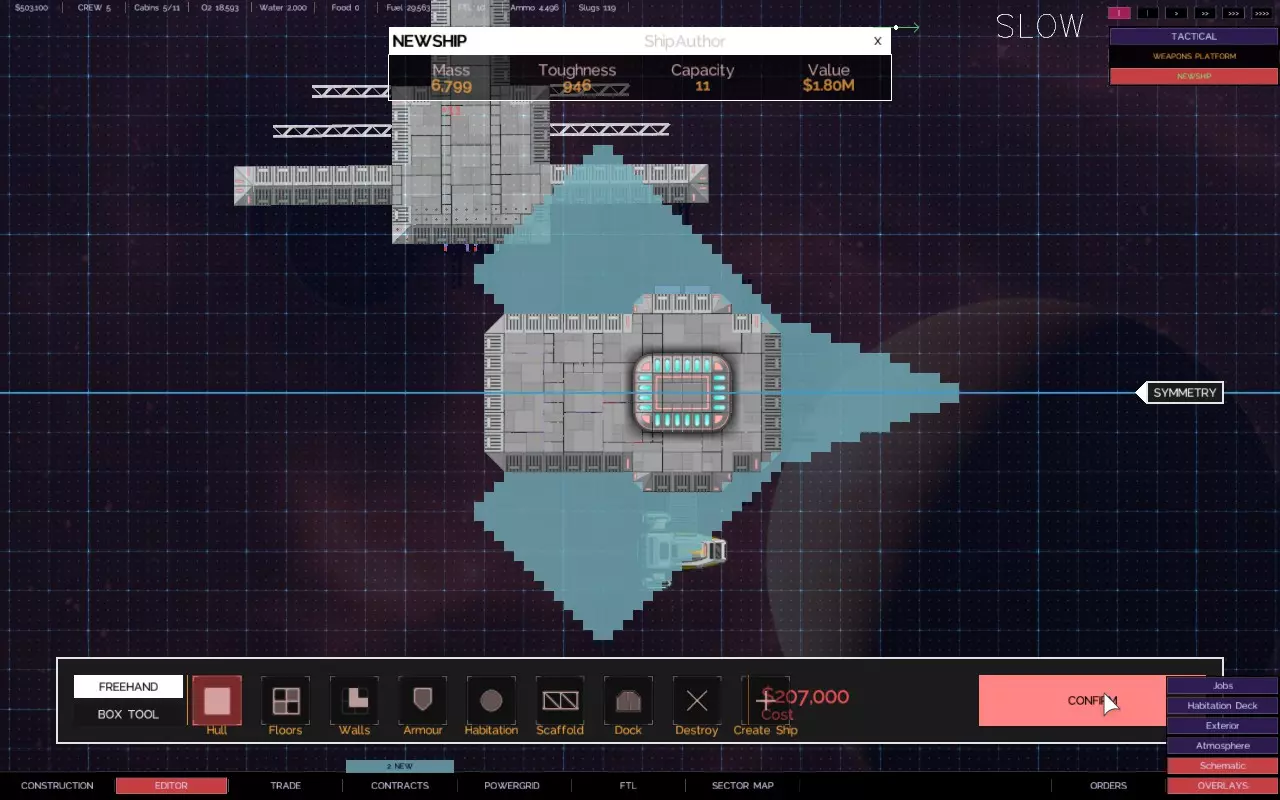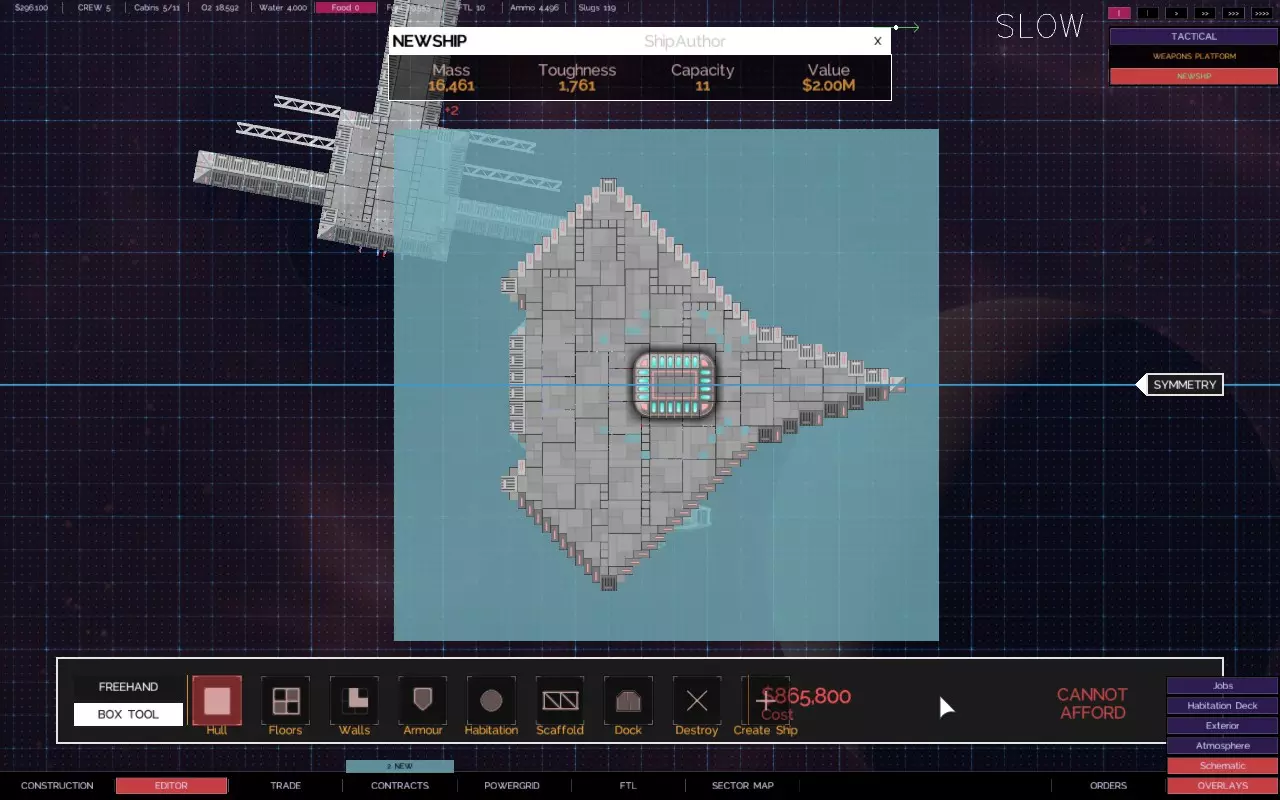 关于如何建造带有悬伸船体部分的舰船的快速教程 简介 【Alpha 2更新 - 由于输出被阻止,此技术不再适用于用户控制的舰船,但似乎仍适用于AI驱动的舰船。】 是否厌倦了创造力受到限制? 是否有一些很酷的舰船设计,但找不到地方安装那些讨厌的火炮、引擎和其他外露设施? 是否想建造三角形、圆形、锯齿形或其他奇特的船体形状,同时保持所需的点防御能力? 那么,我有个方法适合你! 步骤1 设计、创建并设置你的舰船内部布局。