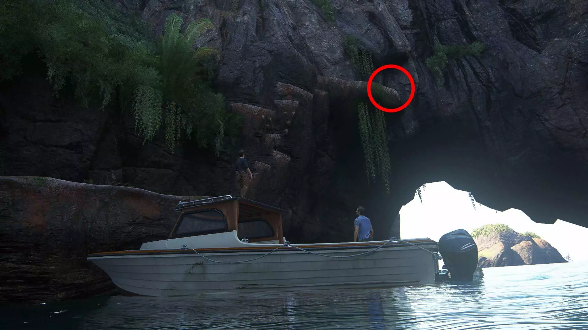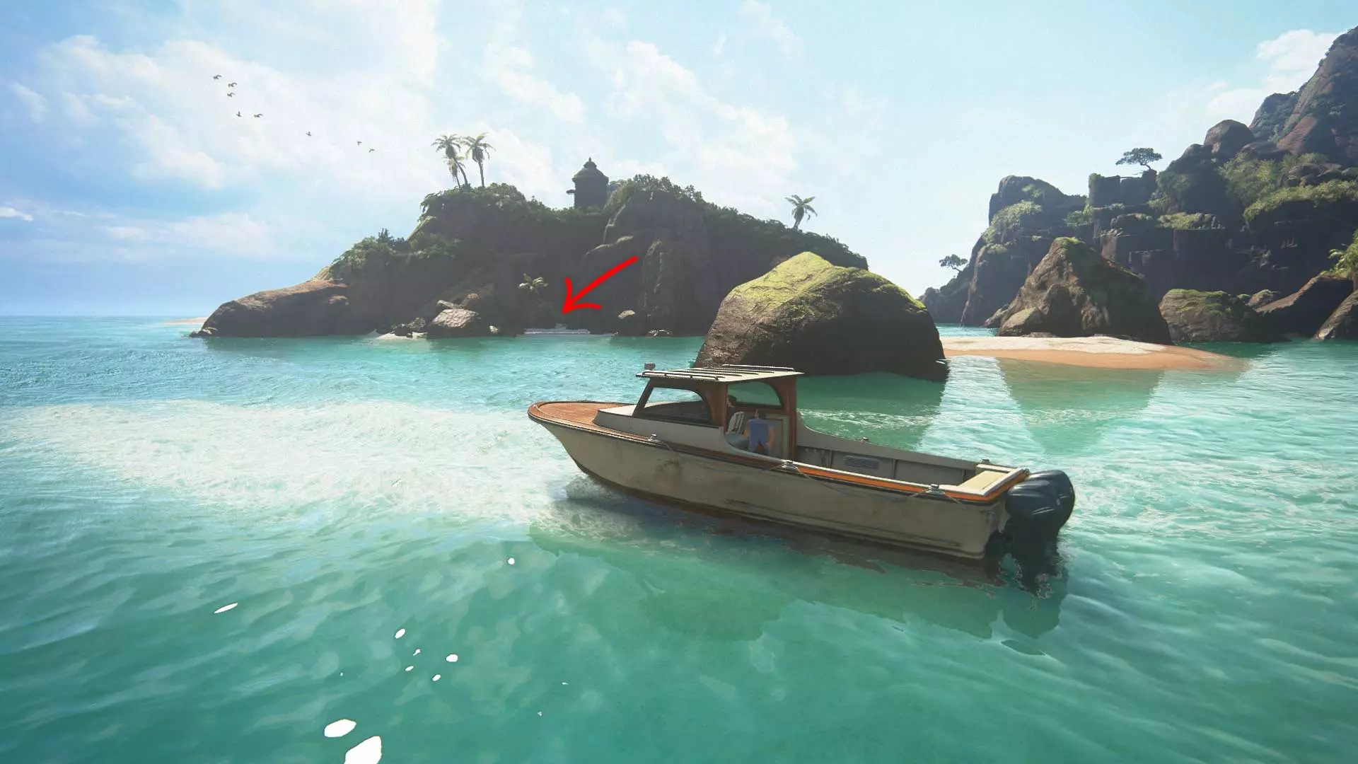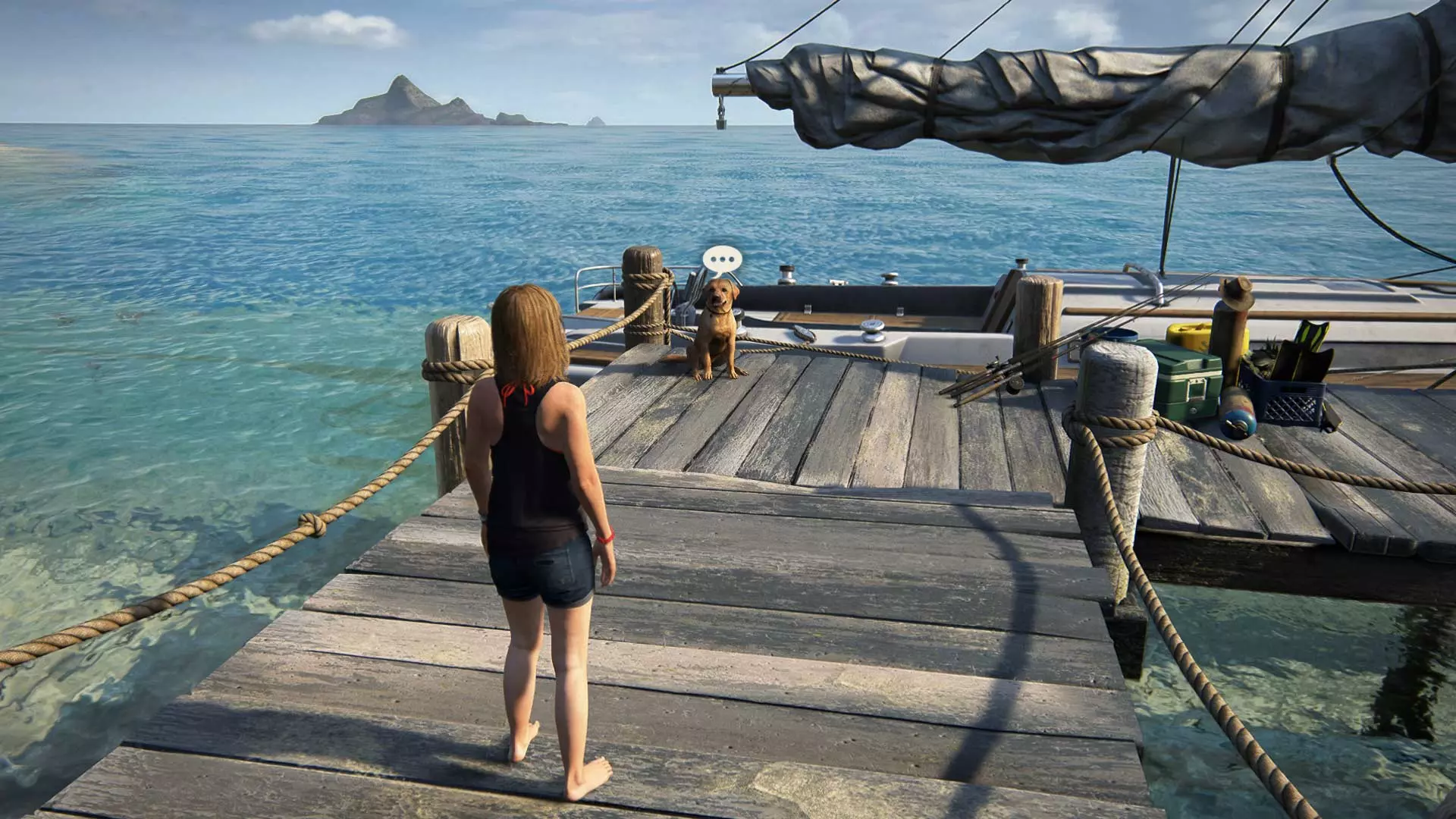 海豚可以在大岛的背面找到。它们一直在来回游动,所以没有固定的栖息地,但寻找它们并不困难,因为它们经常跃出水面,暴露自己的位置。不要下船,也不要离海豚所在的区域太远,否则它们会离开,你就得重新寻找了。你的每一个发现都会由山姆进行评论,当你让三只海豚在船附近游动时,他会提及此事,届时成就将解锁。13章