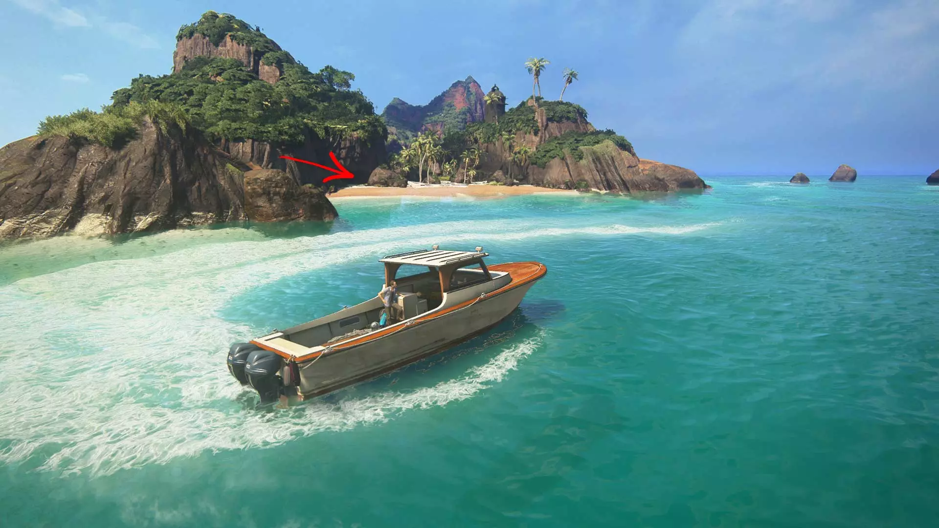 从章节开始,你需要游向大岛的左侧。那里会有一艘沉没的海盗船,在不远处停下并跳入水中。当内特在水中说“马可!”时,成就将解锁。