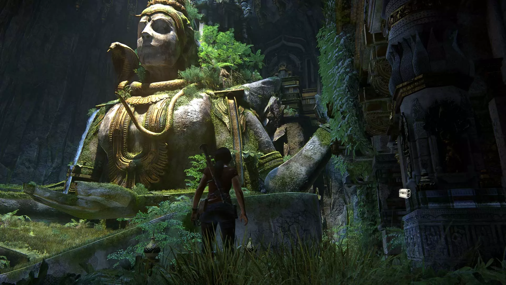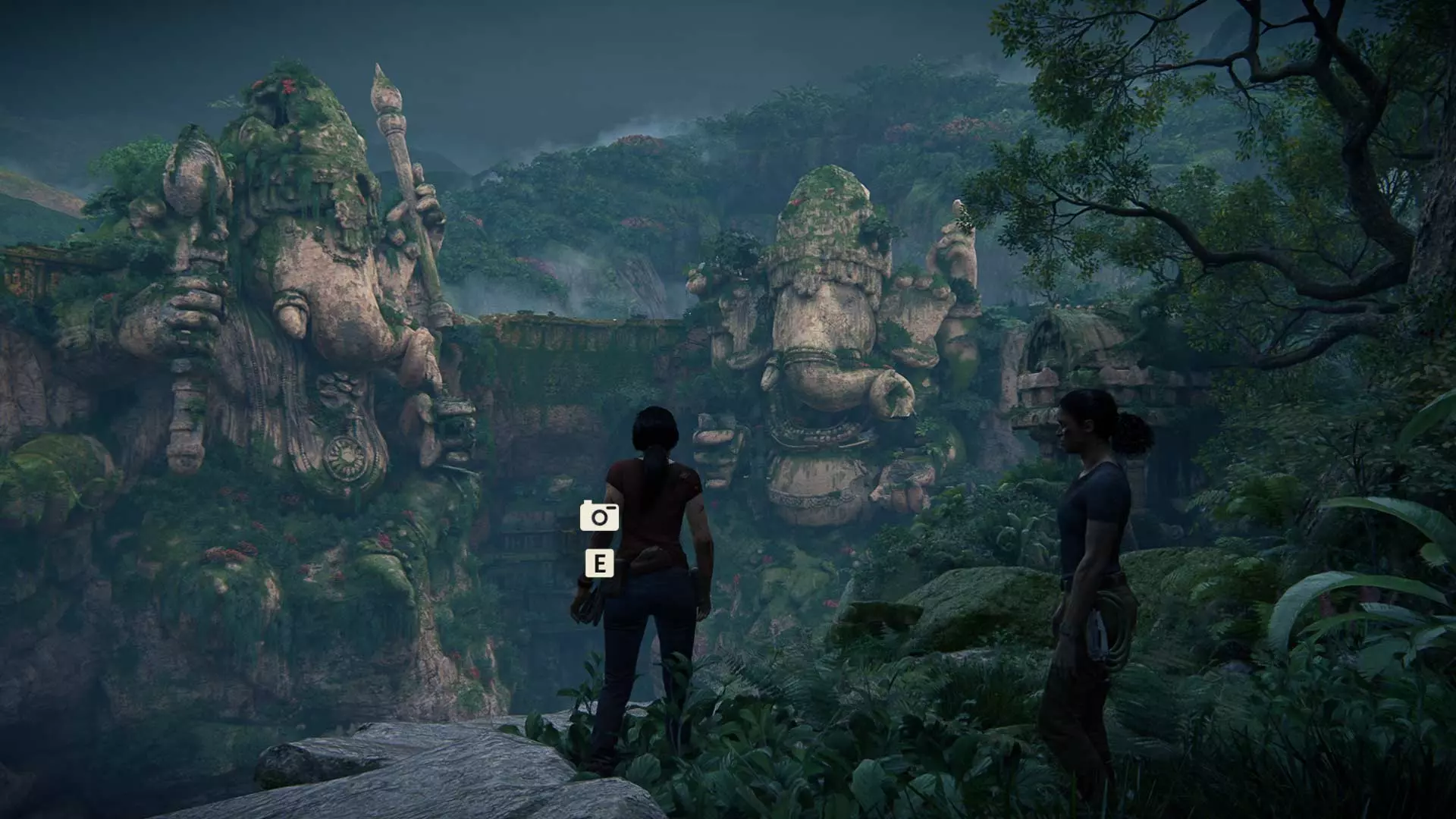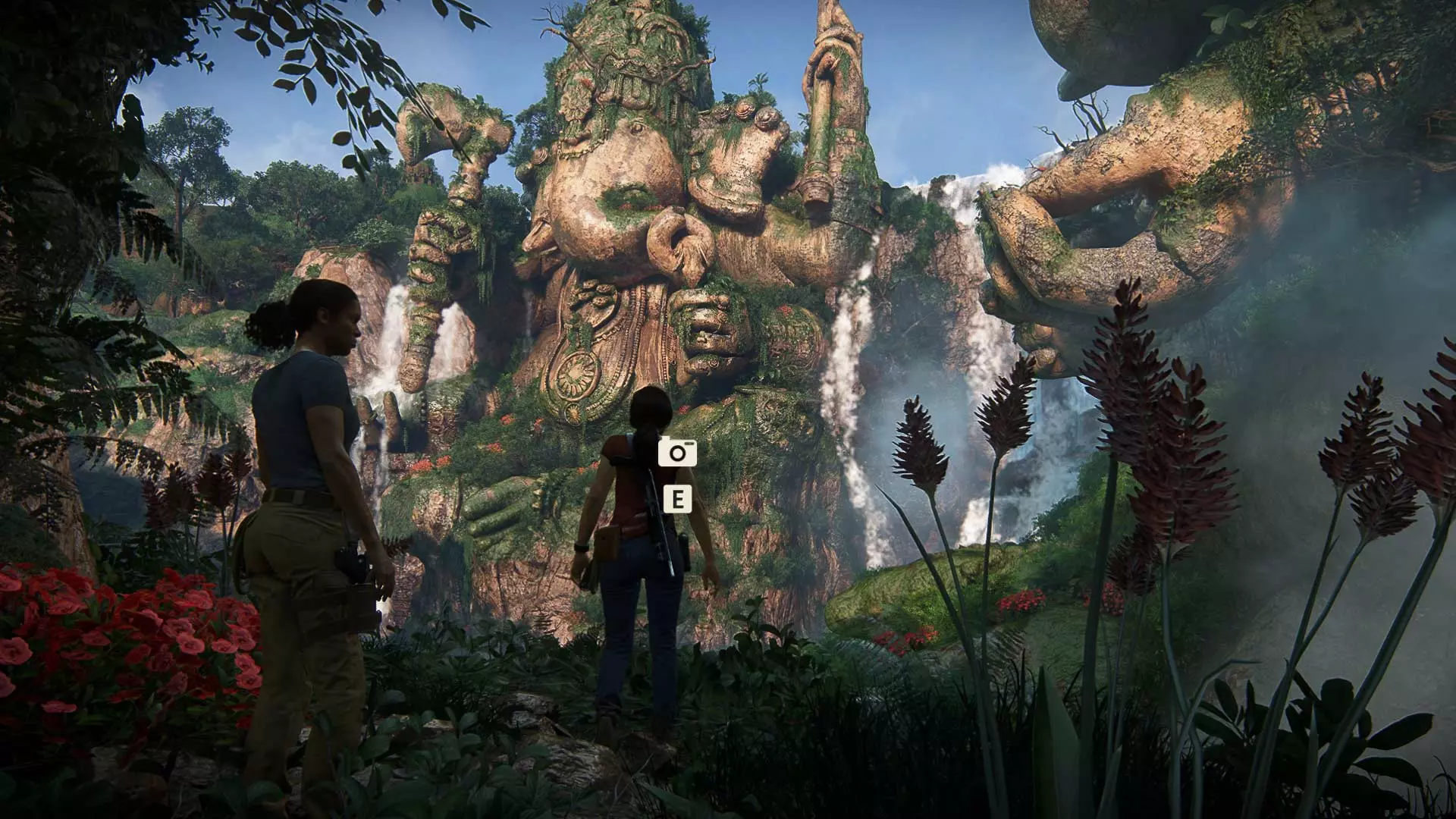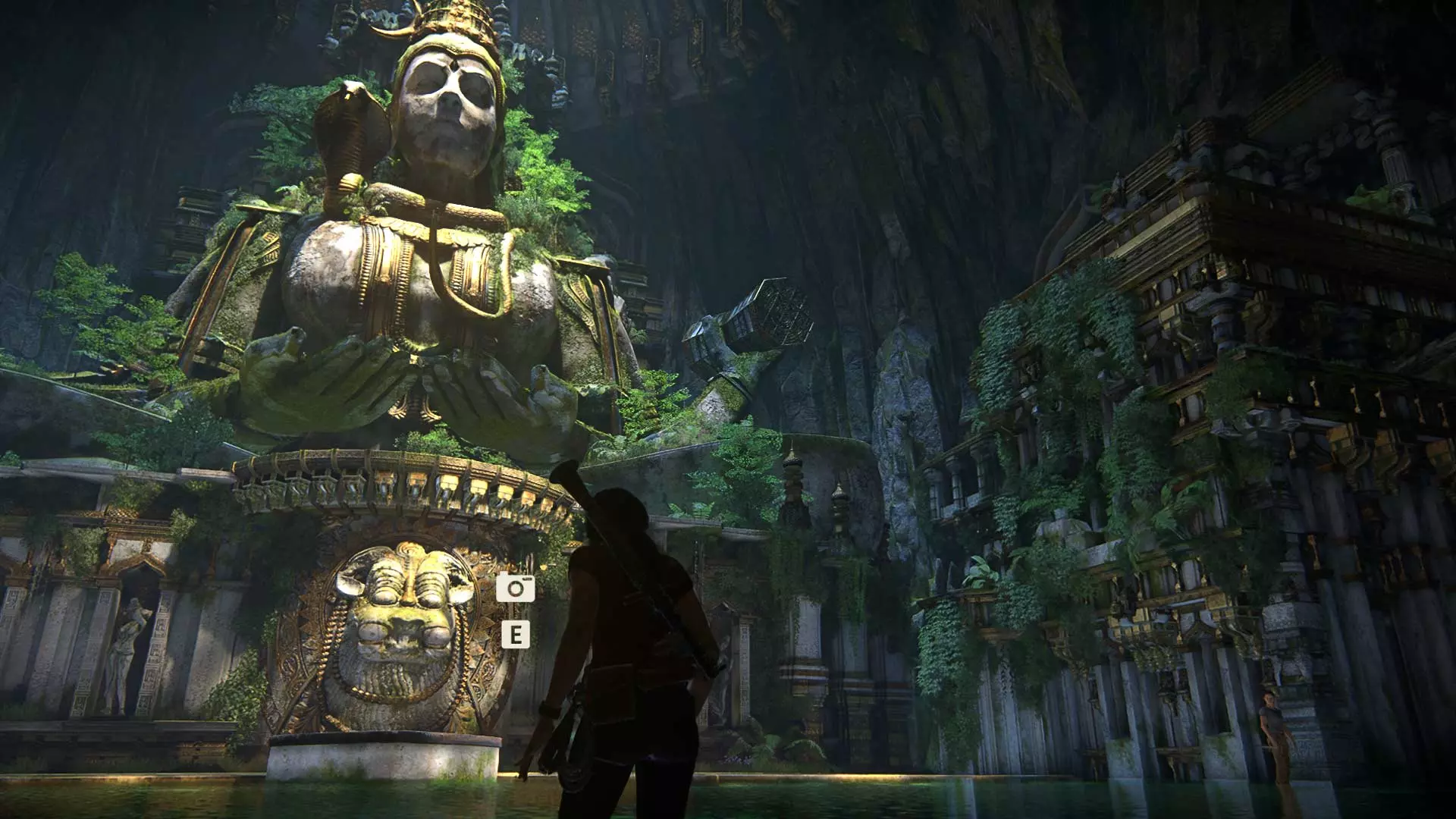 跳到另一边,给巨大的伽内什雕像拍张照。
