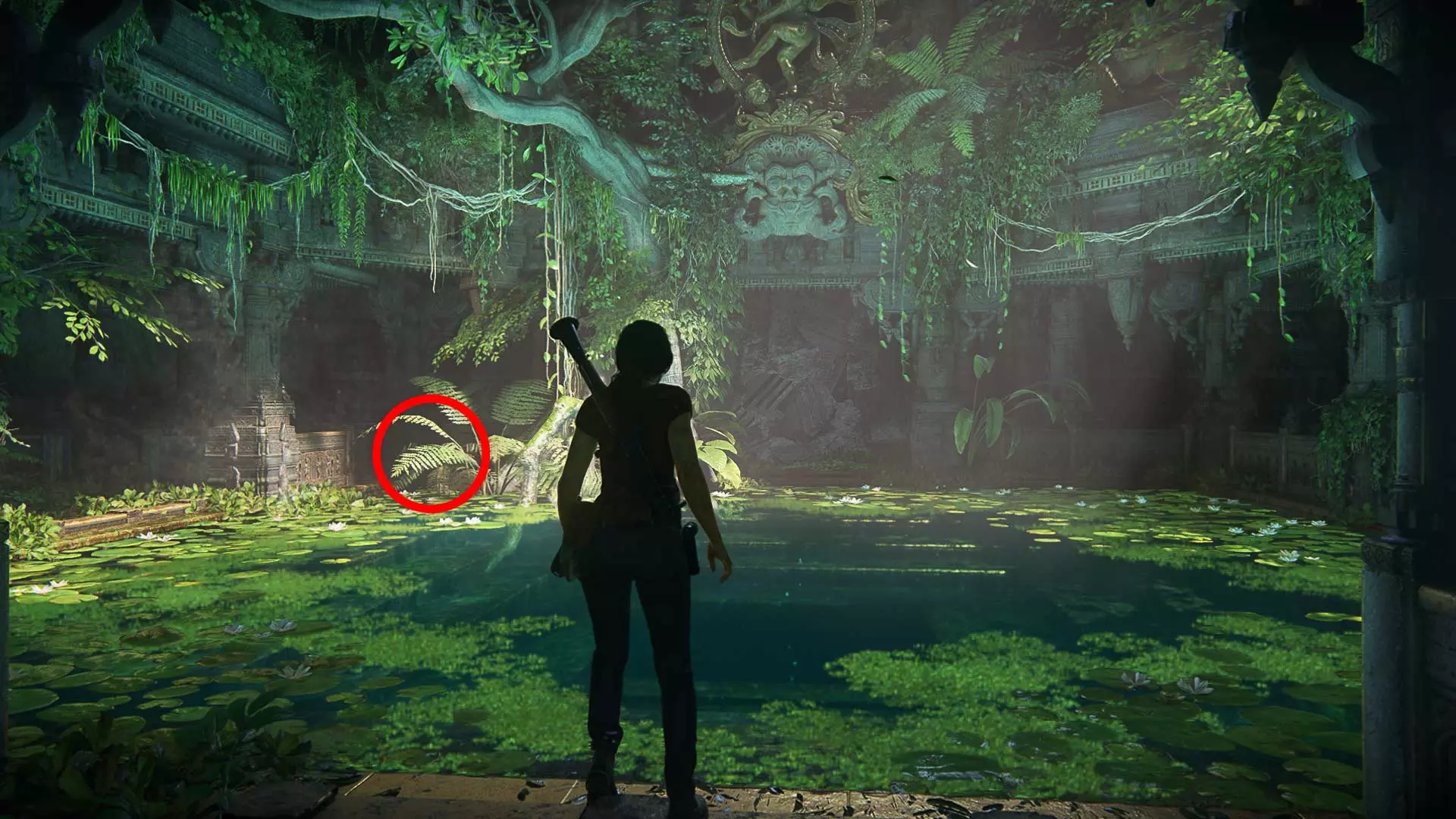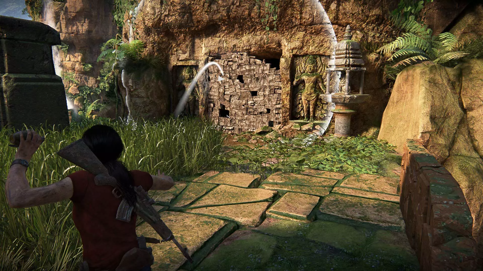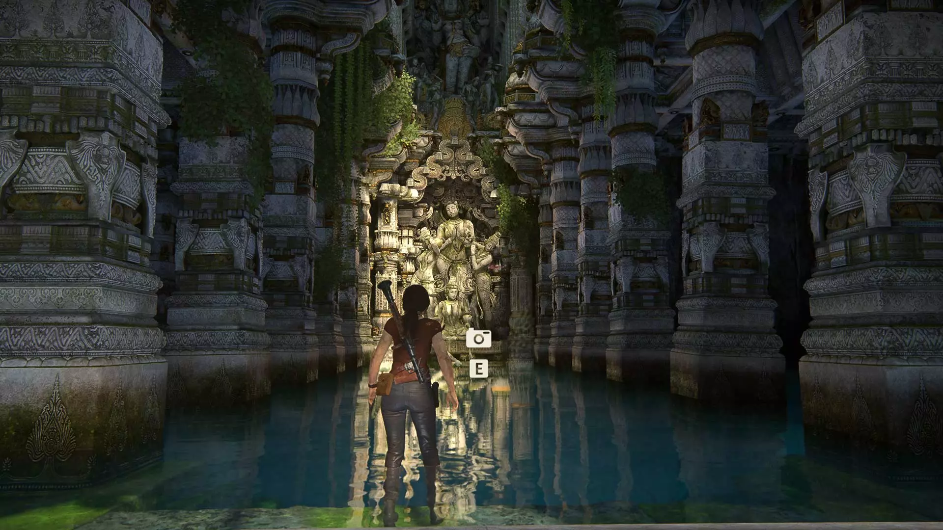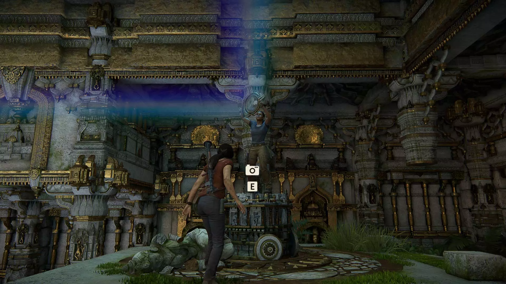 跳到另一边,给巨大的伽内什雕像拍张照。
