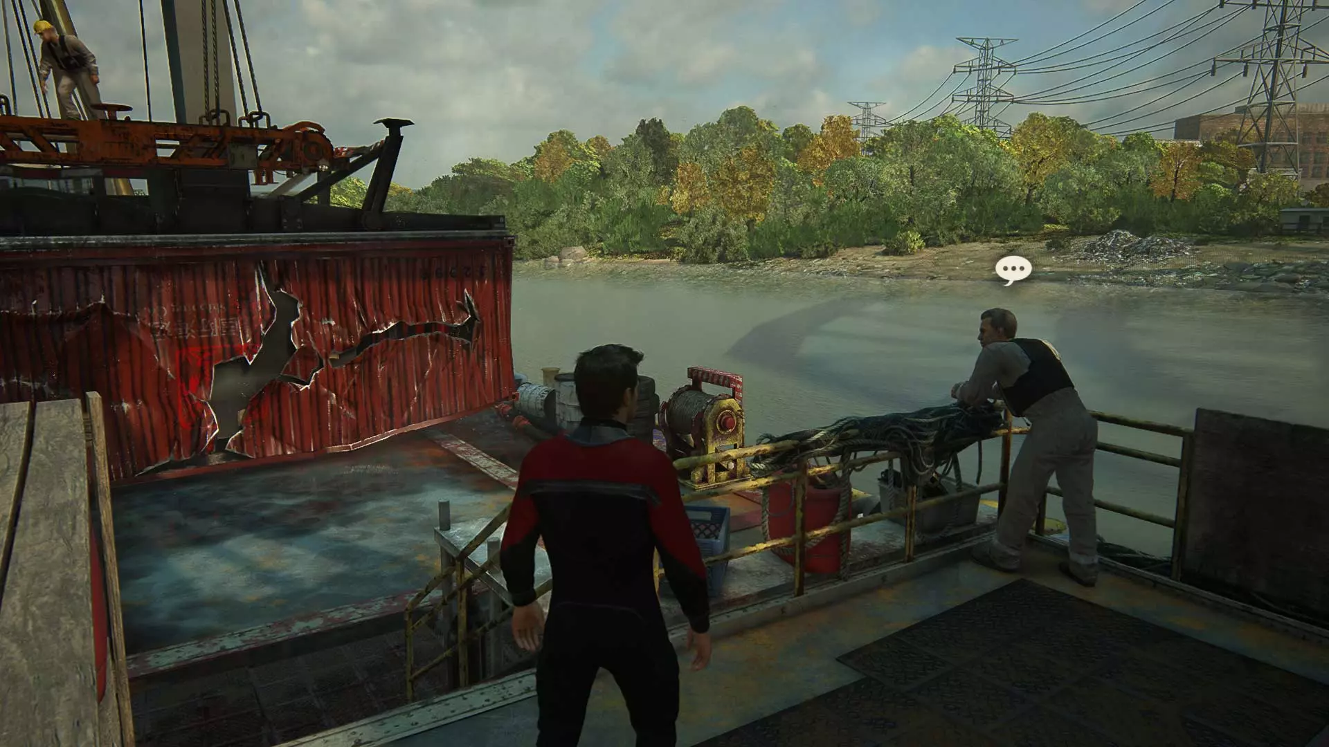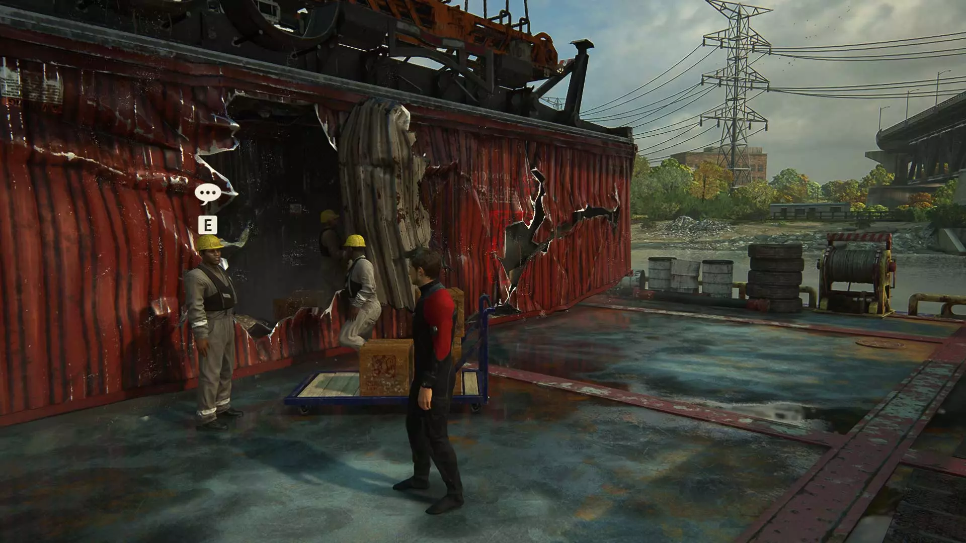 1/36 对话:与集装箱附近的一名工人交谈。