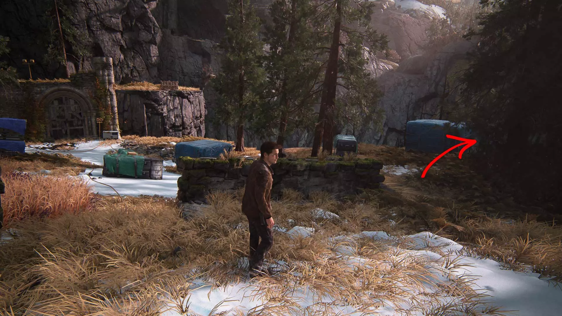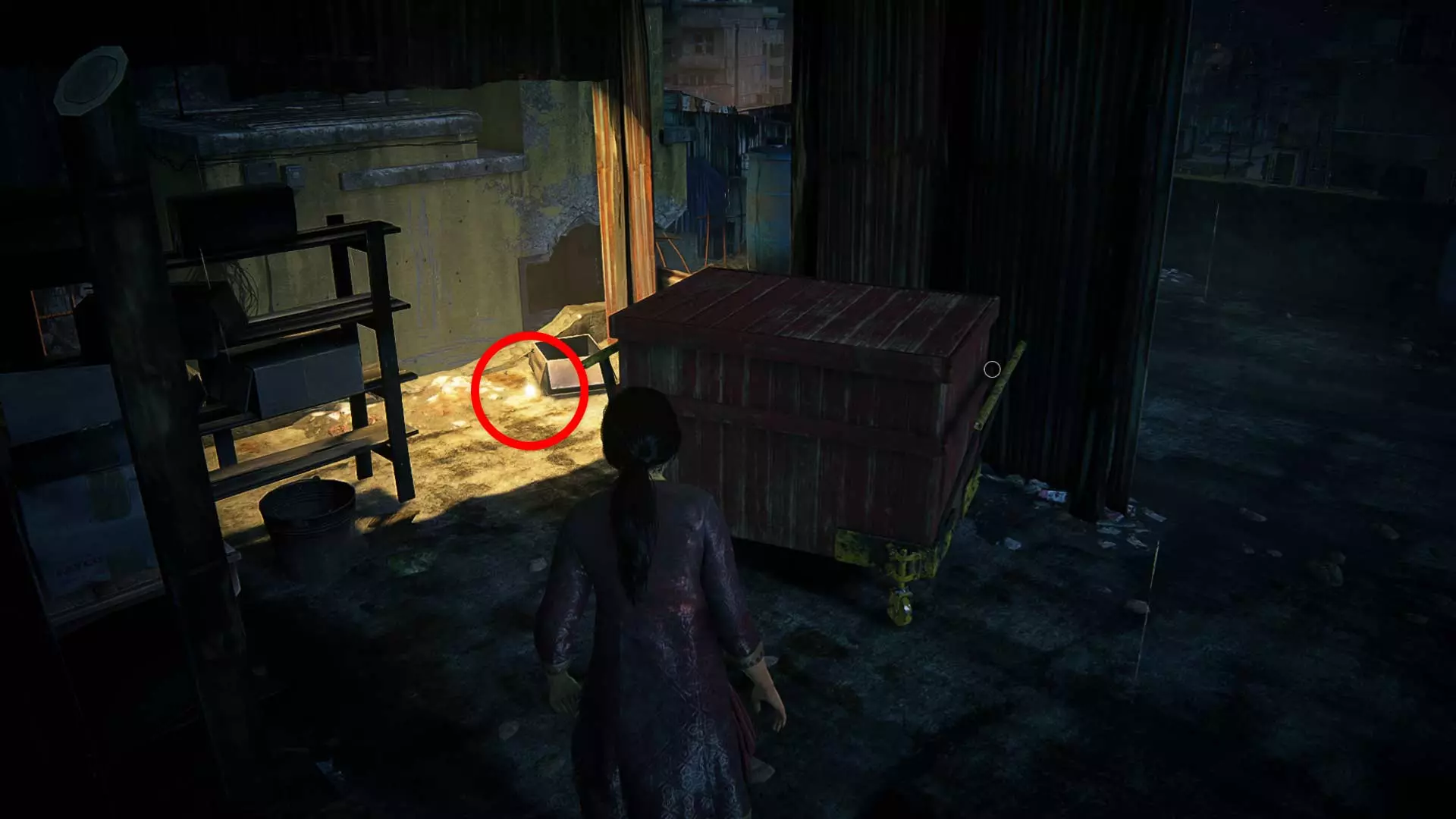 17/21箱子:沿着右侧穿过建筑,会在灌木丛中看到一辆带有箱子的卡车。