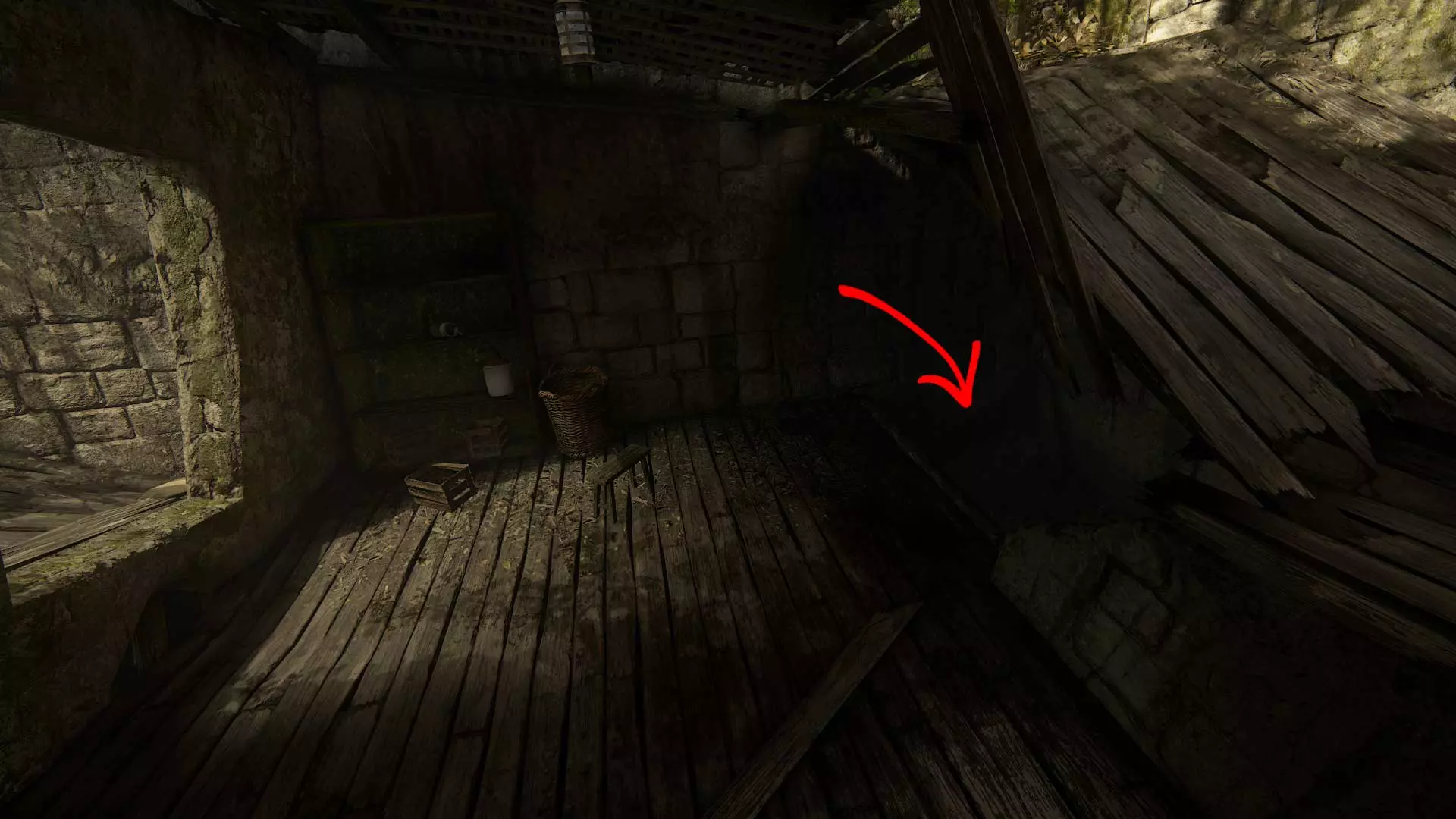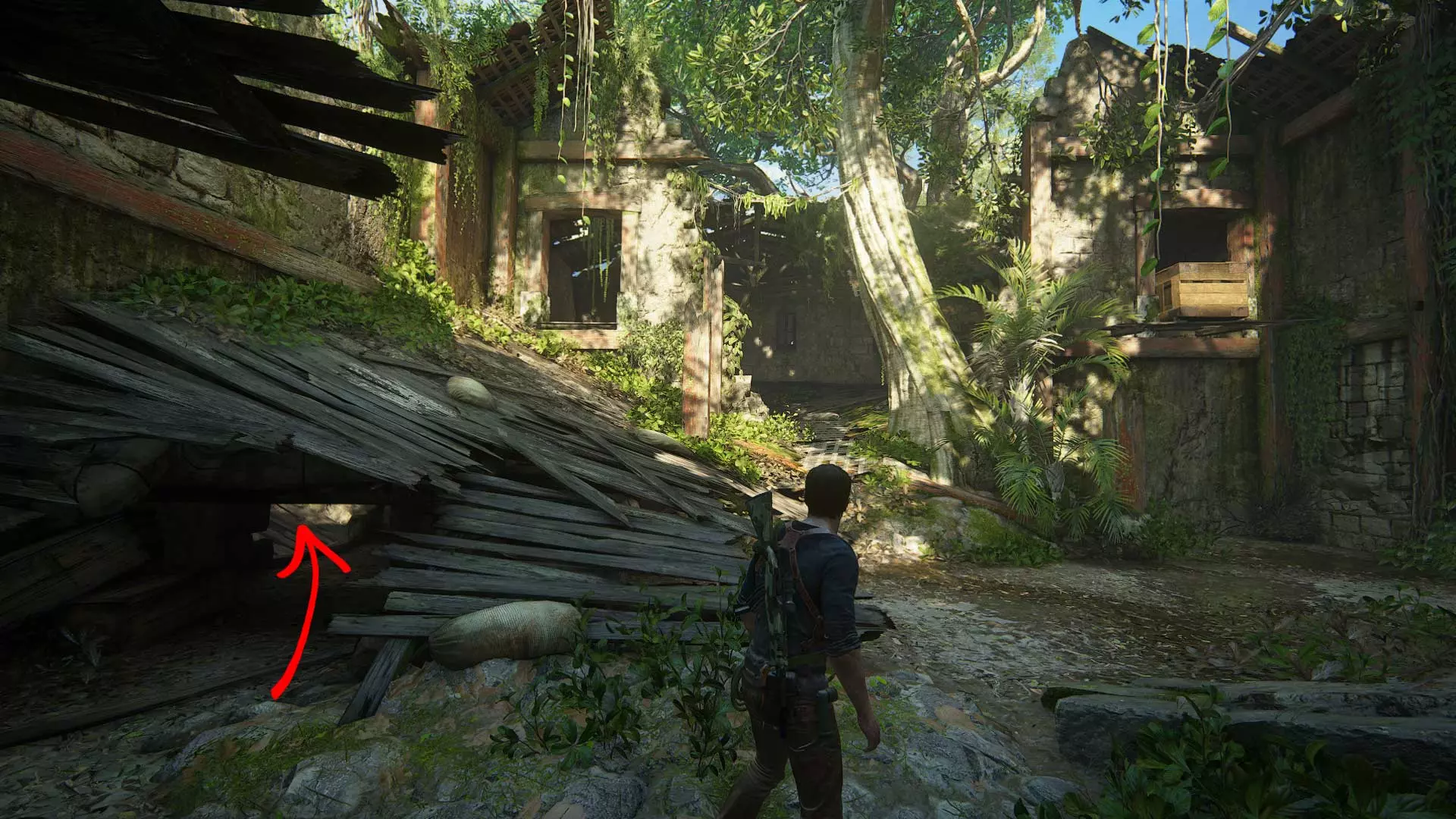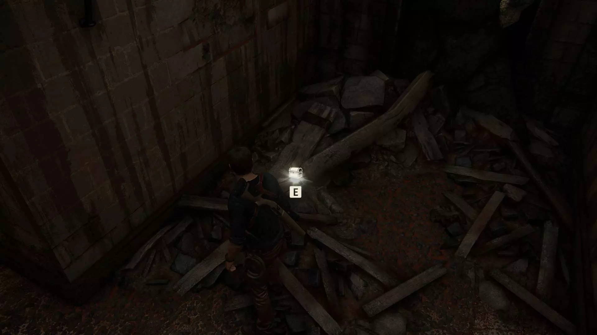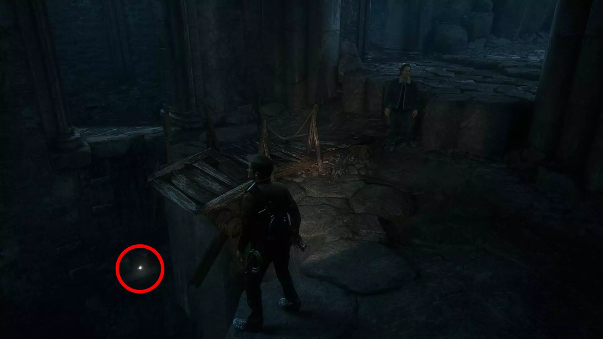 古老城堡 靠右前进。宝藏位于两块石头上的木头下方。